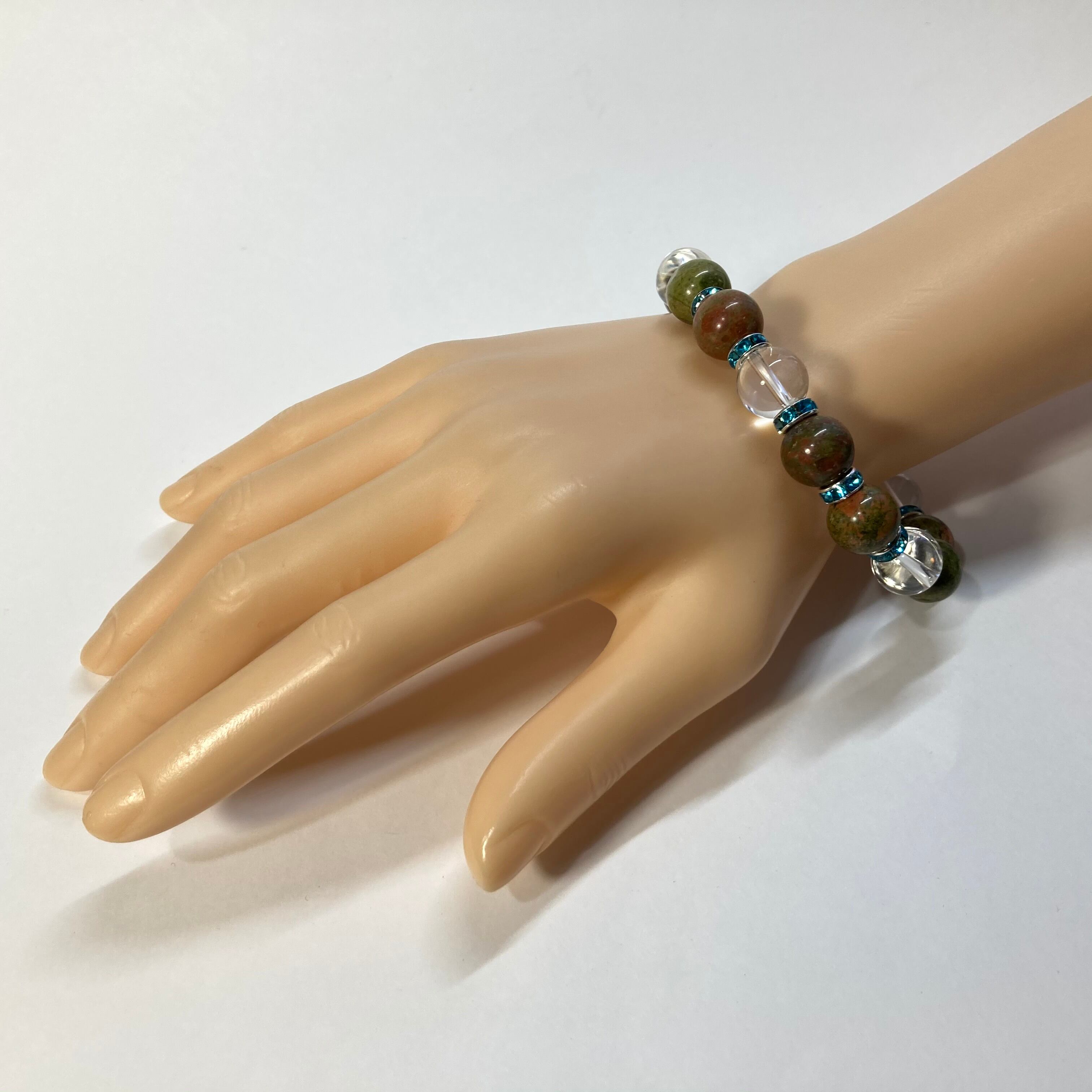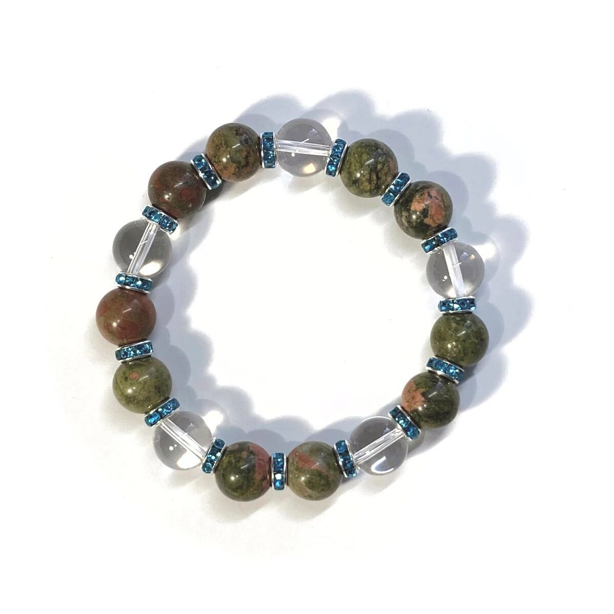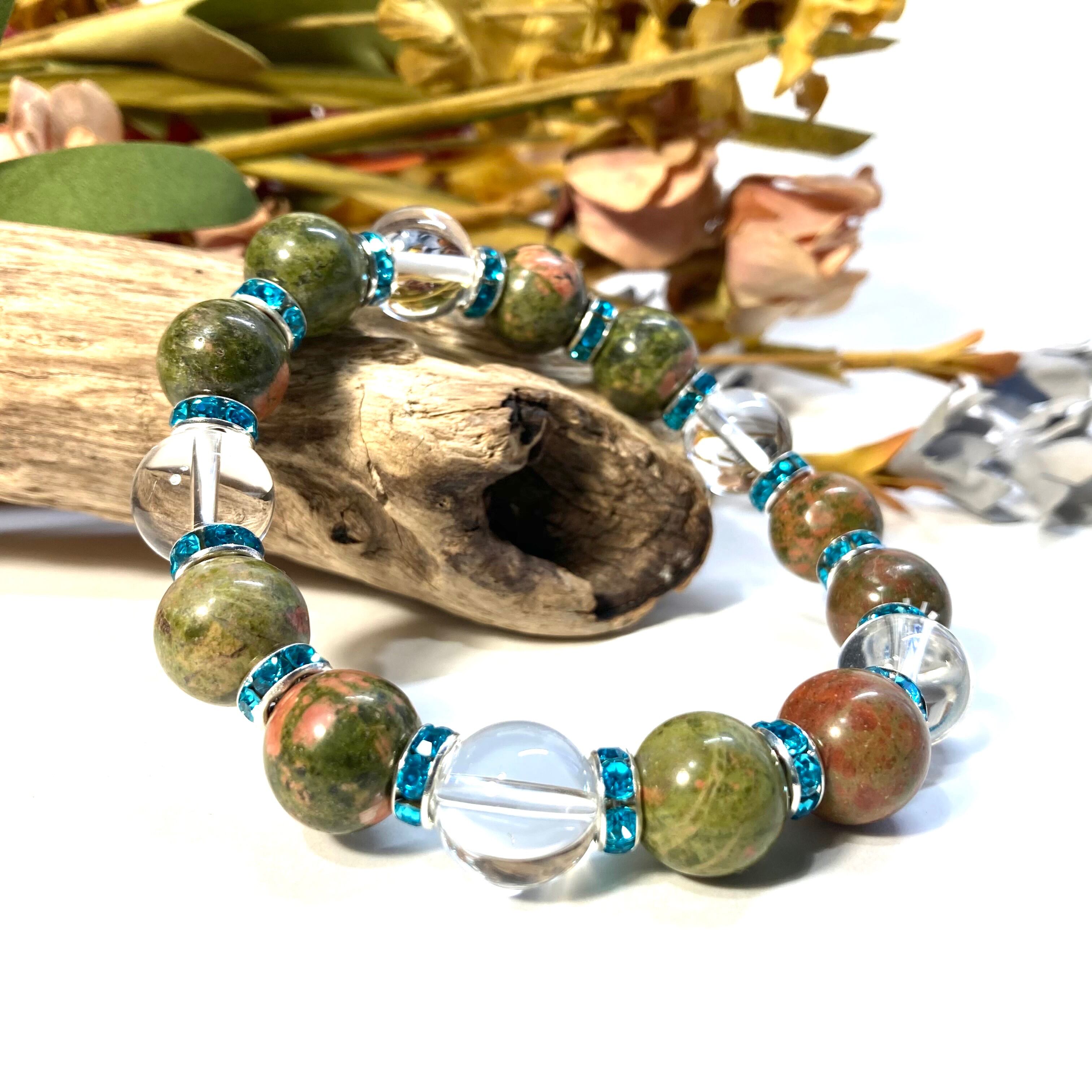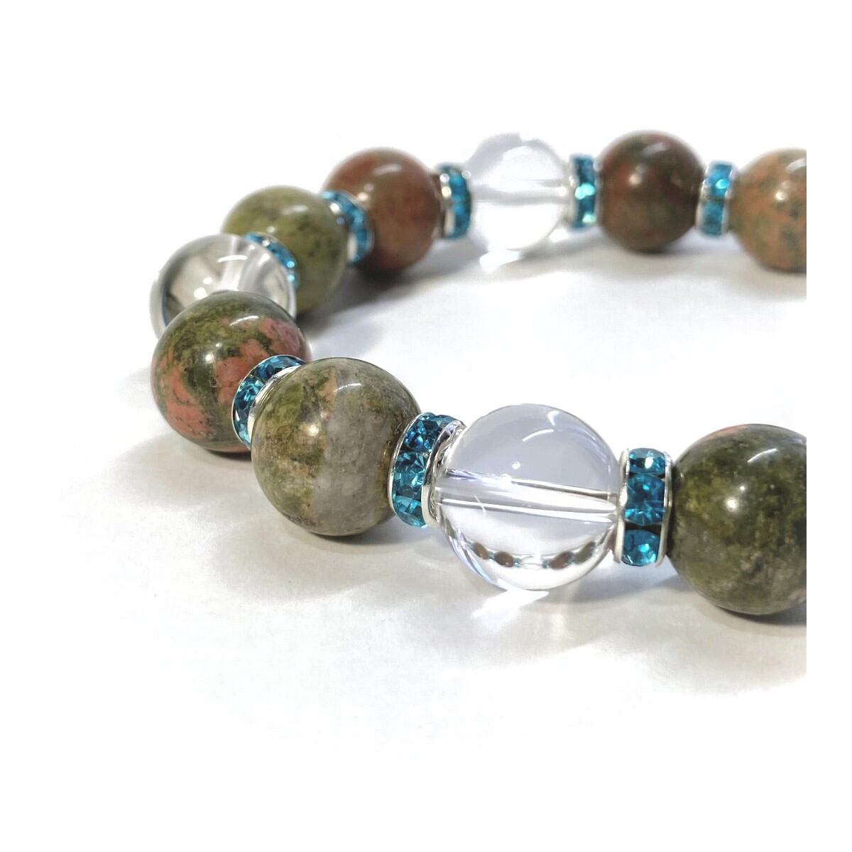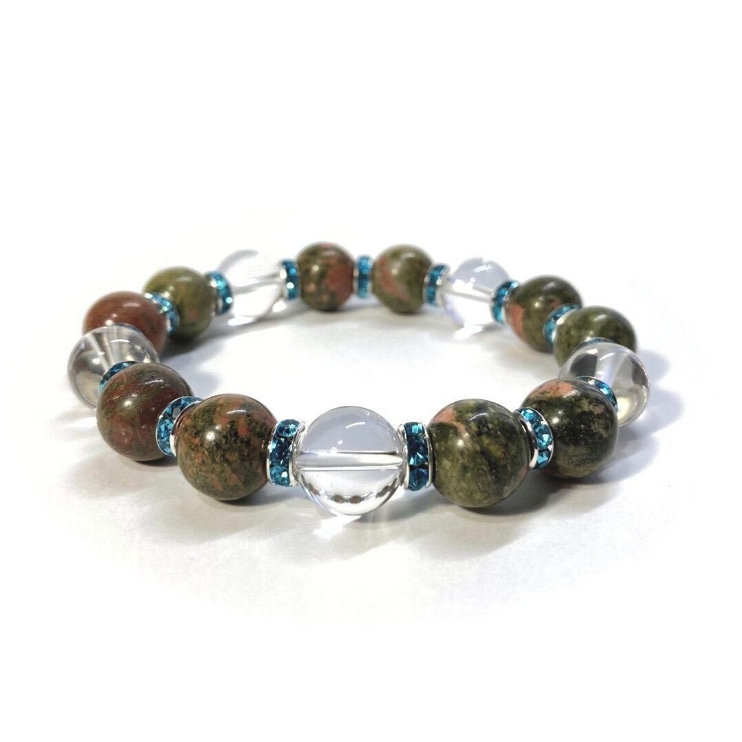 ユナカイト&水晶 パワーストーン ブレスレット 天然石 12mm (ライトブルー)メンズ・レディース 男性・女性 数珠ブレス 開運 ☆