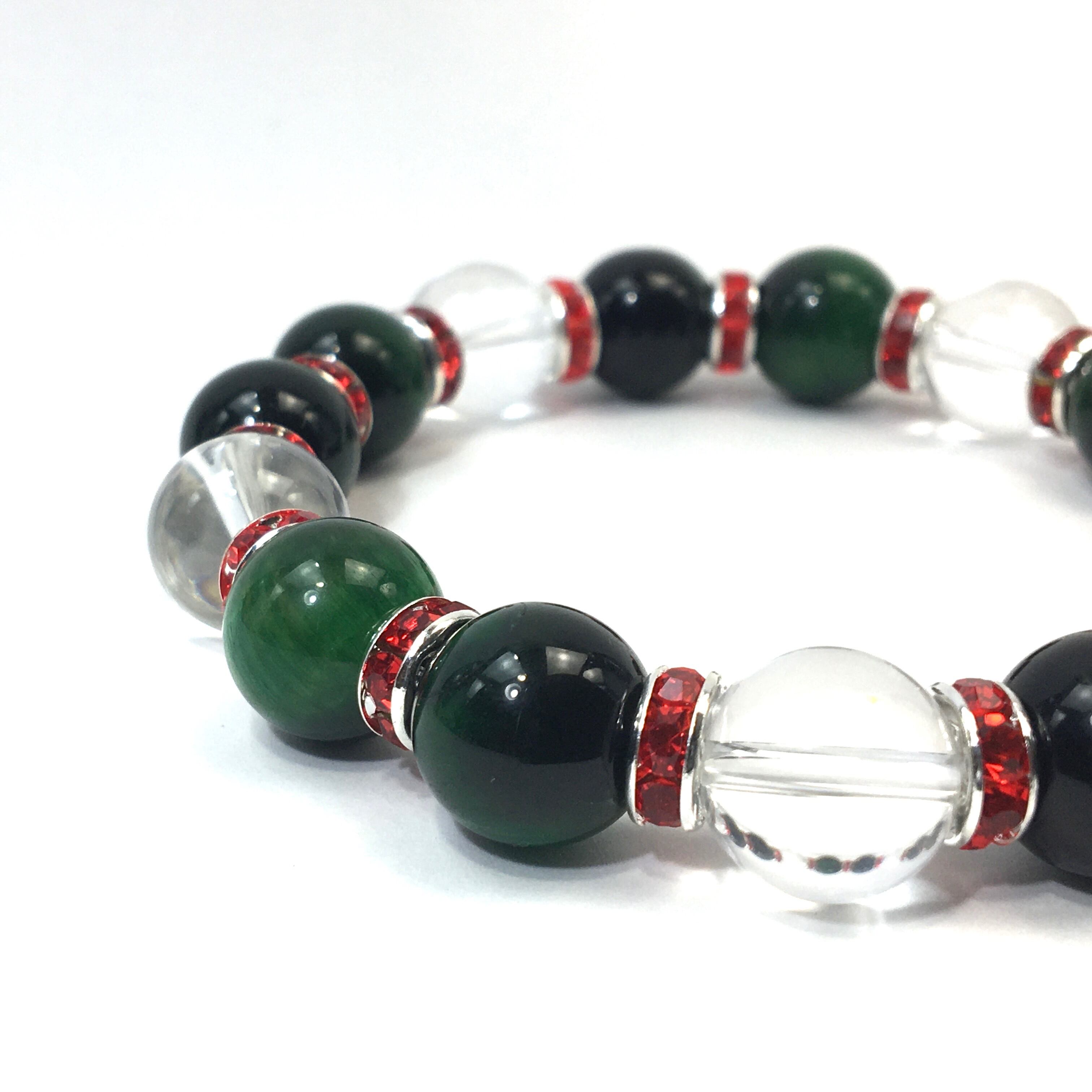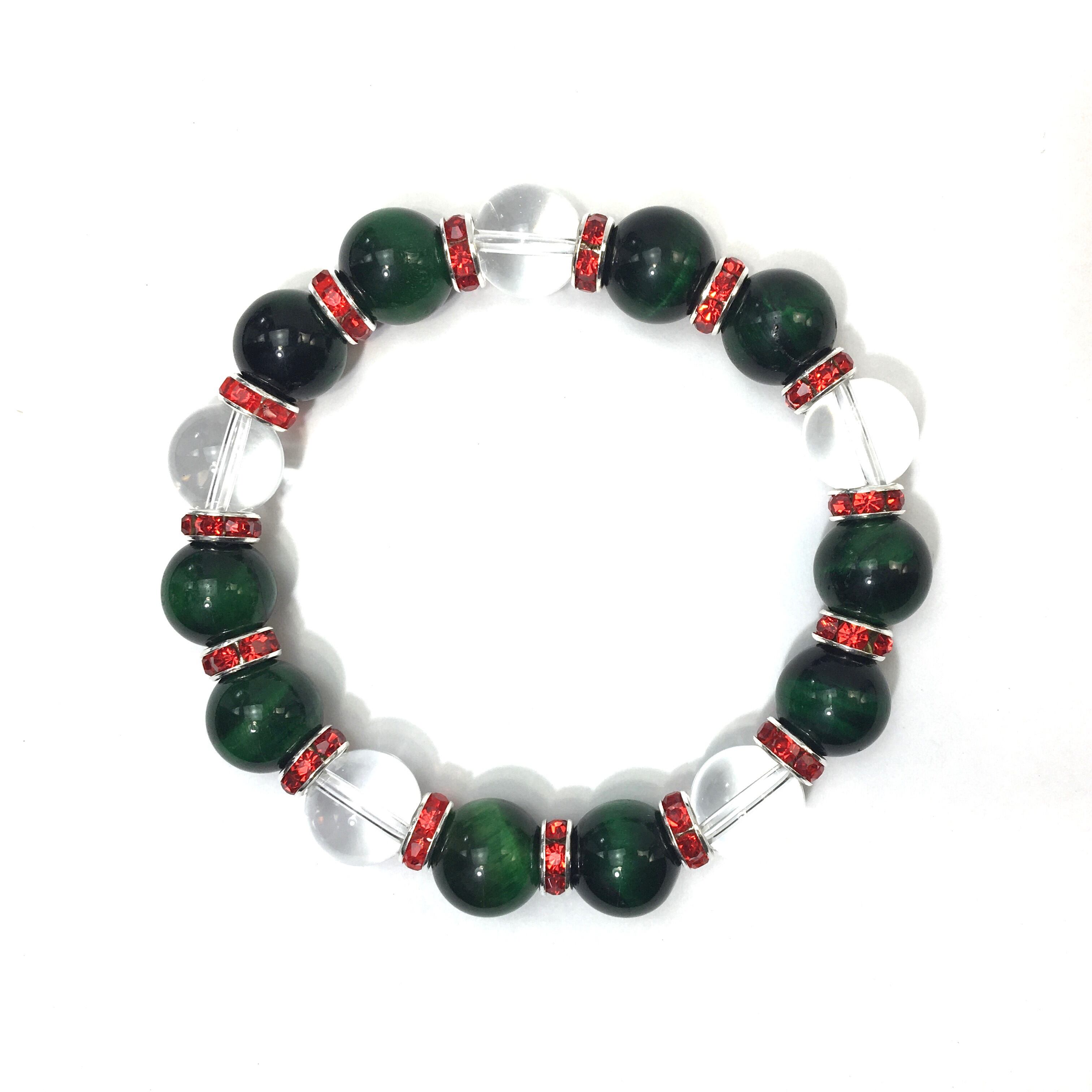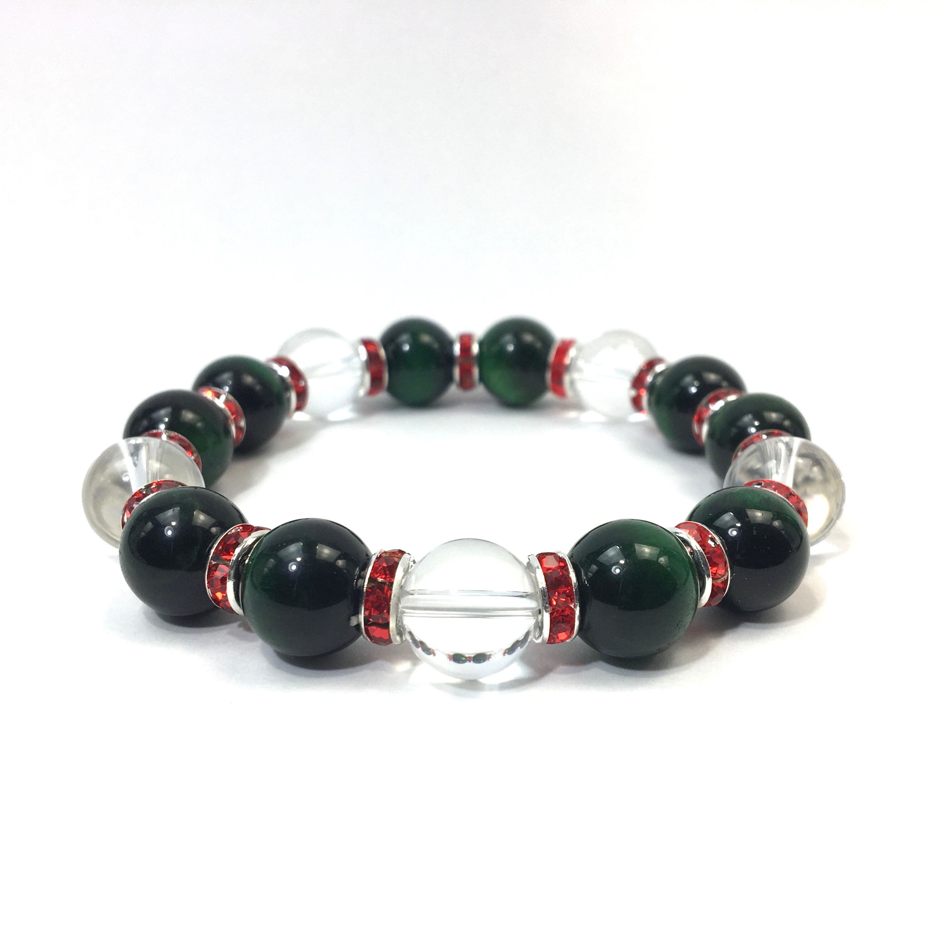 グリーンタイガーアイ&水晶 パワーストーン ブレスレット 12mm (レッド)メンズ・レディース 男性・女性 数珠ブレス 開運 ☆