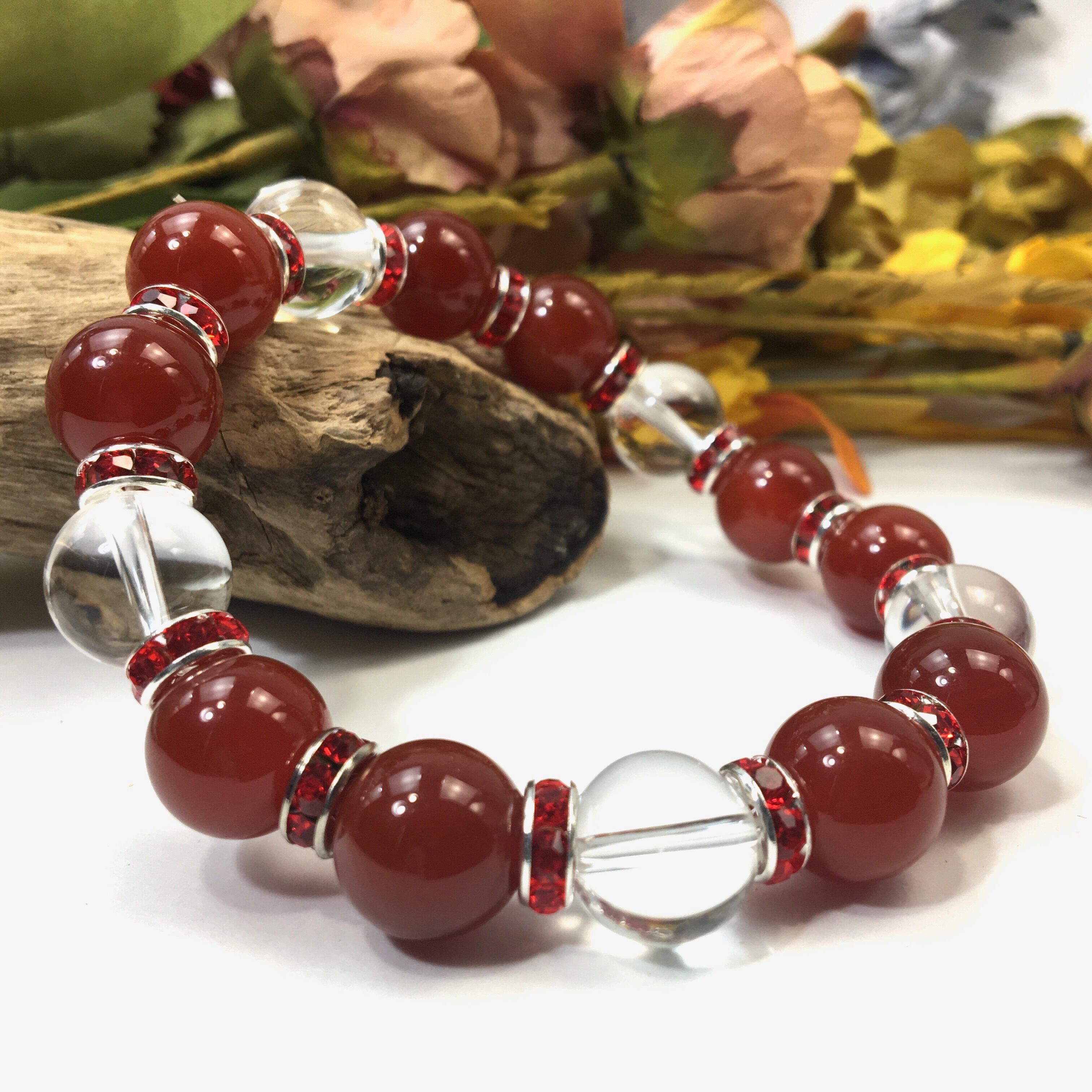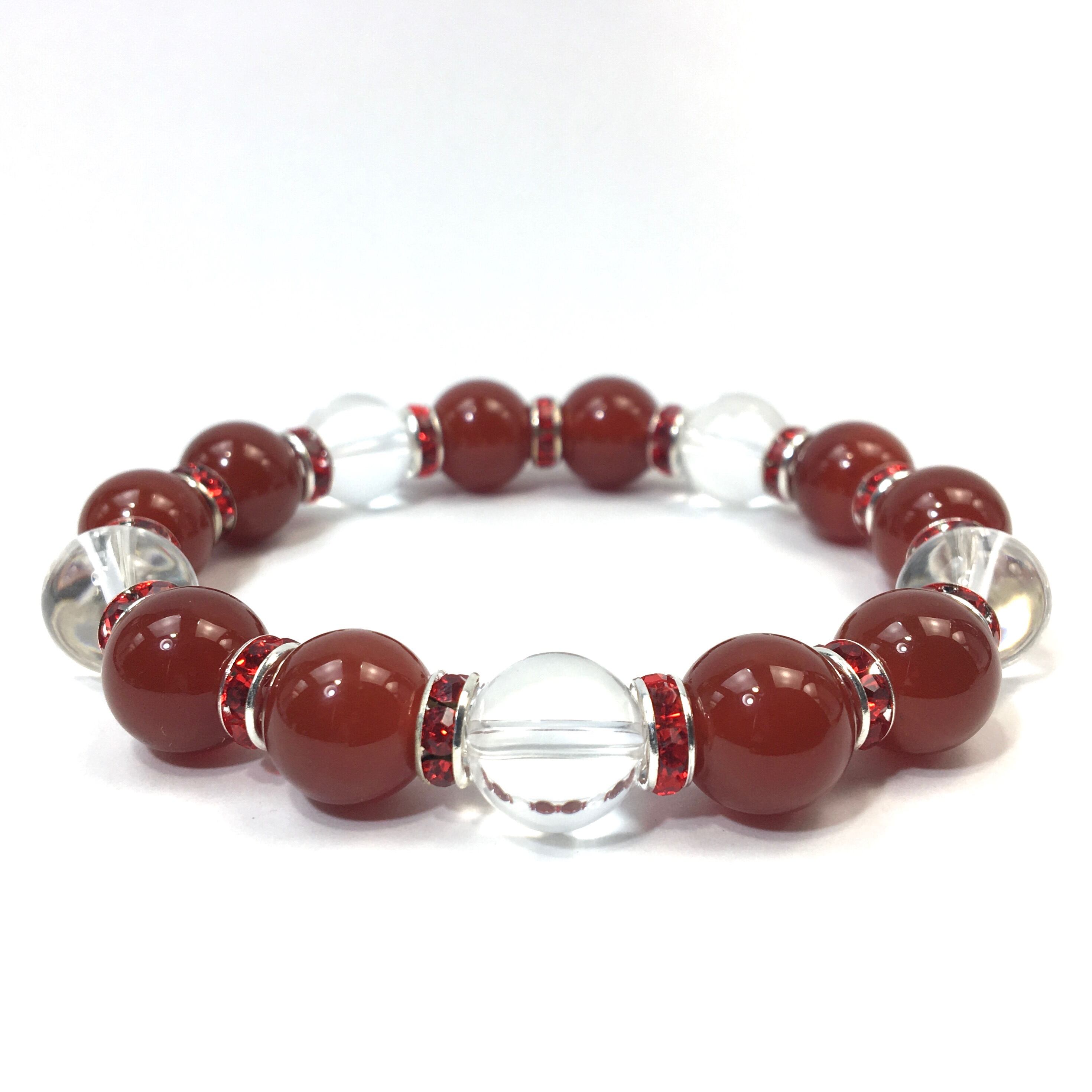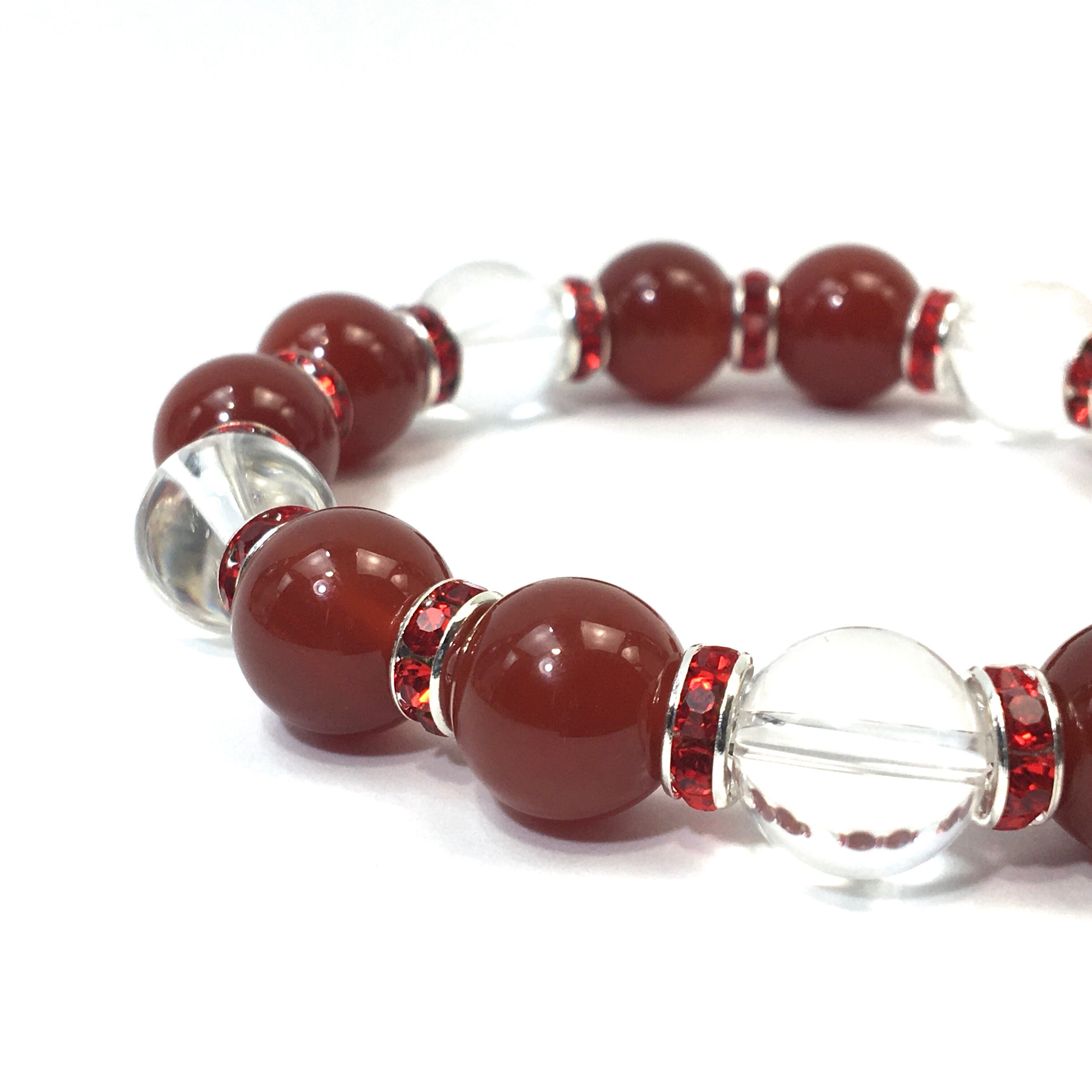 赤瑪瑙&水晶 パワーストーン ブレスレット 天然石 12mm (レッド)メンズ・レディース 男性・女性 数珠ブレス 開運 ☆