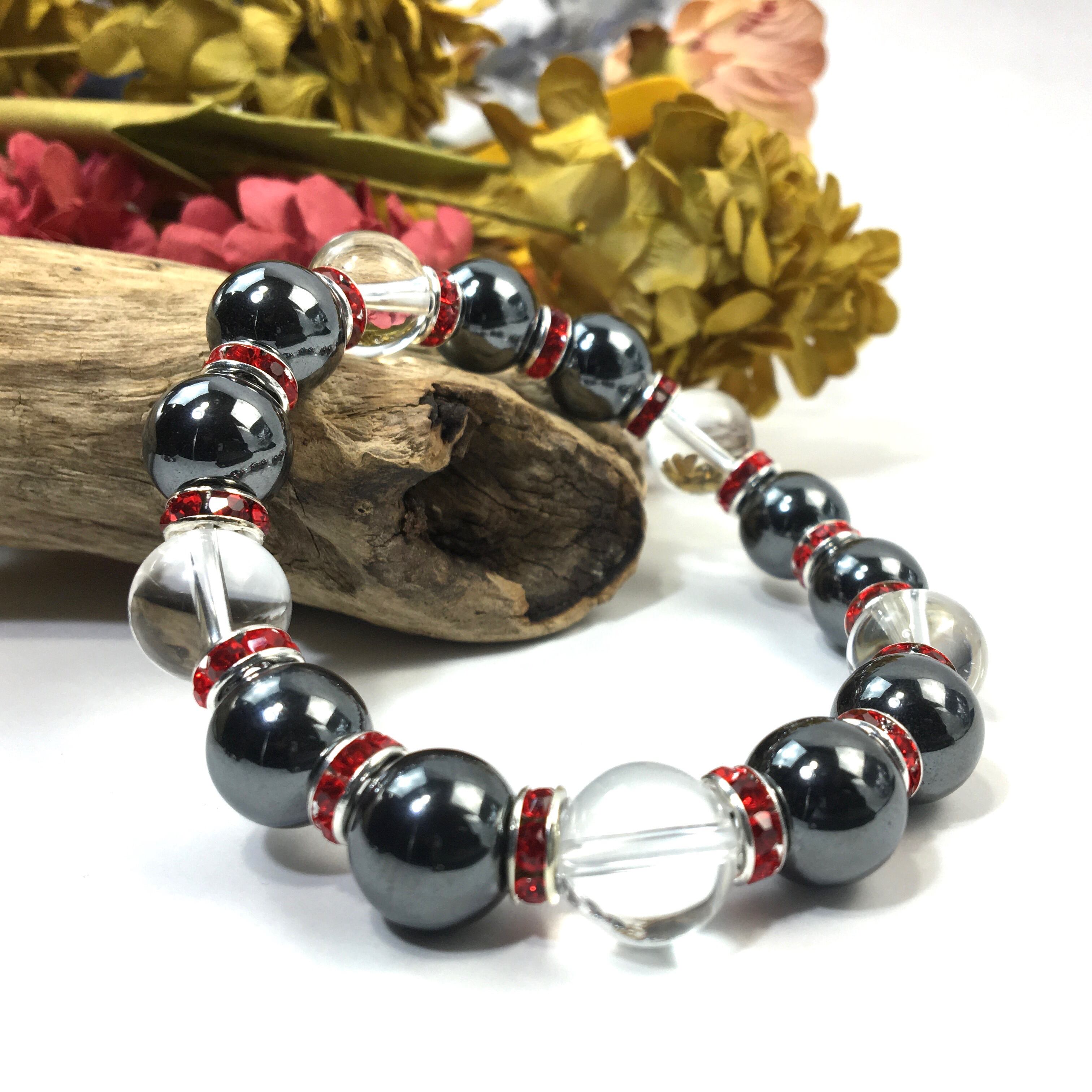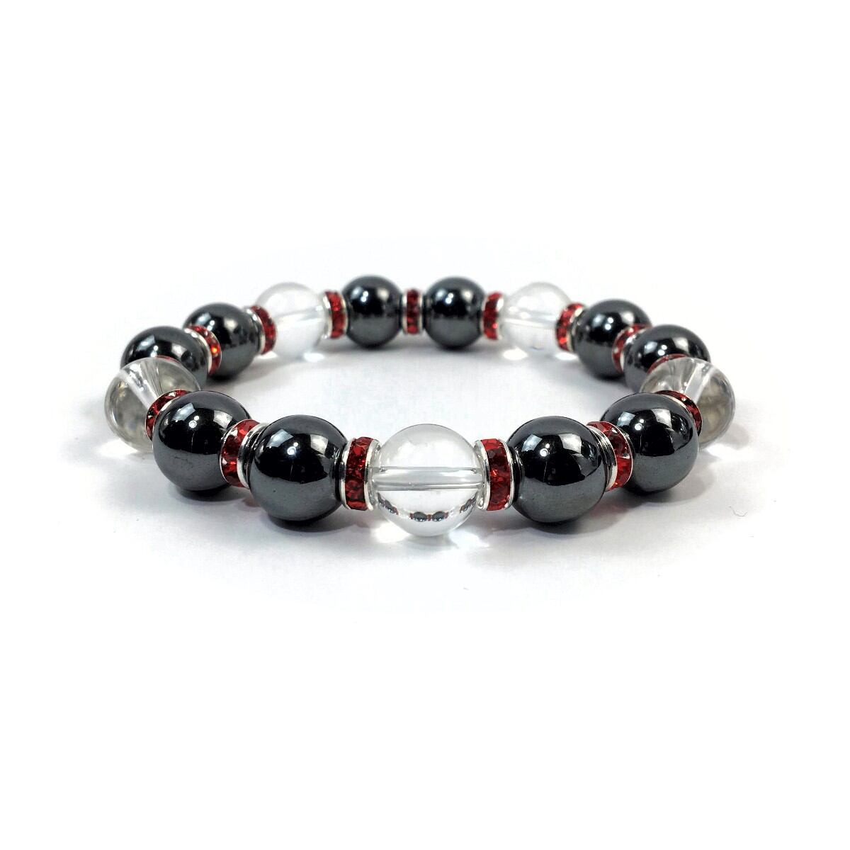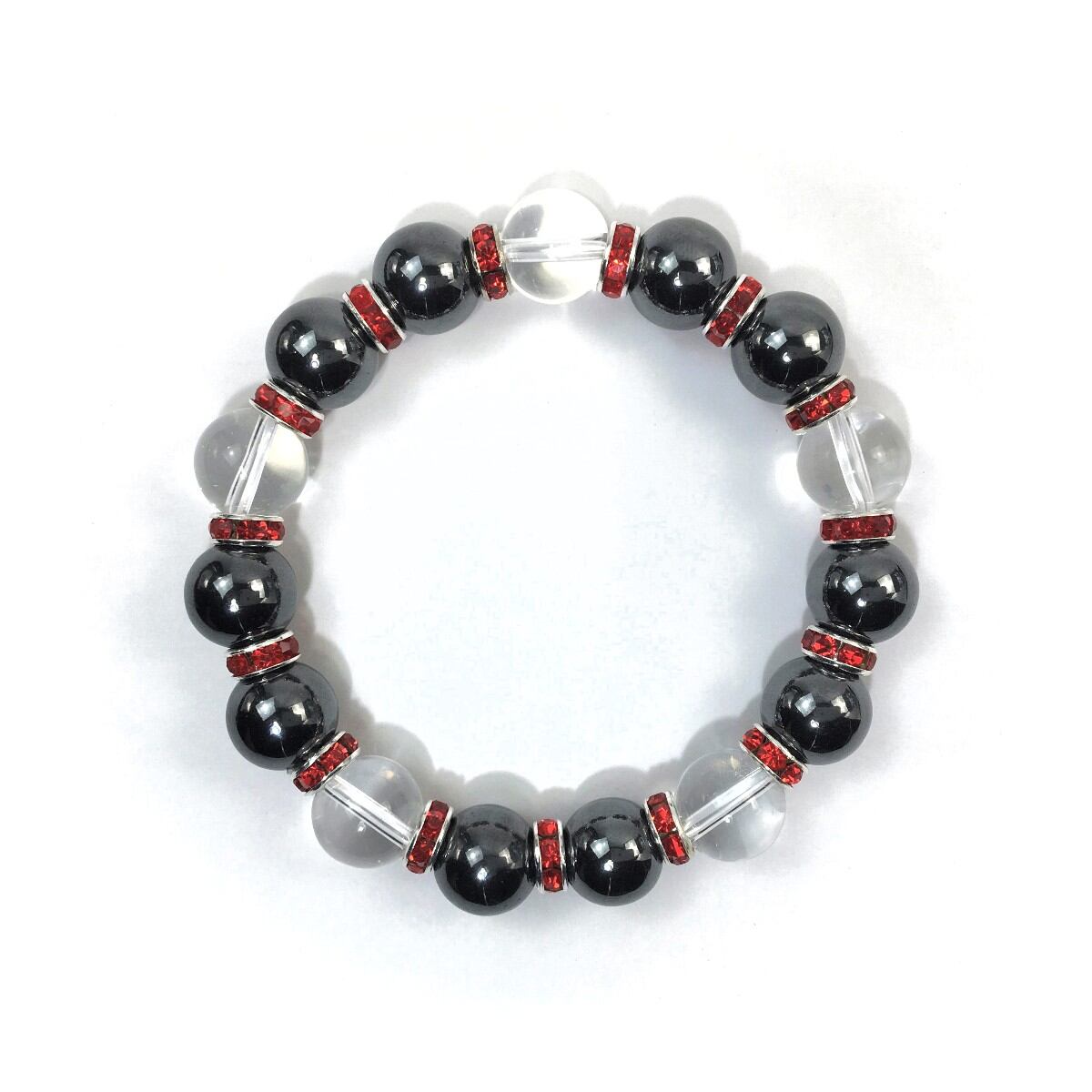 ヘマタイト&水晶 パワーストーン ブレスレット 天然石 12mm (レッド)メンズ・レディース 男性・女性 数珠ブレス 開運 ☆