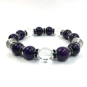こちらは、パープルタイガーアイと水晶を組み合わせたパワーストーンブレスレットです。間にはロンデルを挟み高級感あるデザインに仕上げております。石大きさは12mm玉を使用して内周約18cmです。気になる方は是非この機会にどうぞ。