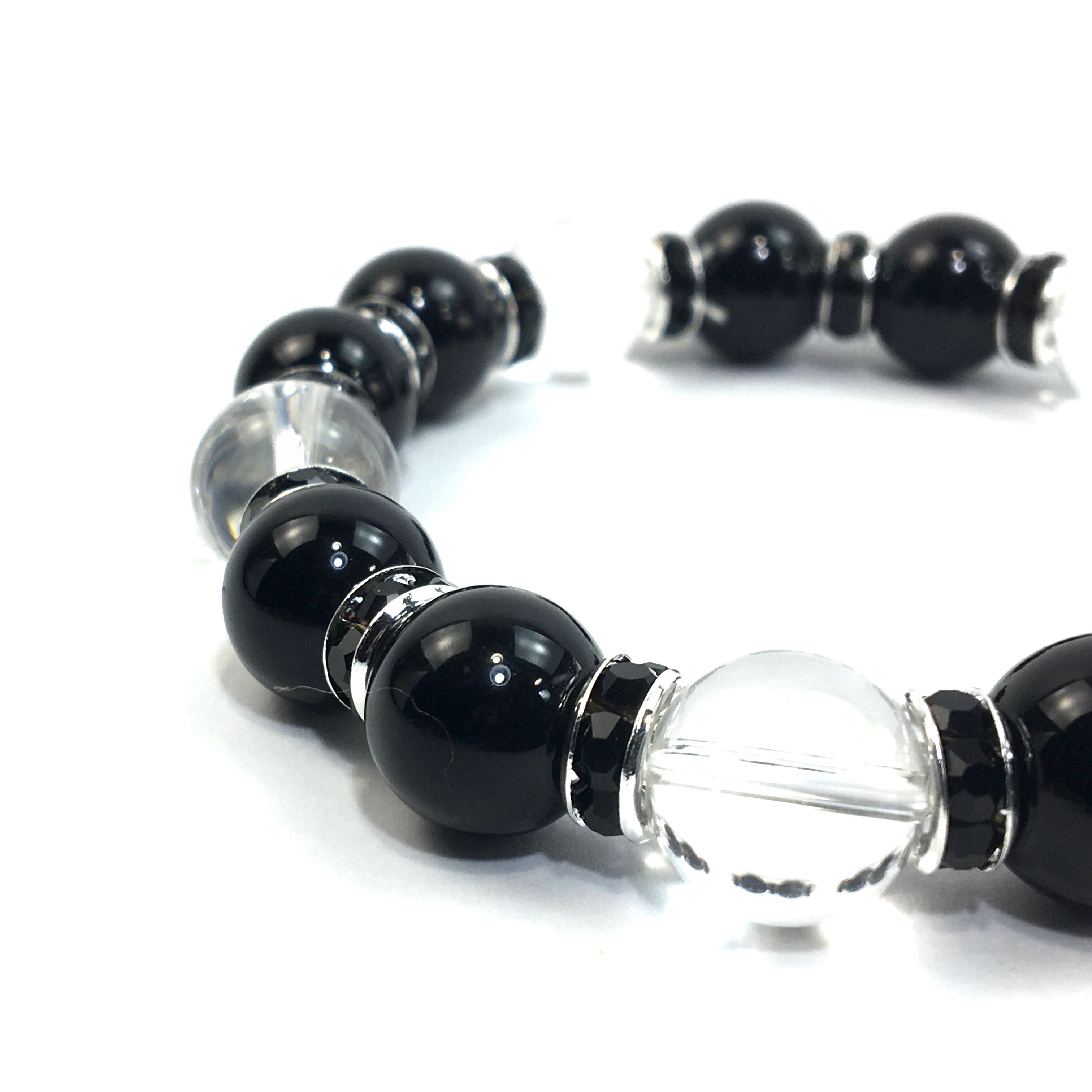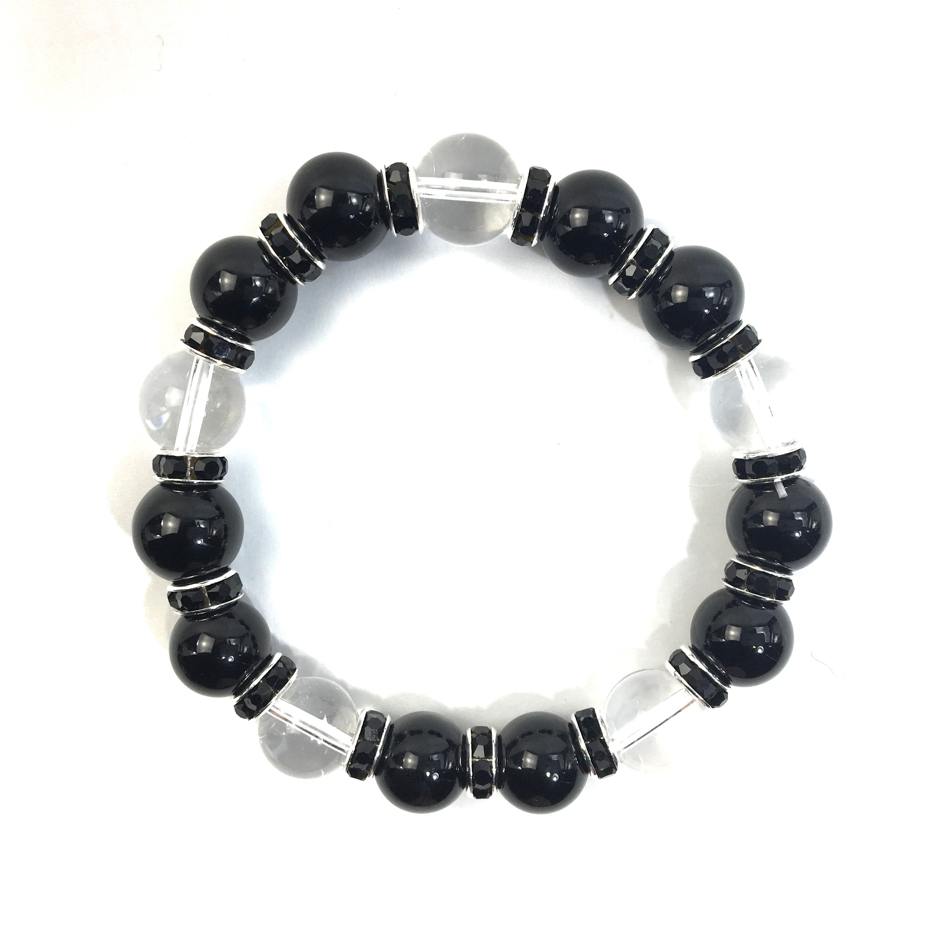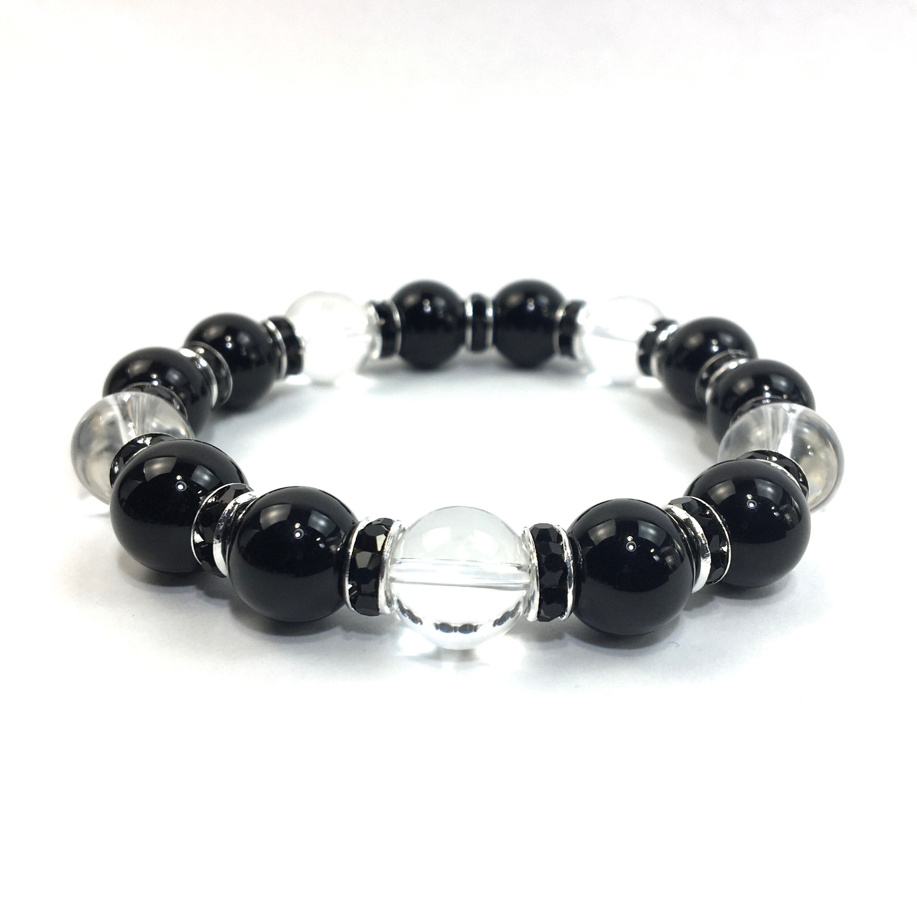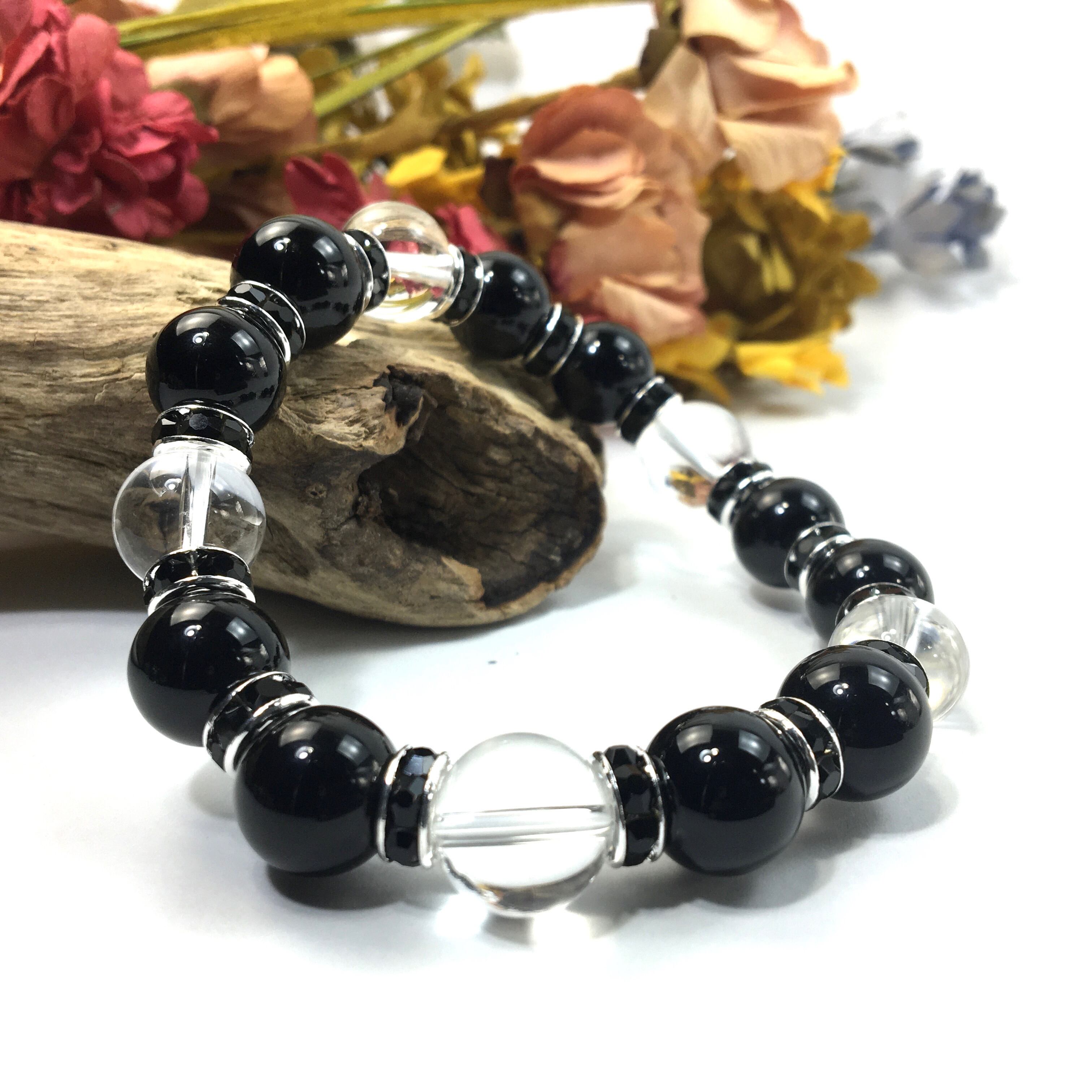 オニキス&水晶 パワーストーン ブレスレット 天然石12mm (ブラック)メンズ・レディース 男性・女性 数珠ブレス 開運 ☆