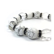 こちらは、ハウライトと水晶を組み合わせたパワーストーンブレスレットです。間にはロンデルを挟み高級感あるデザインに仕上げております。石大きさは12mm玉を使用して内周約18cmです。気になる方は是非この機会にどうぞ。