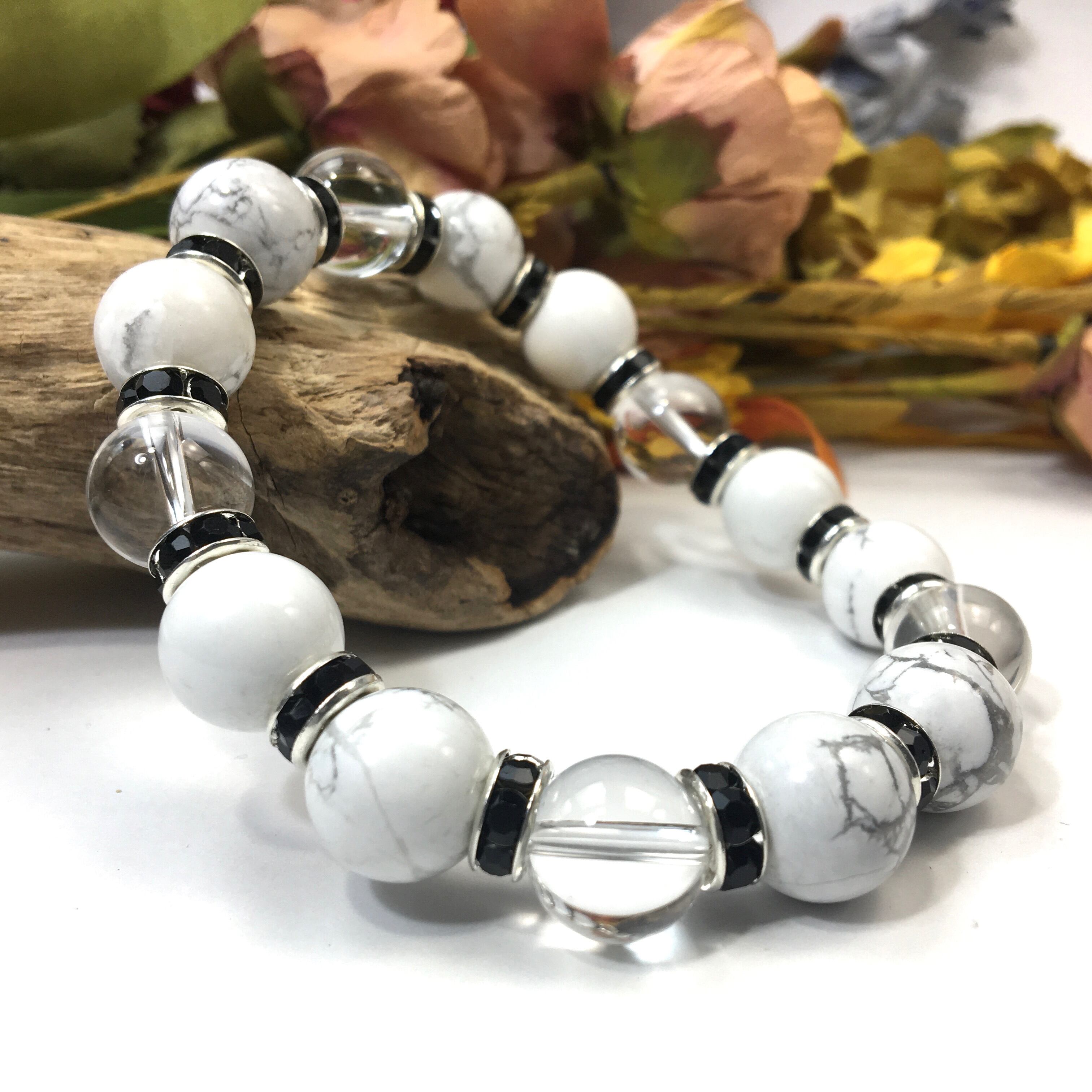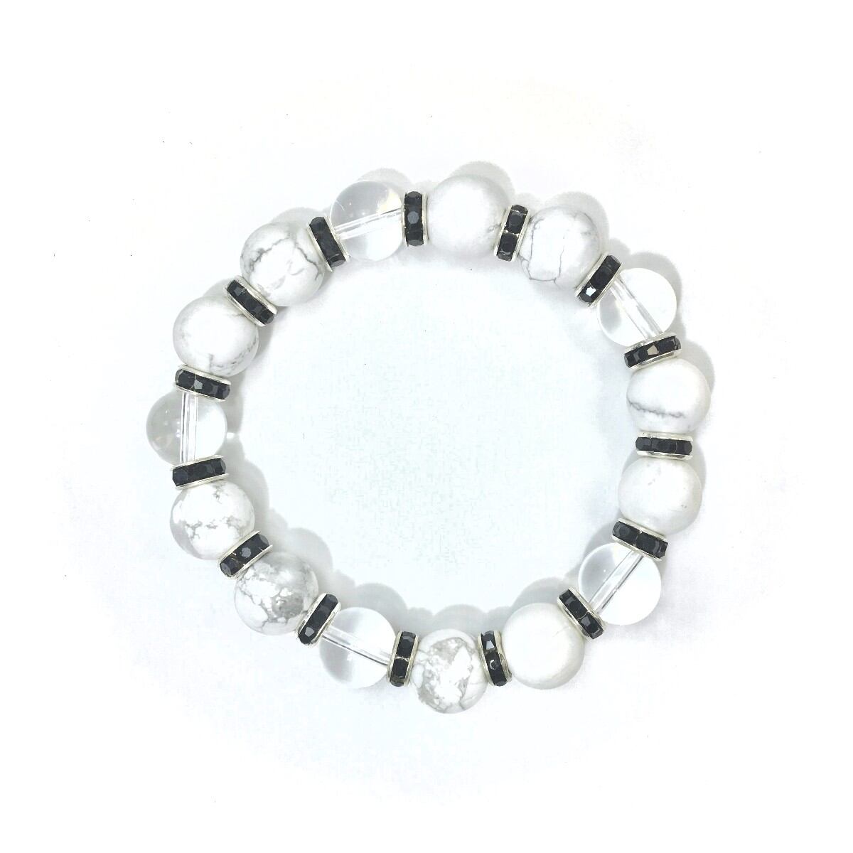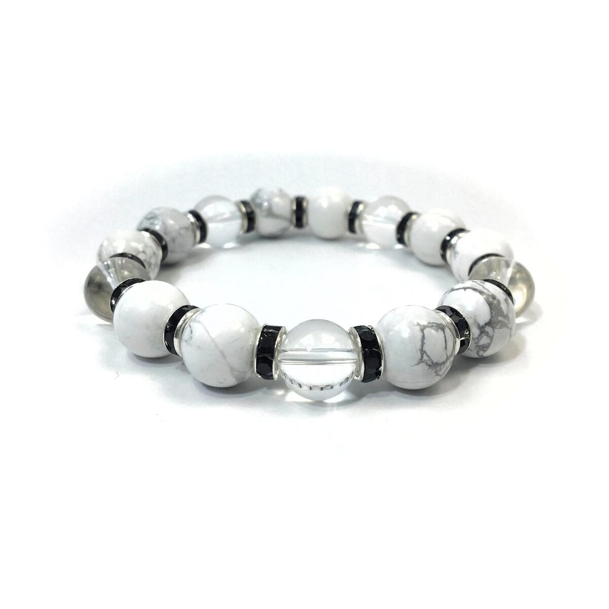 ハウライト&水晶 パワーストーン ブレスレット 天然石 12mm (ブラック)メンズ・レディース 男性・女性 数珠ブレス 開運 ☆