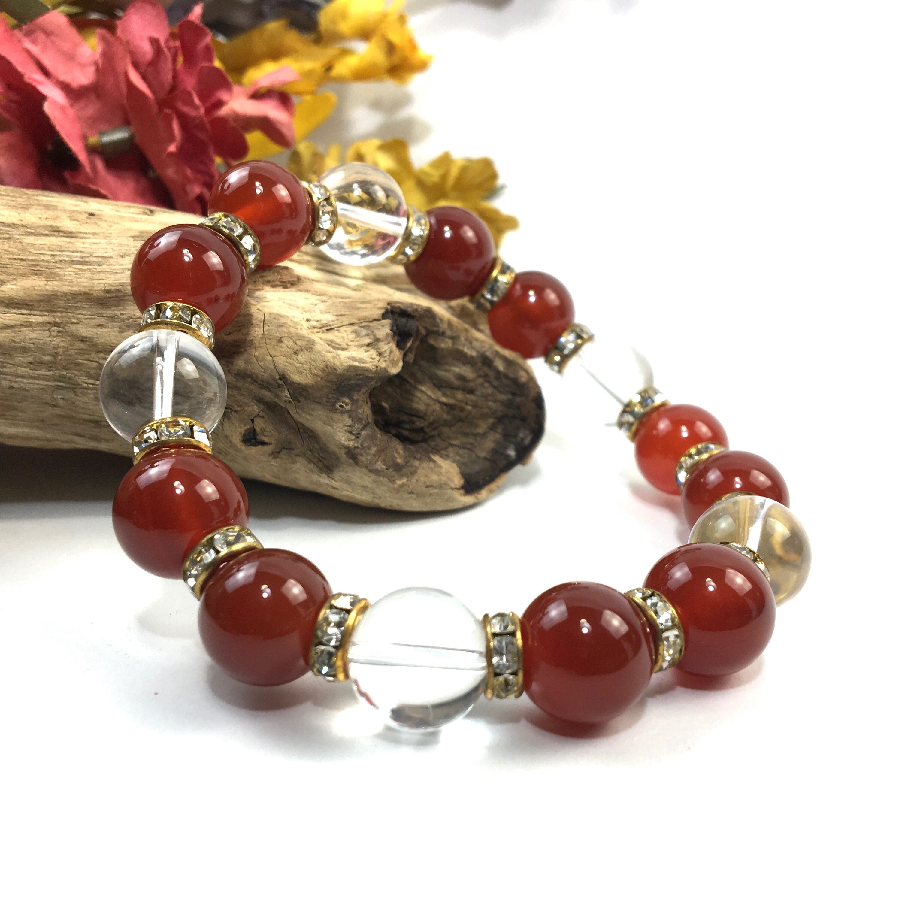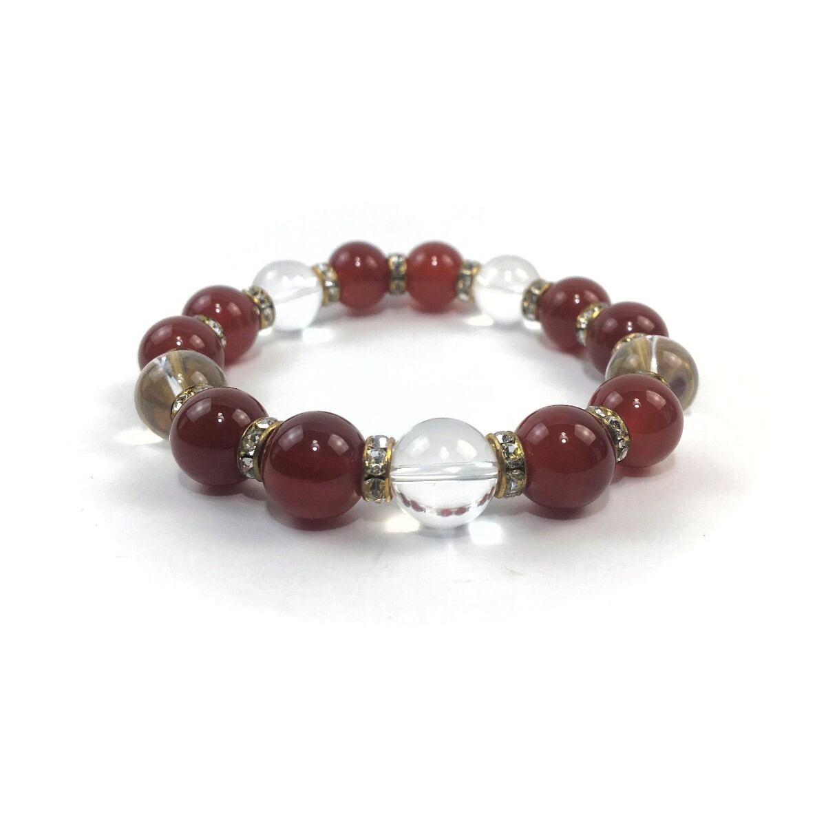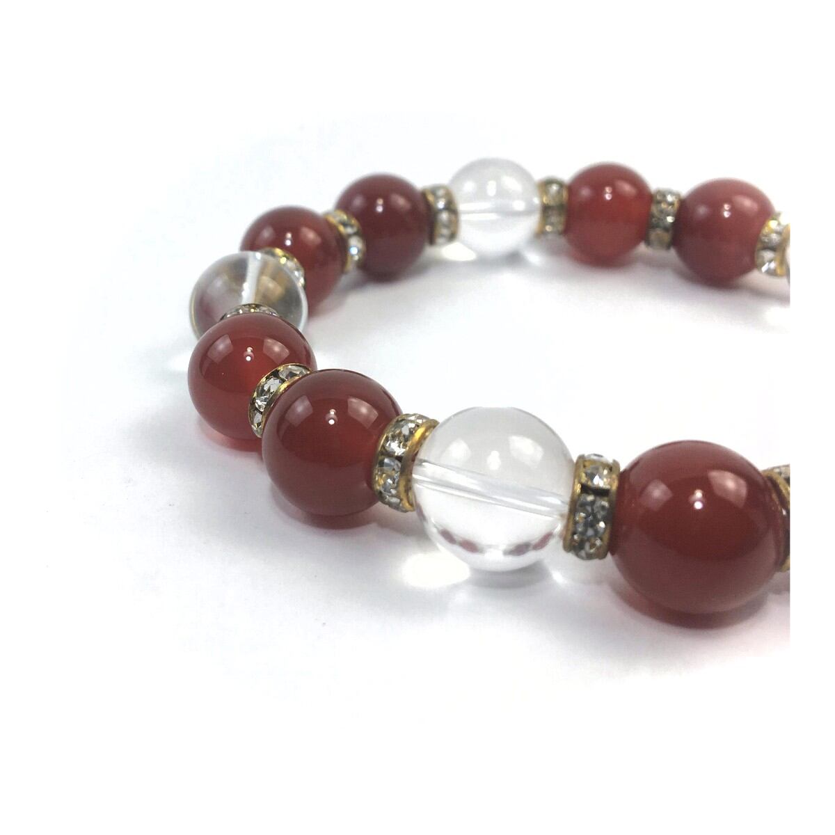 赤瑪瑙&水晶 パワーストーン ブレスレット 天然石 12mm (ゴールド)メンズ・レディース 男性・女性 数珠ブレス 開運 ☆