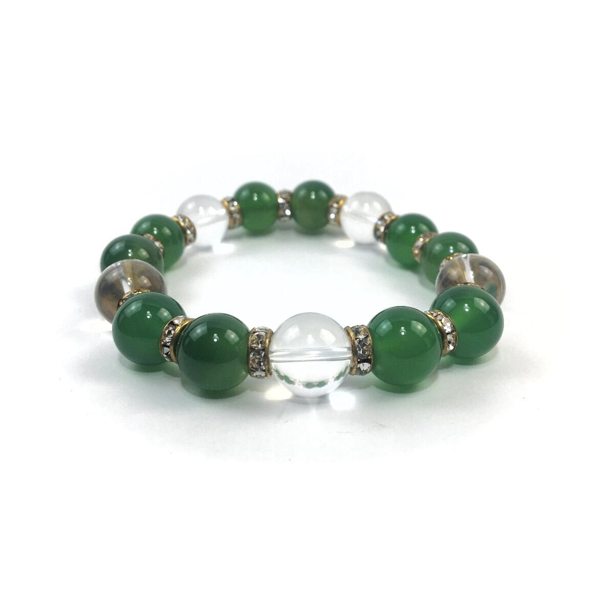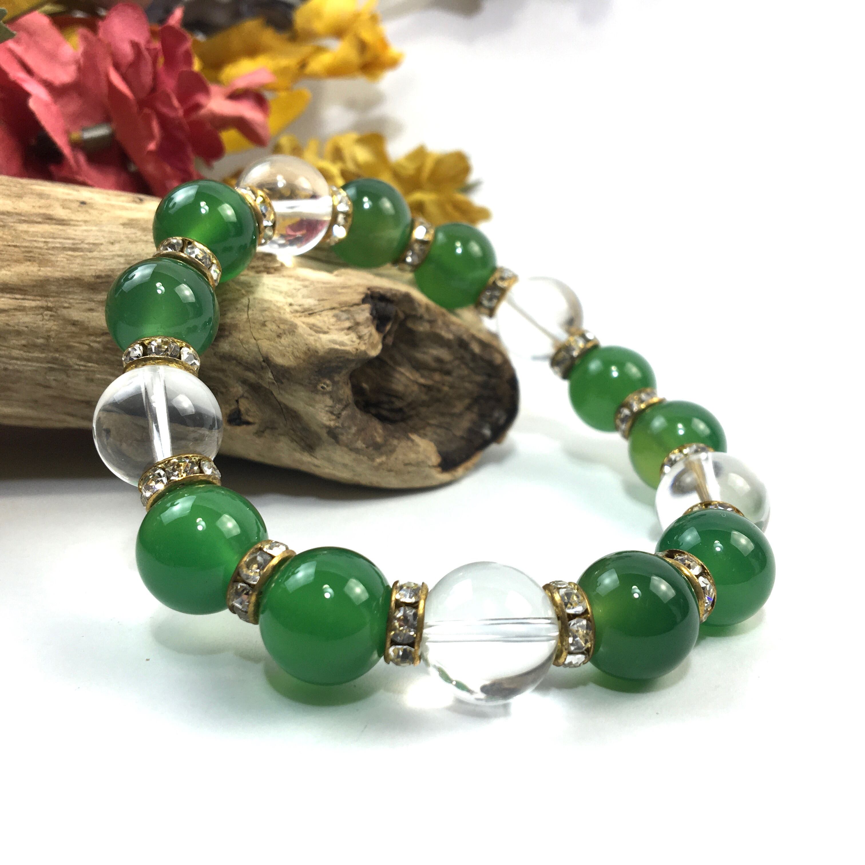 緑瑪瑙&水晶 パワーストーン ブレスレット 天然石 12mm (ゴールド)メンズ・レディース 男性・女性 数珠ブレス 開運 ☆