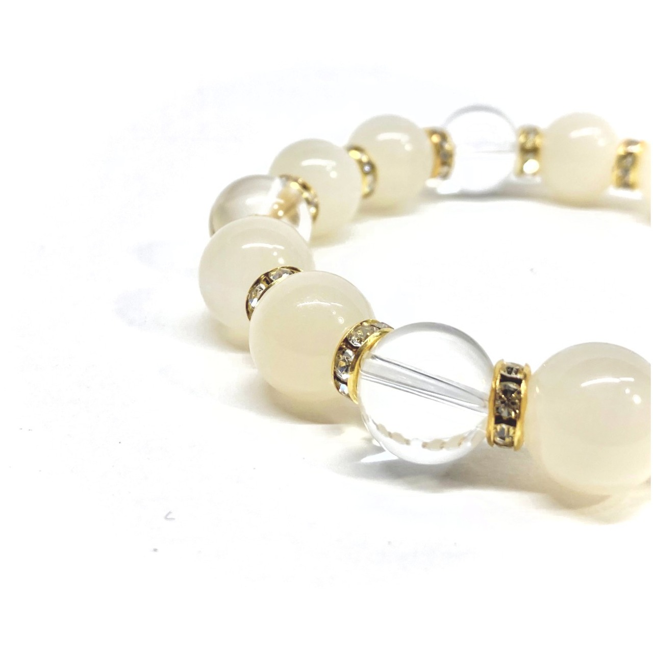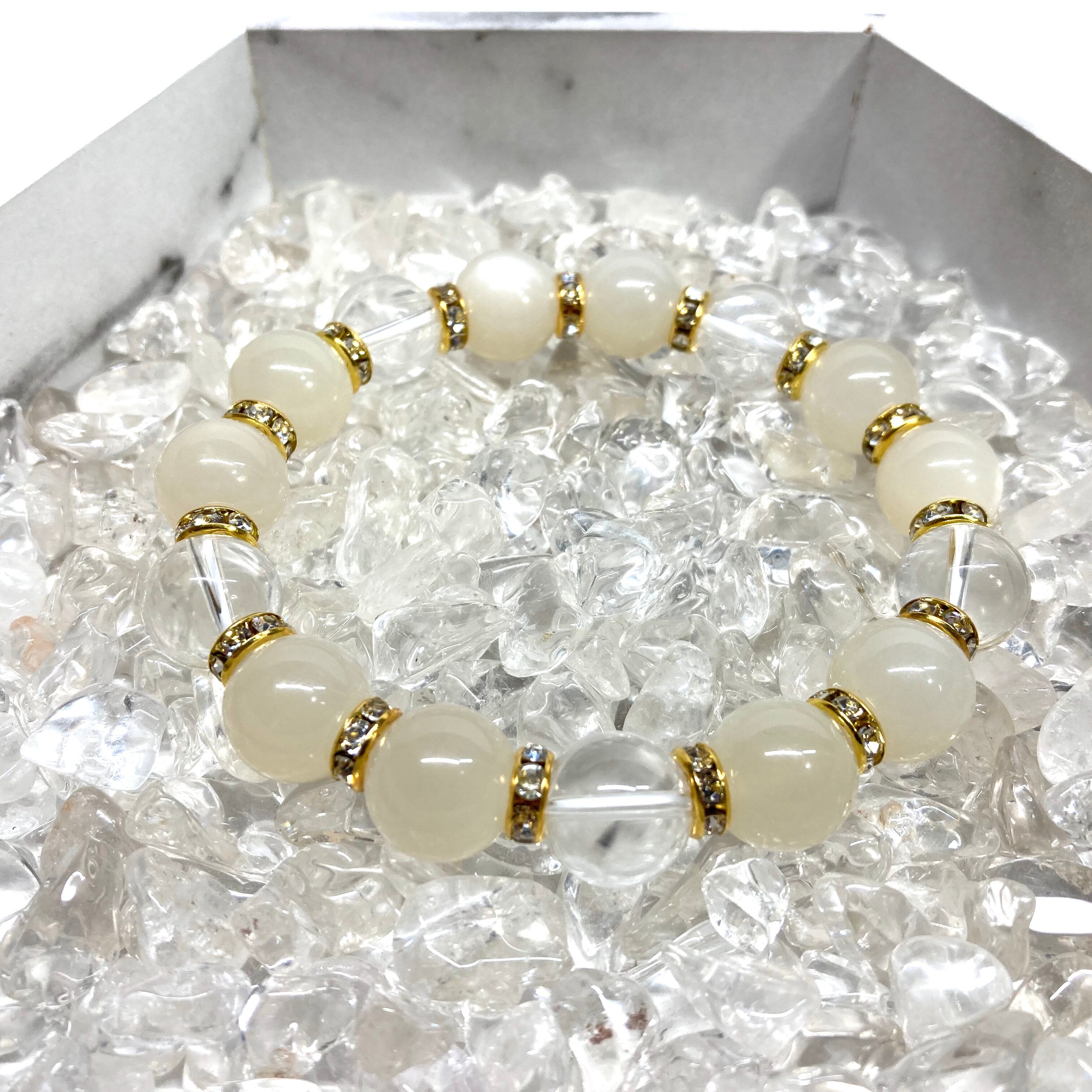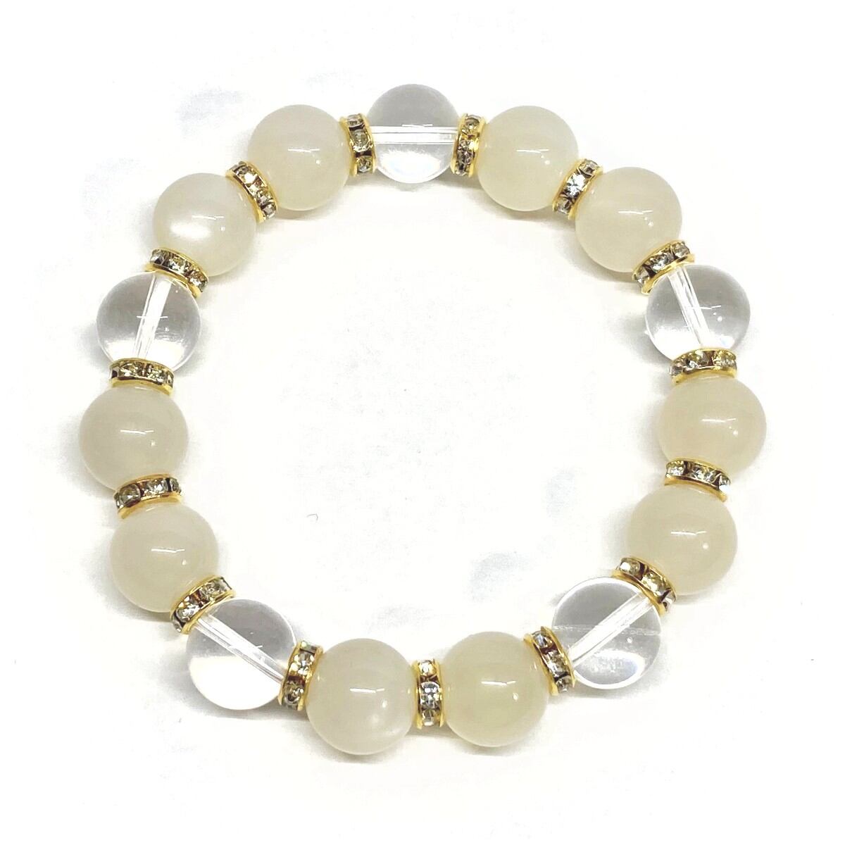 ムーンストーン&水晶 パワーストーン ブレスレット 12mm (ゴールド)メンズ・レディース 男性・女性 数珠ブレス 開運 ☆