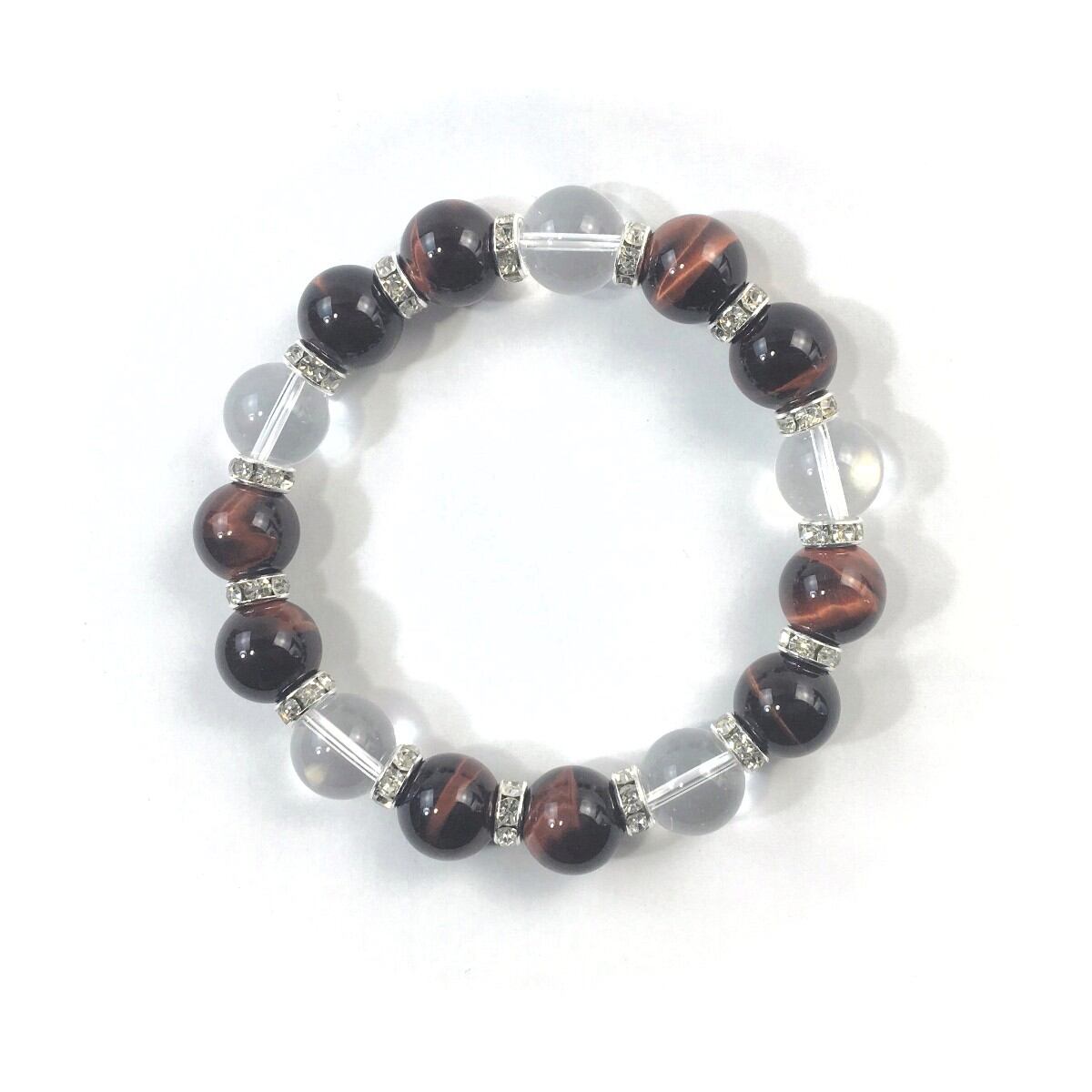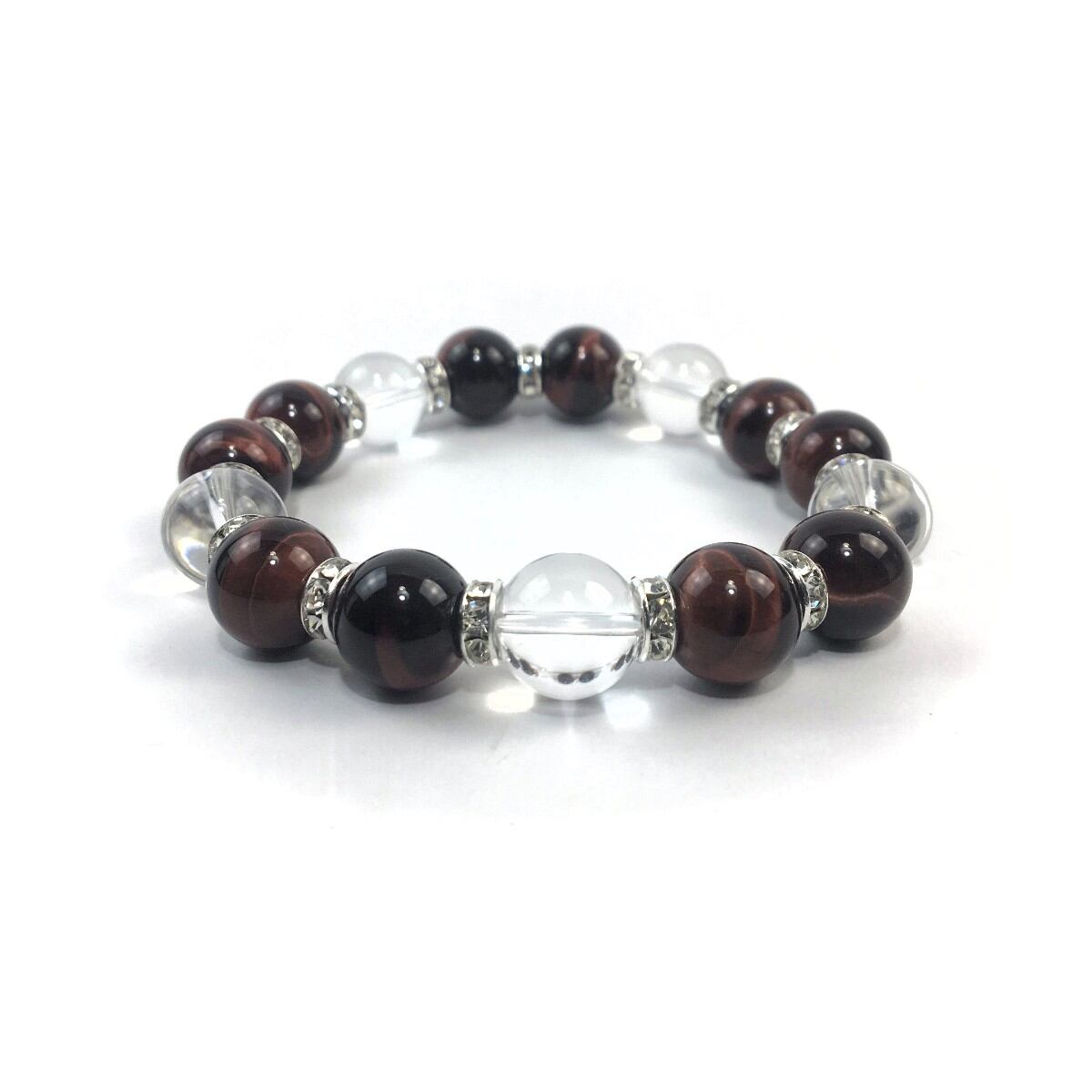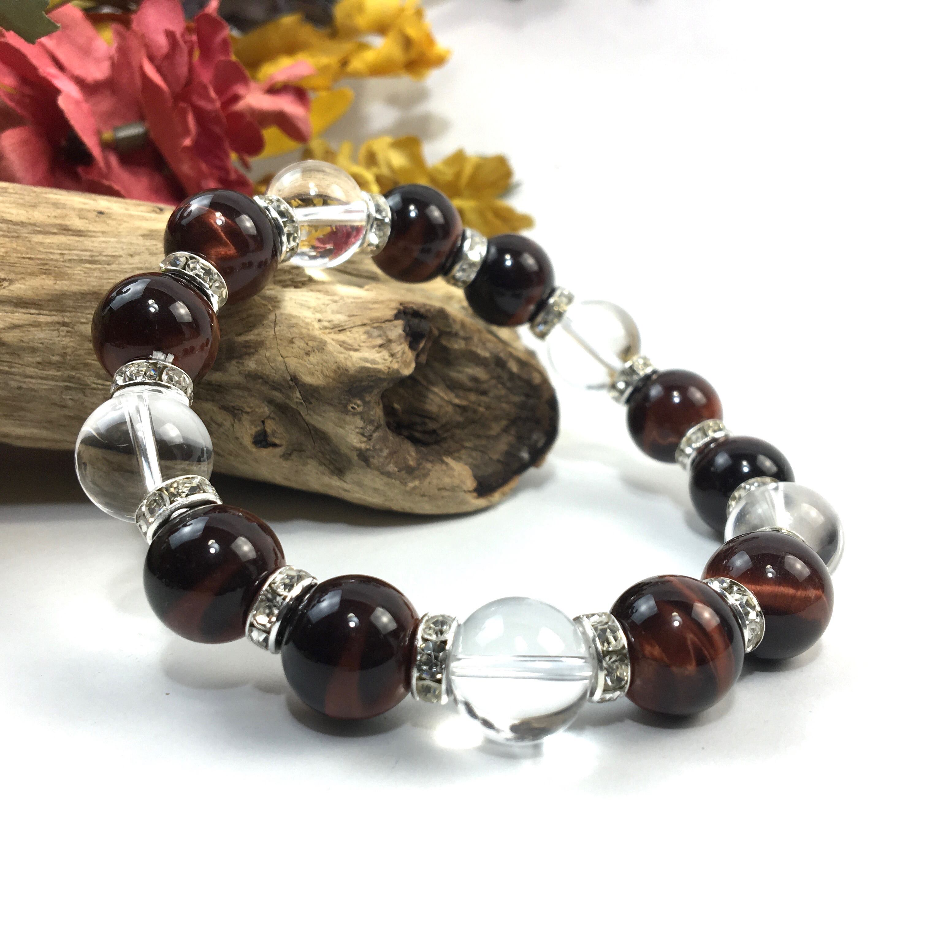 レッドタイガーアイ&水晶 パワーストーン ブレスレット 12mm (シルバー)メンズ・レディース 男性・女性 数珠ブレス 開運 ☆