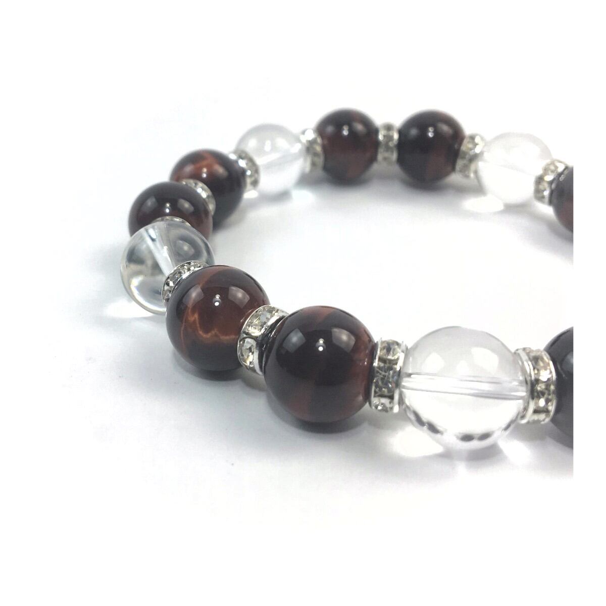 こちらは、レッドタイガーアイと水晶を組み合わせたパワーストーンブレスレットです。間にはロンデルを挟み高級感あるデザインに仕上げております。石大きさは12mm玉を使用して内周約18cmです。気になる方は是非この機会にどうぞ。