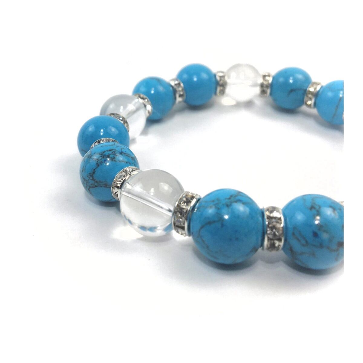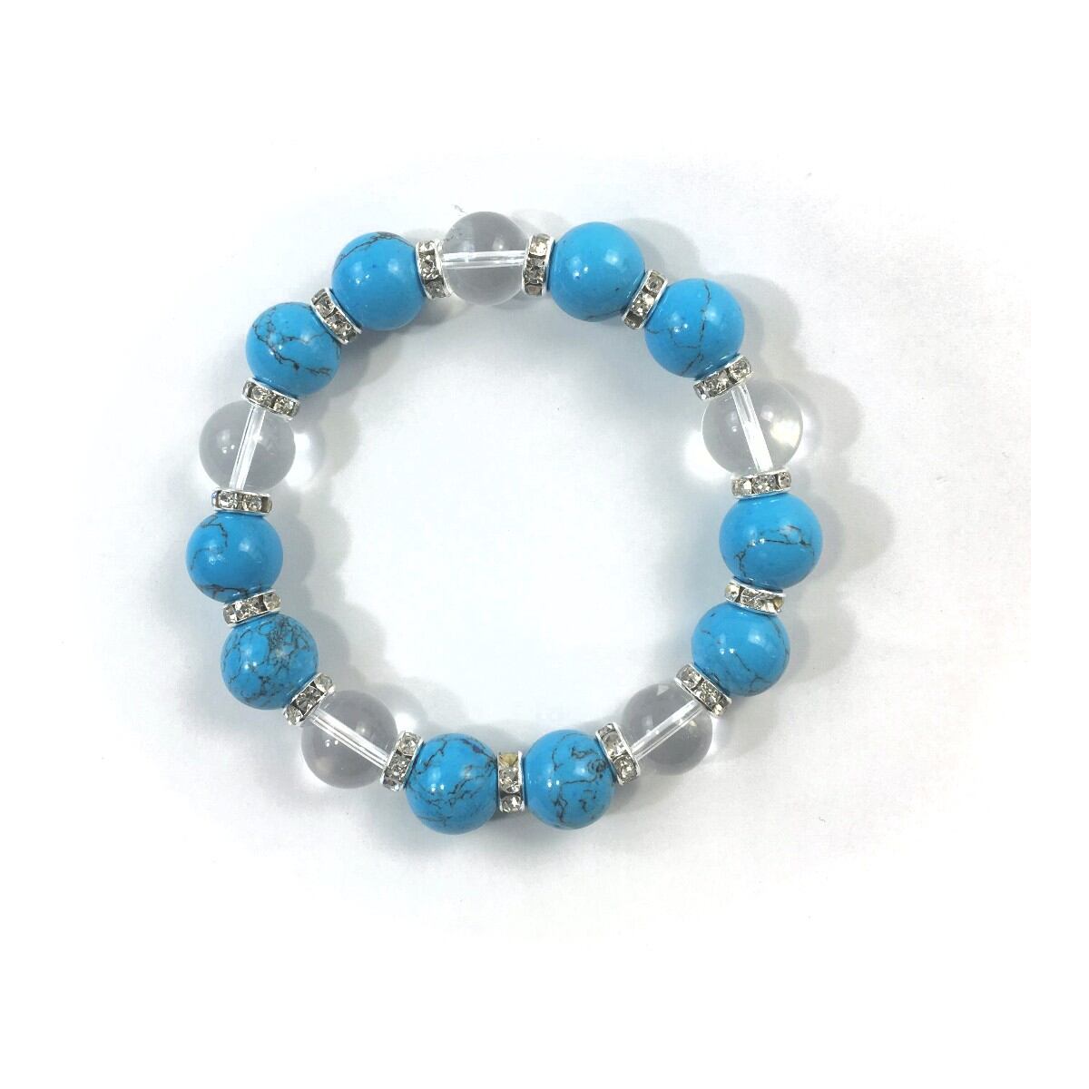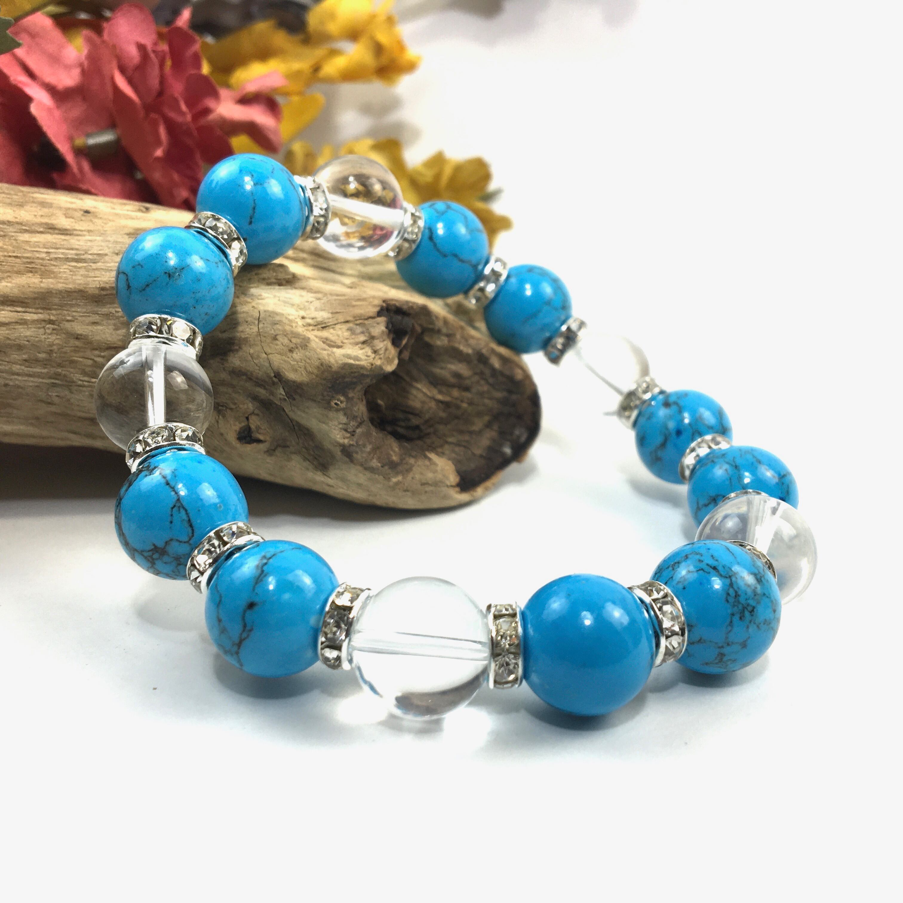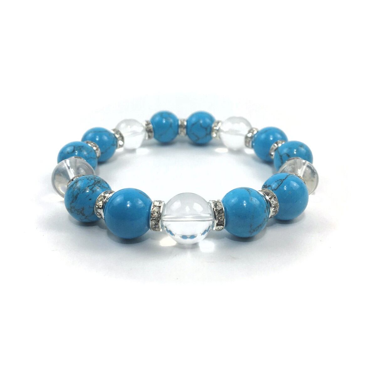 ターコイズ&水晶 パワーストーン ブレスレット 12mm (シルバー)メンズ・レディース 男性・女性 数珠ブレス 開運 ☆