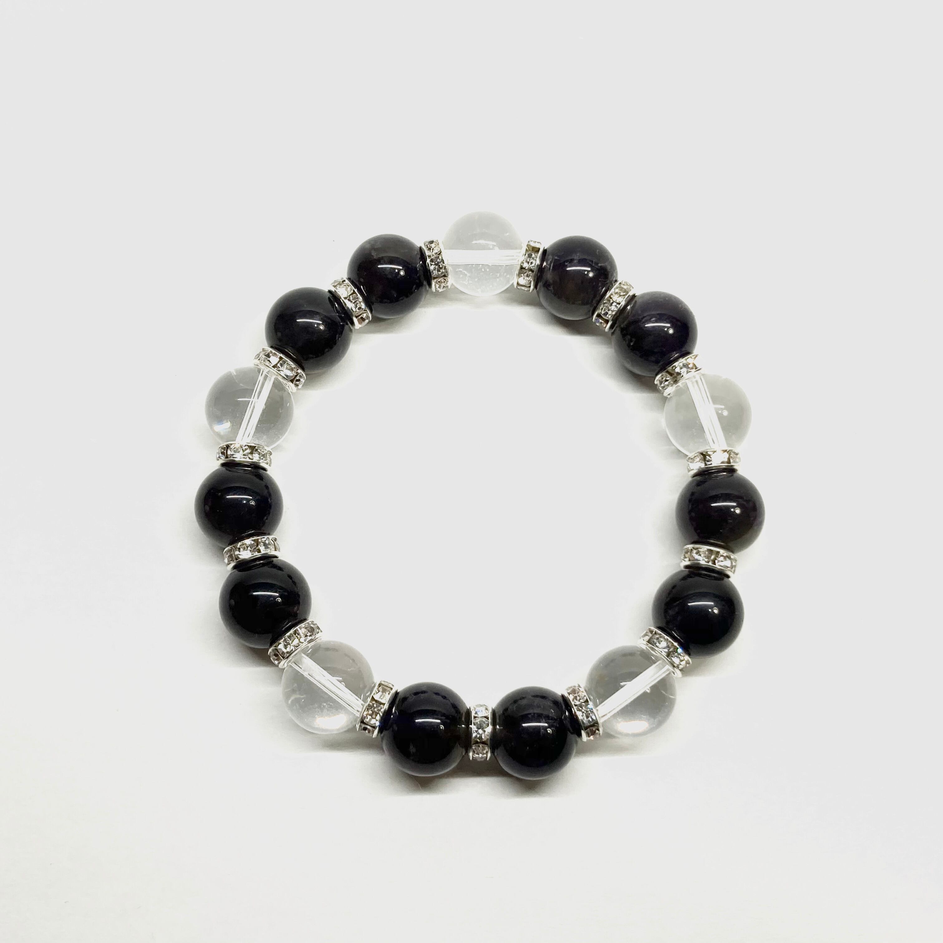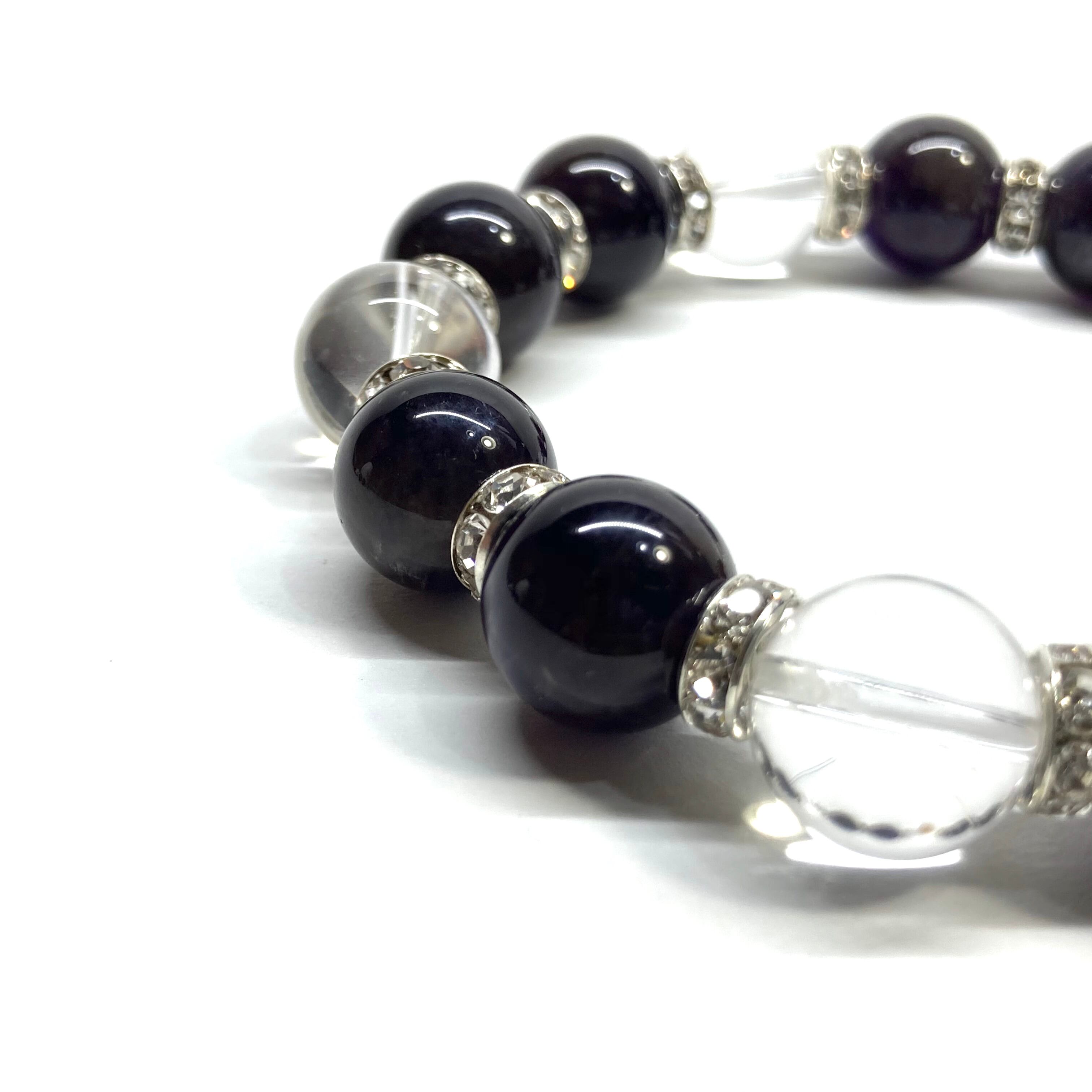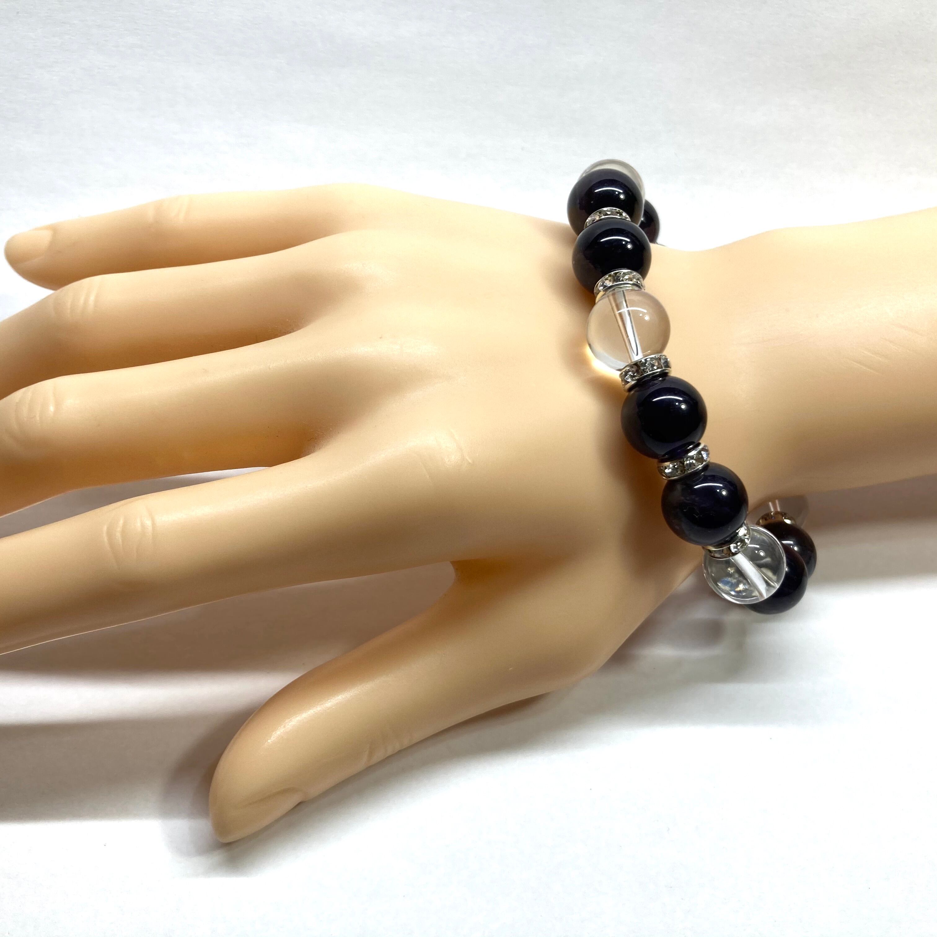 こちらは、10mm玉のアメジストと水晶を組み合わせたパワーストーンブレスレットです。間にはロンデルを挟み高級感あるデザインに仕上げております。石大きさは12mm玉を使用して内径約18cmです。数に限りがございますので気になる方はお早めにどうぞ。