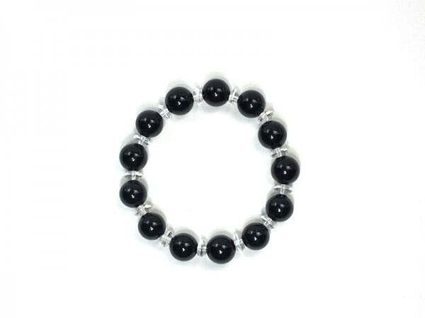 こちらは、オニキスを使用したブレスレットです。間には水晶ソロバンが挟まれてアクセントとなっております。石大きさは腕にも馴染みやすいように12mm玉で内周約17cm(伸可能)です。気になる方は是非この機会にどうぞ。
