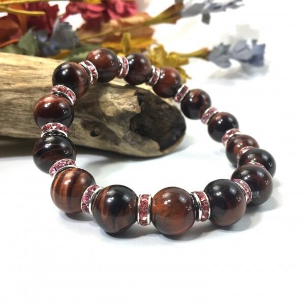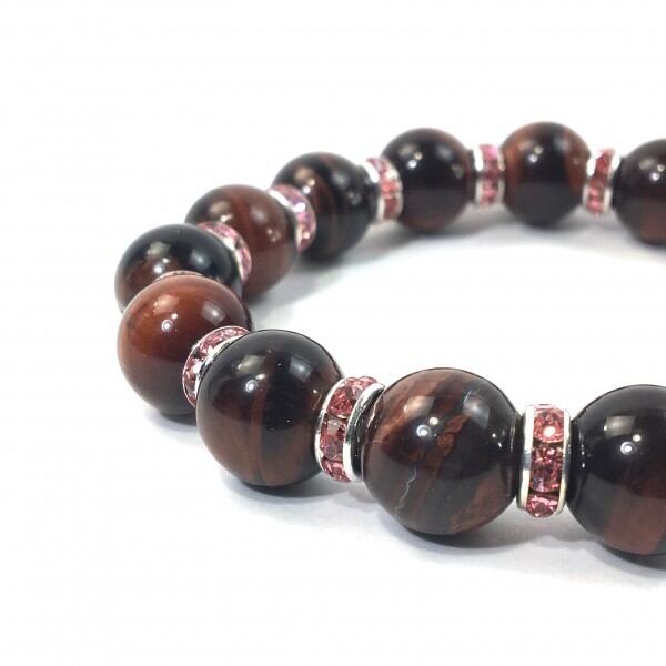 パワーストーン ブレスレット レッドタイガーアイ 12mm 天然石ブレス (ピンク)メンズ・レディース 男性・女性 数珠ブレス 開運 ☆