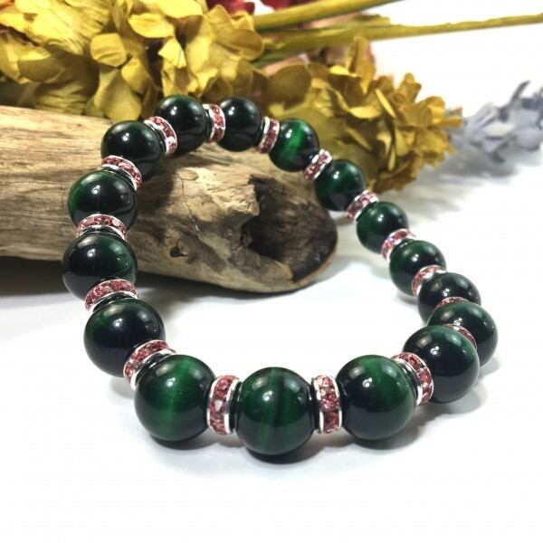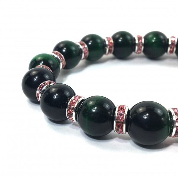 パワーストーン ブレスレット グリーンタイガーアイ 12mm (ピンク)メンズ・レディース 男性・女性 数珠ブレス 開運 ☆