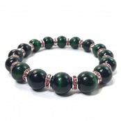 こちらは、12mm玉のグリーンタイガーアイを使用したブレスレットです。石との間にはロンデルを挟み高級感を演出しています。シンプルなデザインですのでどんなコーディネートとも合わせ易いブレスレットです。石大きさは12mm玉です。内周約18cmです。気になる方は是非この機会にどうぞ。