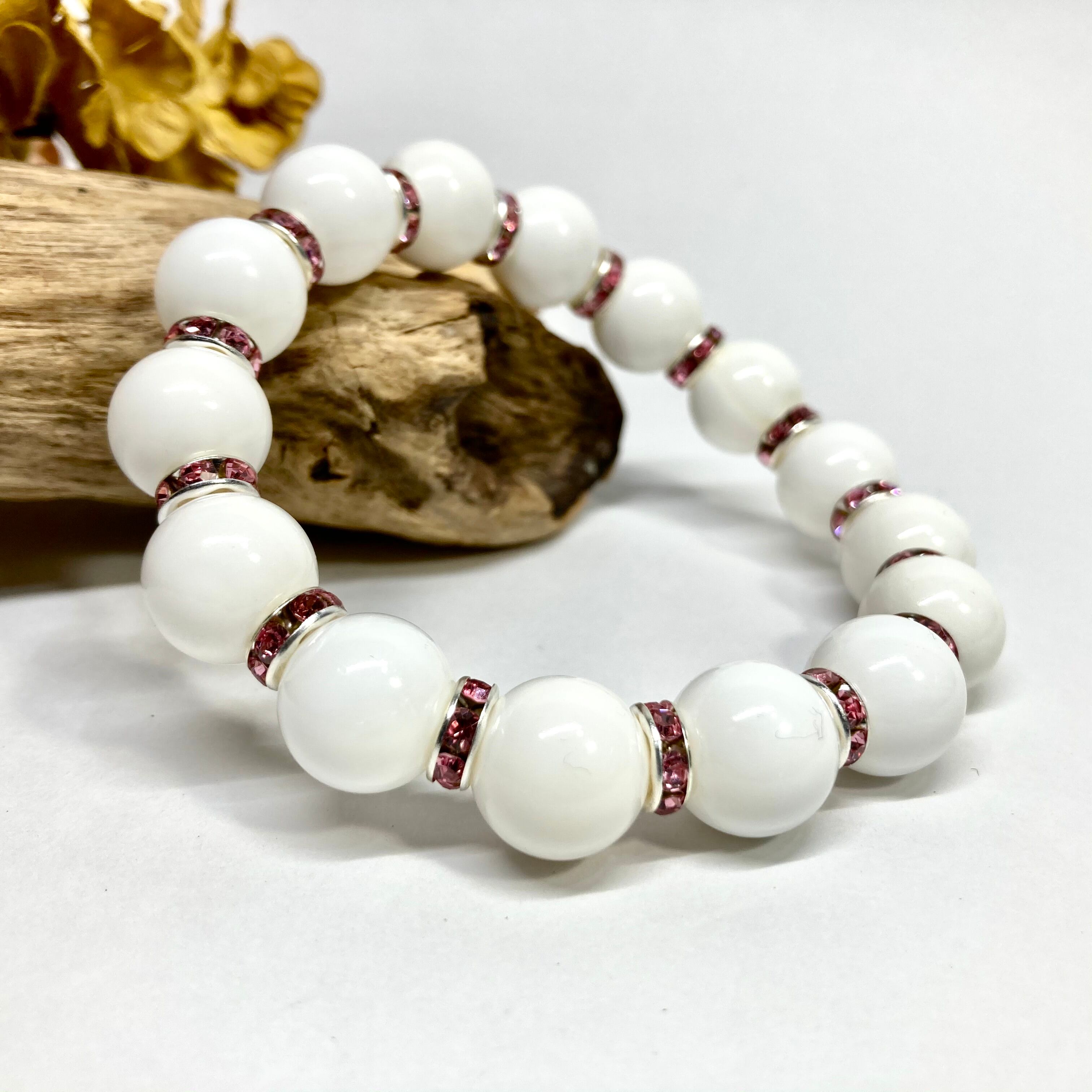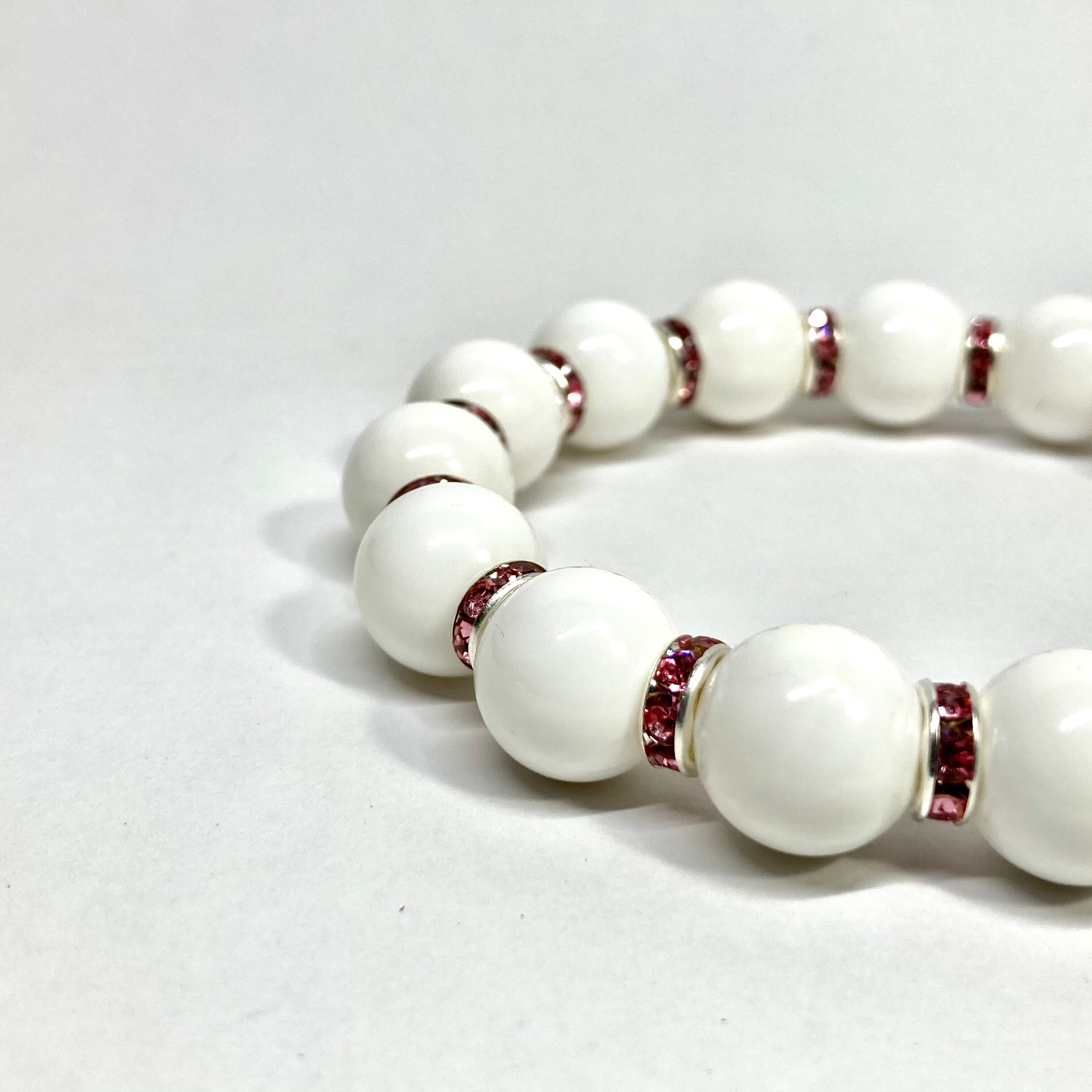 ホワイトオニキス パワーストーン ブレスレット 12mm 天然石ブレス (ピンク)メンズ・レディース 男性・女性 数珠ブレス 開運 ☆