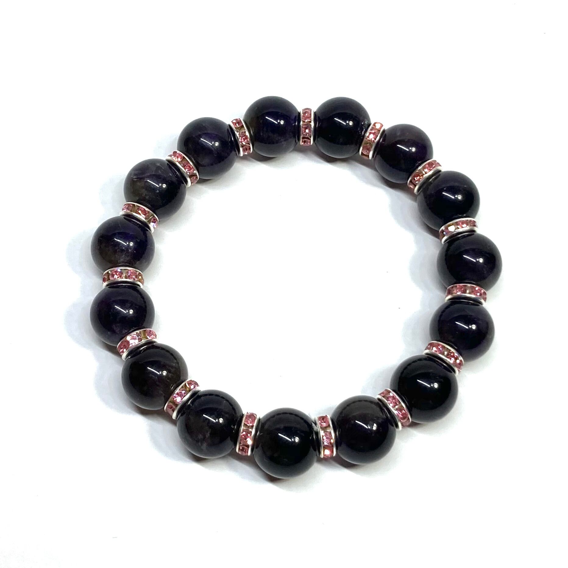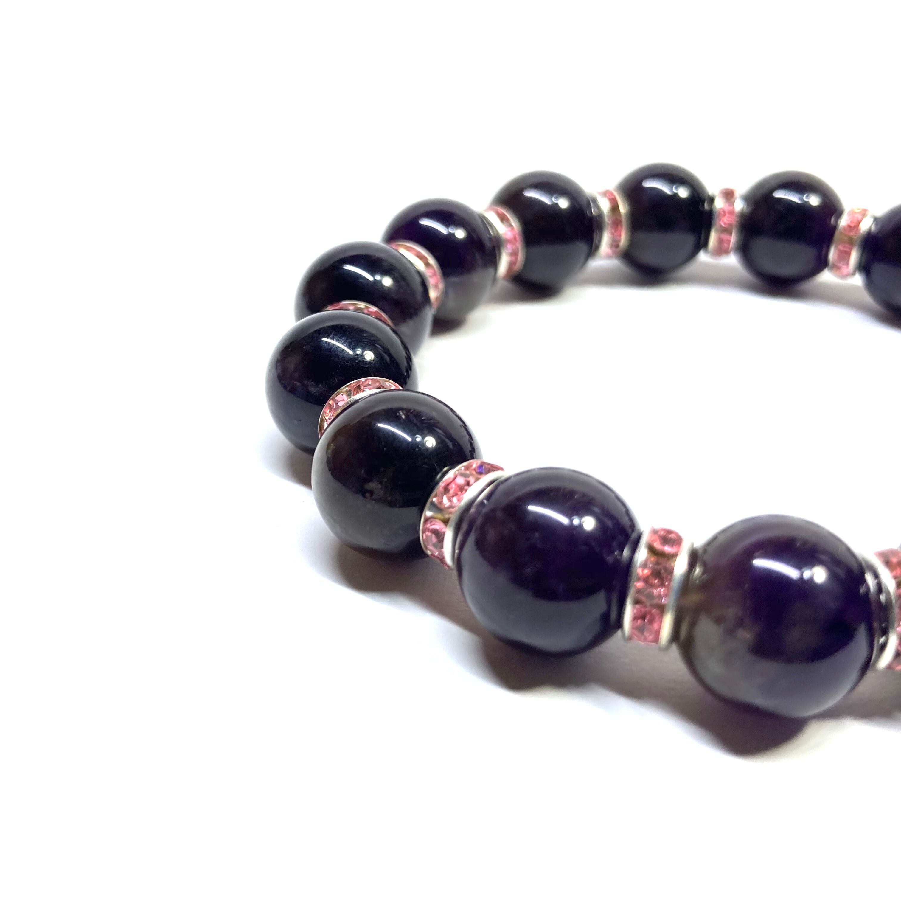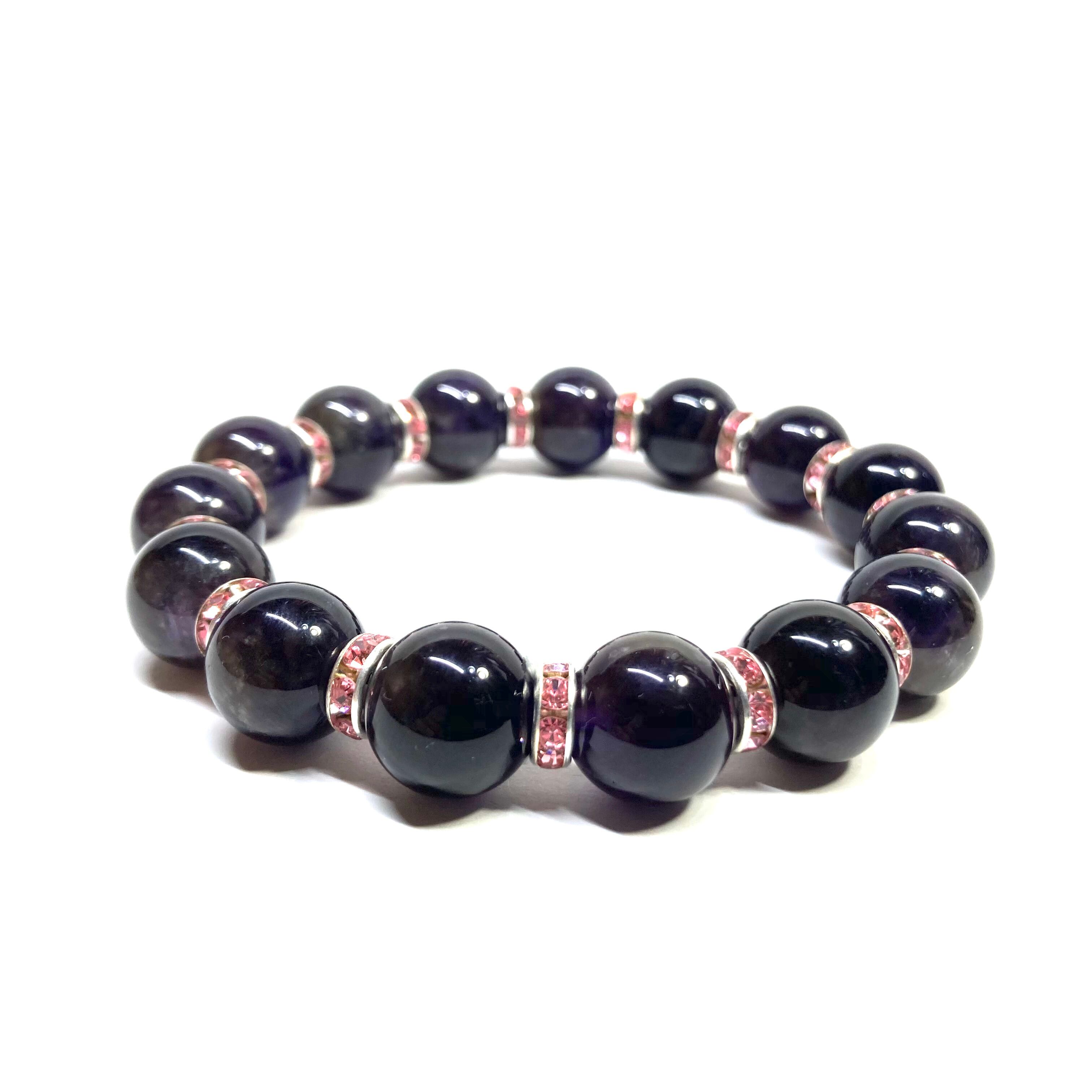アメジスト パワーストーン ブレスレット 12mm 天然石ブレス (ピンク)メンズ・レディース 男性・女性 数珠ブレス 開運 ☆
