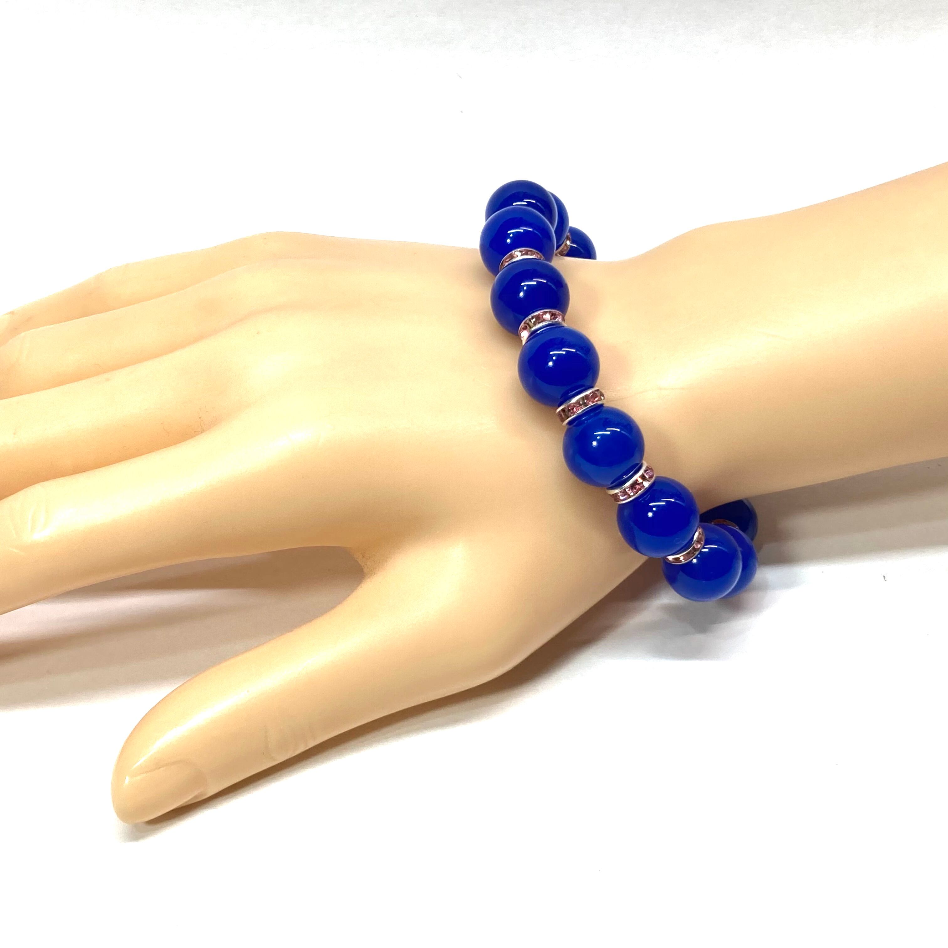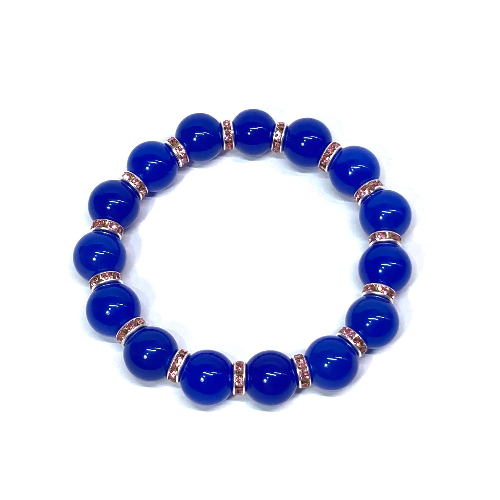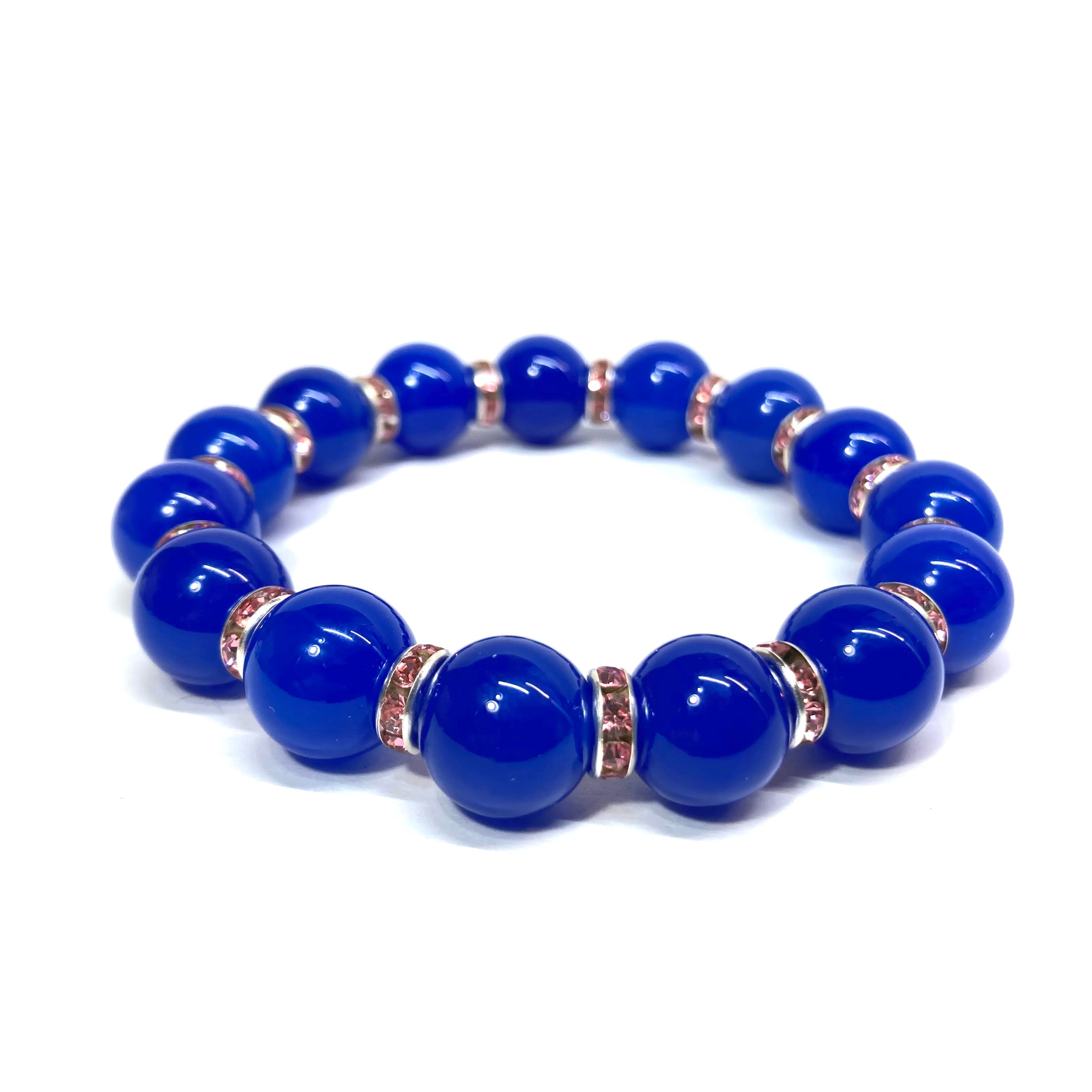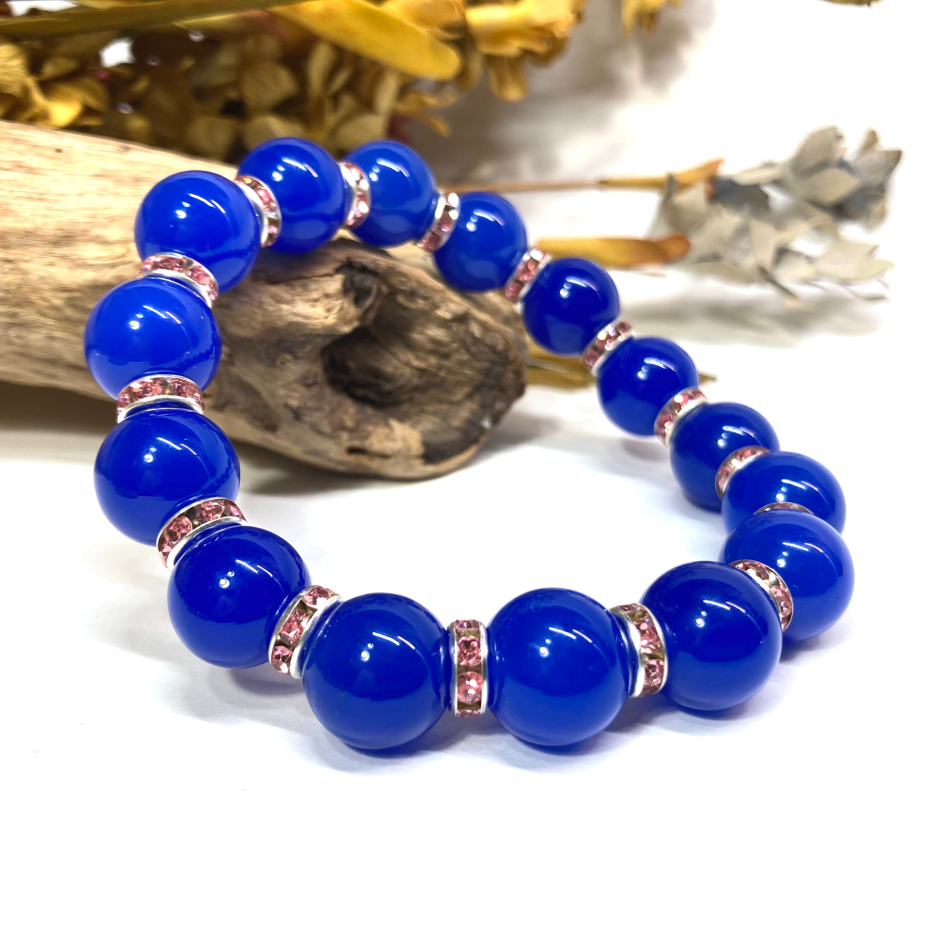 こちらは、12mm玉の青瑪瑙を使用したパワーストーンブレスレットです。間にはロンデルを挟み高級感を演出しております。男女問わずどんなコーディネートとも合わせ易いブレスレットです。サイズは内周約18cmです。数に限りがございますので気になる方はお早めにどうぞ。