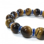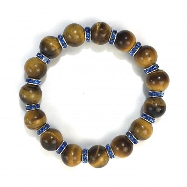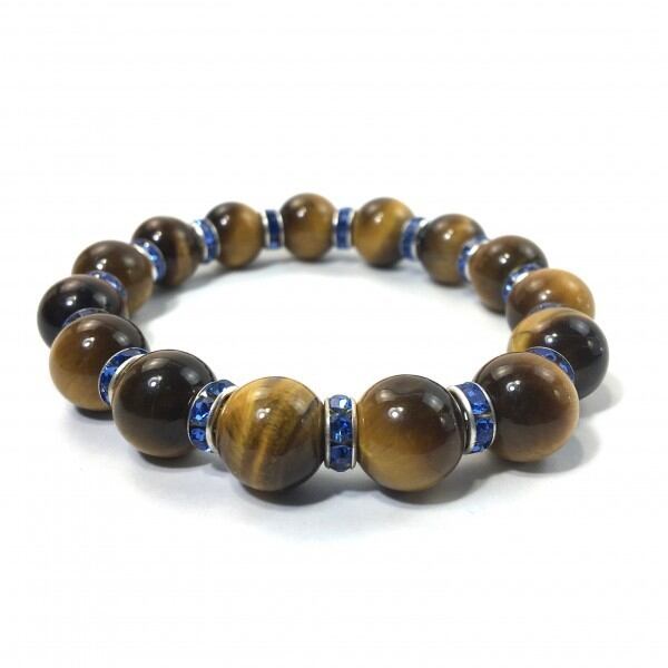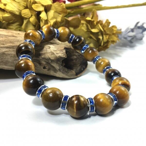 こちらは、12mm玉のタイガーアイを使用した天然石ブレスレットです。石との間にはロンデルを挟み高級感を演出しています。シンプルなデザインですのでどんなコーディネートとも合わせ易いブレスレットです。石大きさは12mm玉です。内周約18cmです。気になる方は是非この機会にどうぞ。