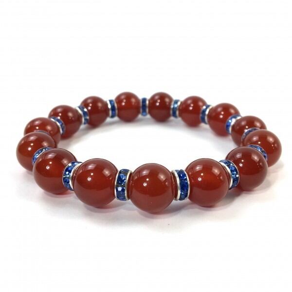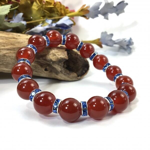 パワーストーン ブレスレット 赤瑪瑙 12mm 天然石ブレス (ブルー)メンズ・レディース 男性・女性 数珠ブレス 開運 ☆