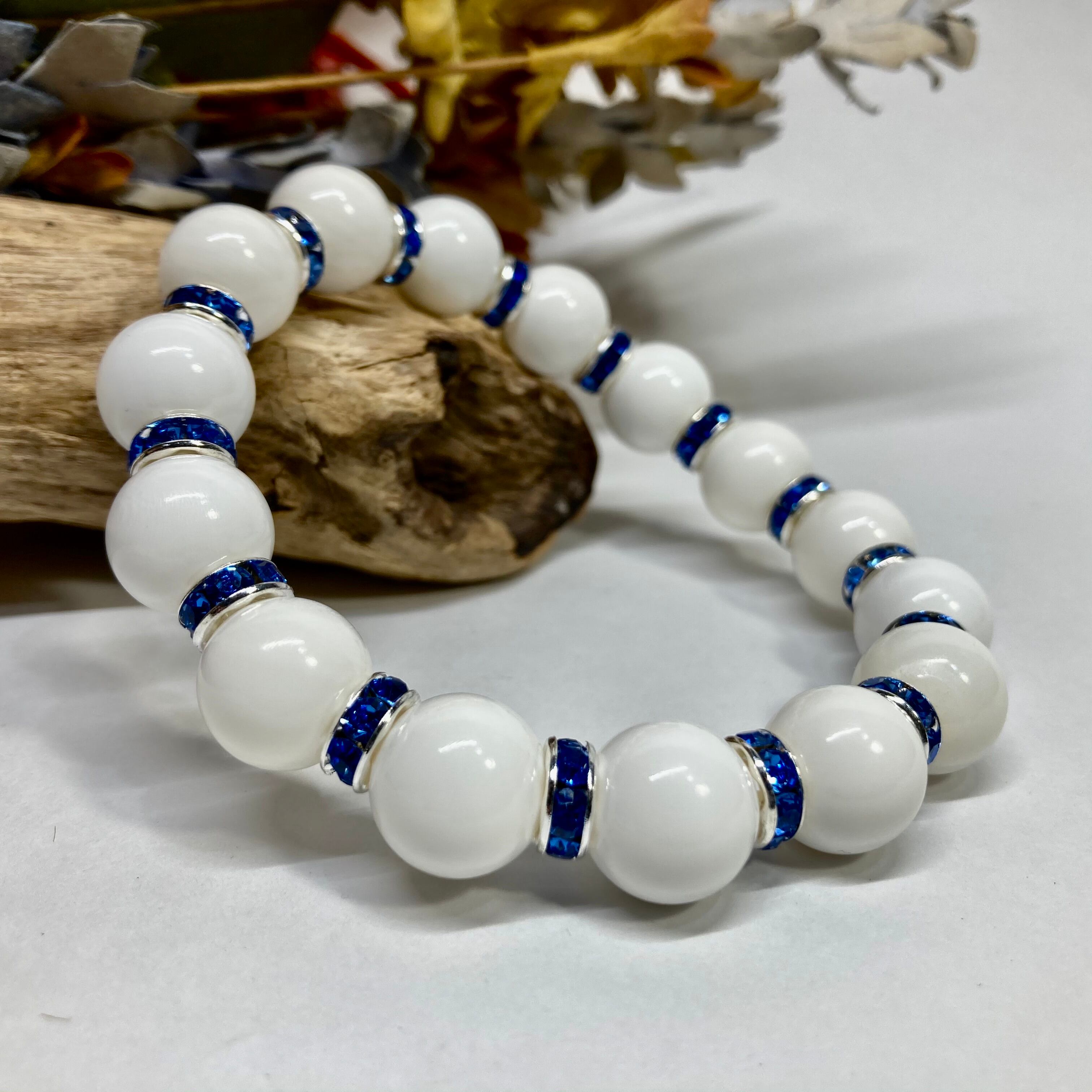 ホワイトオニキス パワーストーン ブレスレット 12mm 天然石ブレス (ブルー)メンズ・レディース 男性・女性 数珠ブレス 開運 ☆