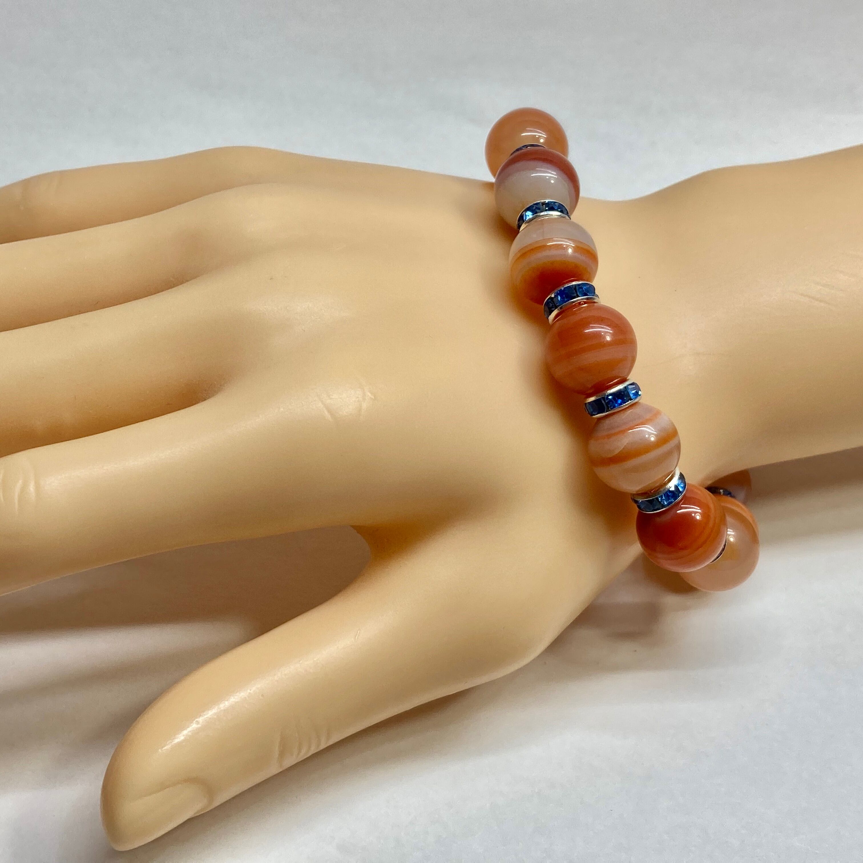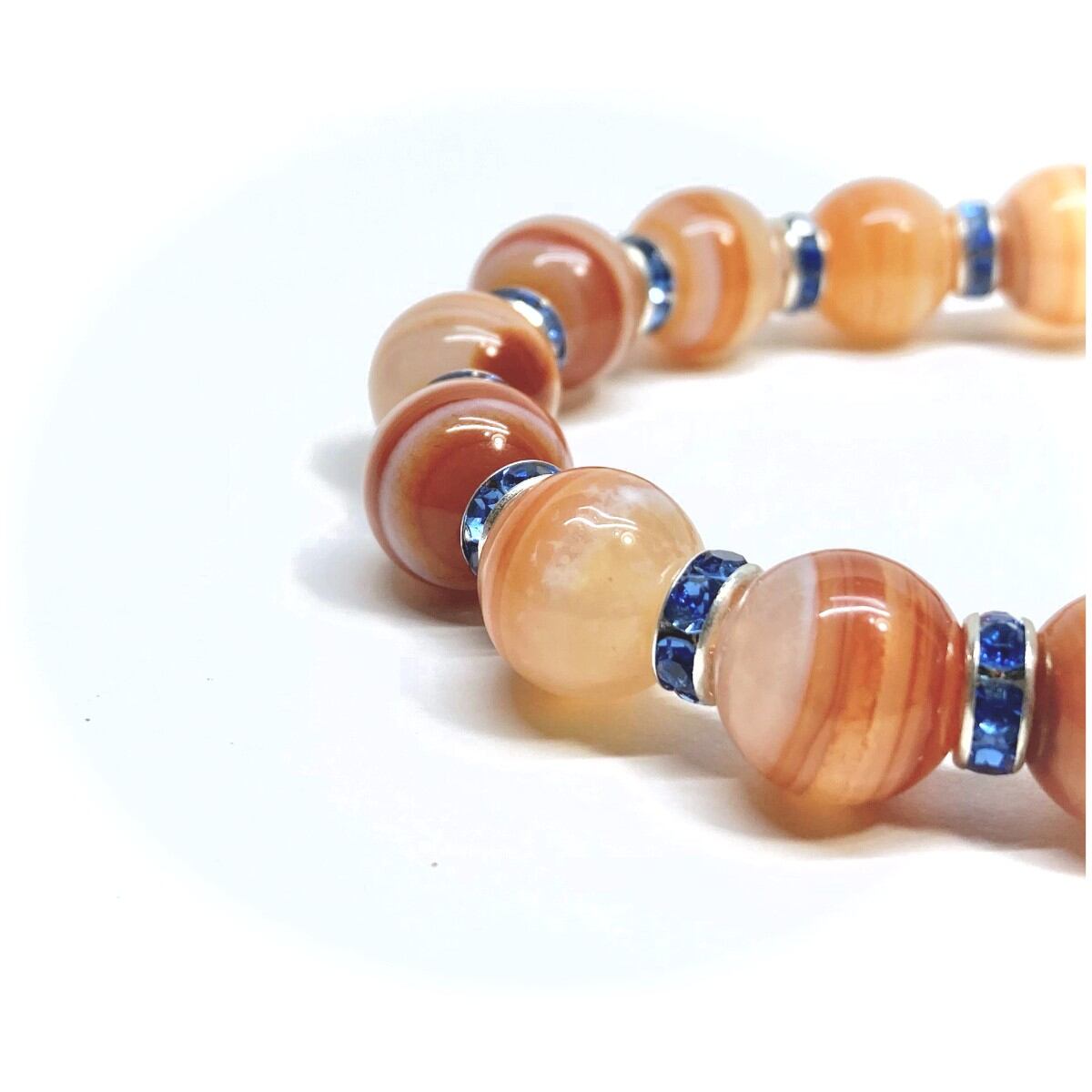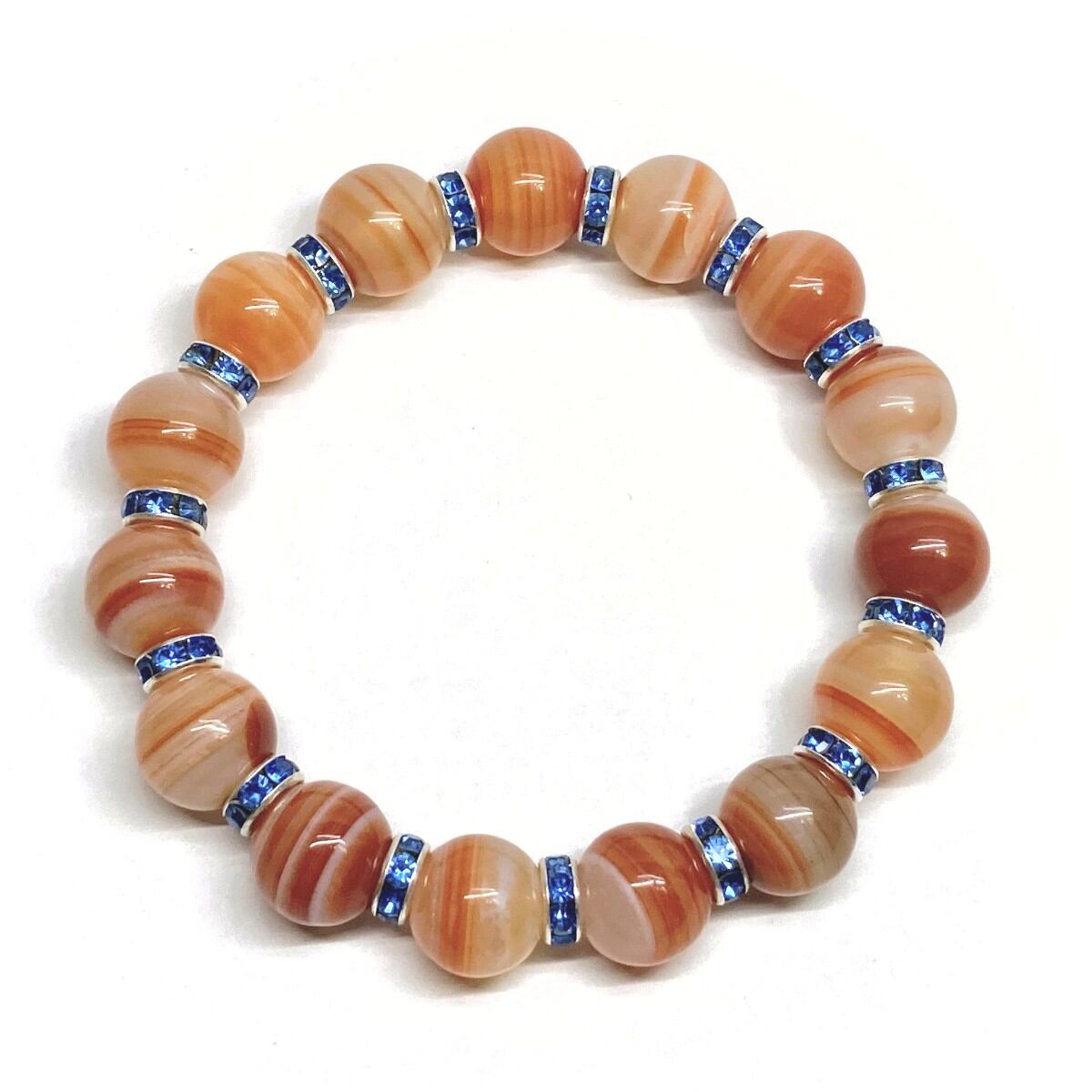 カーネリアン・サードニクス パワーストーン ブレスレット 12mm (ブルー)メンズ・レディース 男性・女性 数珠ブレス 開運 ☆