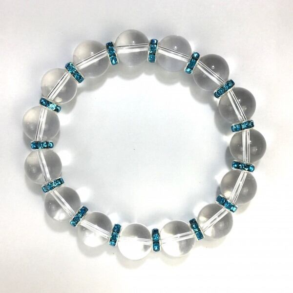 パワーストーン ブレスレット 水晶 12mm 天然石ブレス (ライトブルー)メンズ・レディース 男性・女性 数珠ブレス 開運 ☆