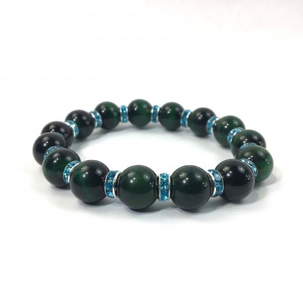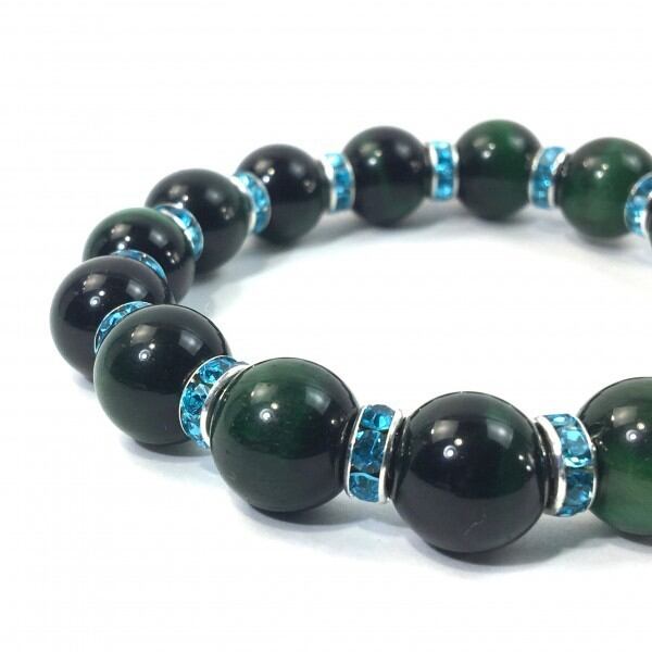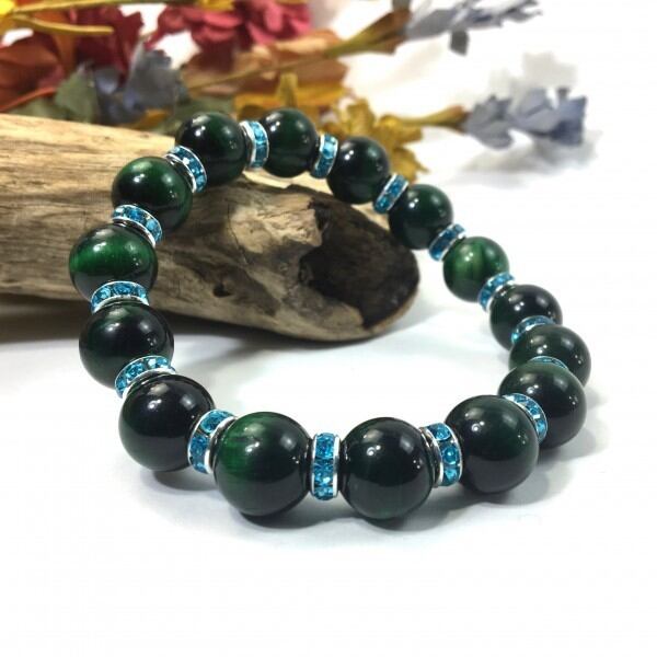 パワーストーン ブレスレット グリーンタイガーアイ 12mm (ライトブルー)メンズ・レディース 男性・女性 数珠ブレス 開運 ☆