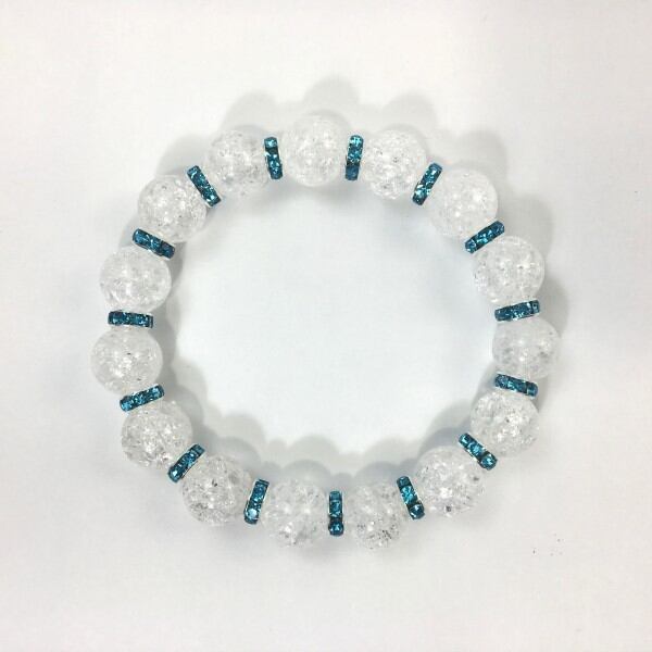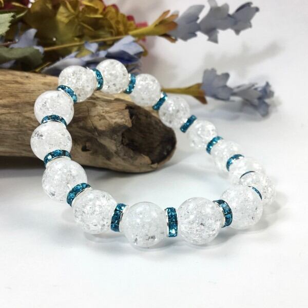 こちらは、12mm玉のクラック水晶を使用した天然石ブレスレットです。石との間にはロンデルを挟み高級感を演出しています。シンプルなデザインですのでどんなコーディネートとも合わせ易いブレスレットです。石大きさは12mm玉です。内周約18cmです。気になる方は是非この機会にどうぞ。