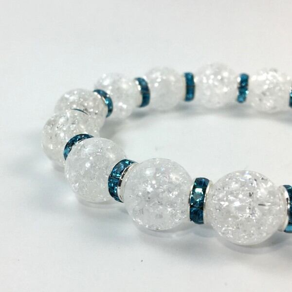 パワーストーン ブレスレット クラック水晶 12mm 天然石ブレス (ライトブルー)メンズ・レディース 男性・女性 数珠ブレス 開運 ☆