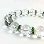 こちらは、12mm玉の水晶を使用した天然石ブレスレットです。石との間にはロンデルを挟み高級感を演出しています。シンプルなデザインですのでどんなコーディネートとも合わせ易いブレスレットです。石大きさは12mm玉です。内周約18cmです。気になる方は是非この機会にどうぞ。
