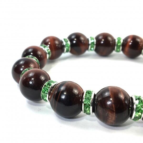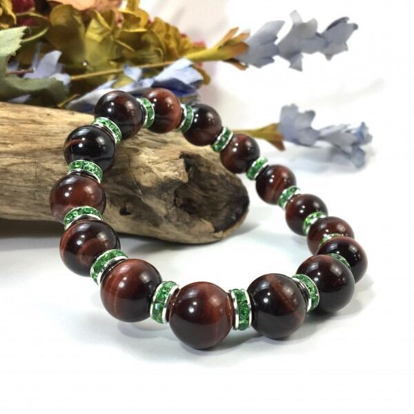 パワーストーン ブレスレット レッドタイガーアイ 12mm 天然石ブレス (グリーン)メンズ・レディース 男性・女性 数珠ブレス 開運 ☆