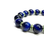こちらは、12mm玉のブルータイガーアイを使用したブレスレットです。石との間にはロンデルを挟み高級感を演出しています。シンプルなデザインですのでどんなコーディネートとも合わせ易いブレスレットです。石大きさは12mm玉です。内周約18cmです。数に限りがございますので気になる方はお早めにどうぞ。
