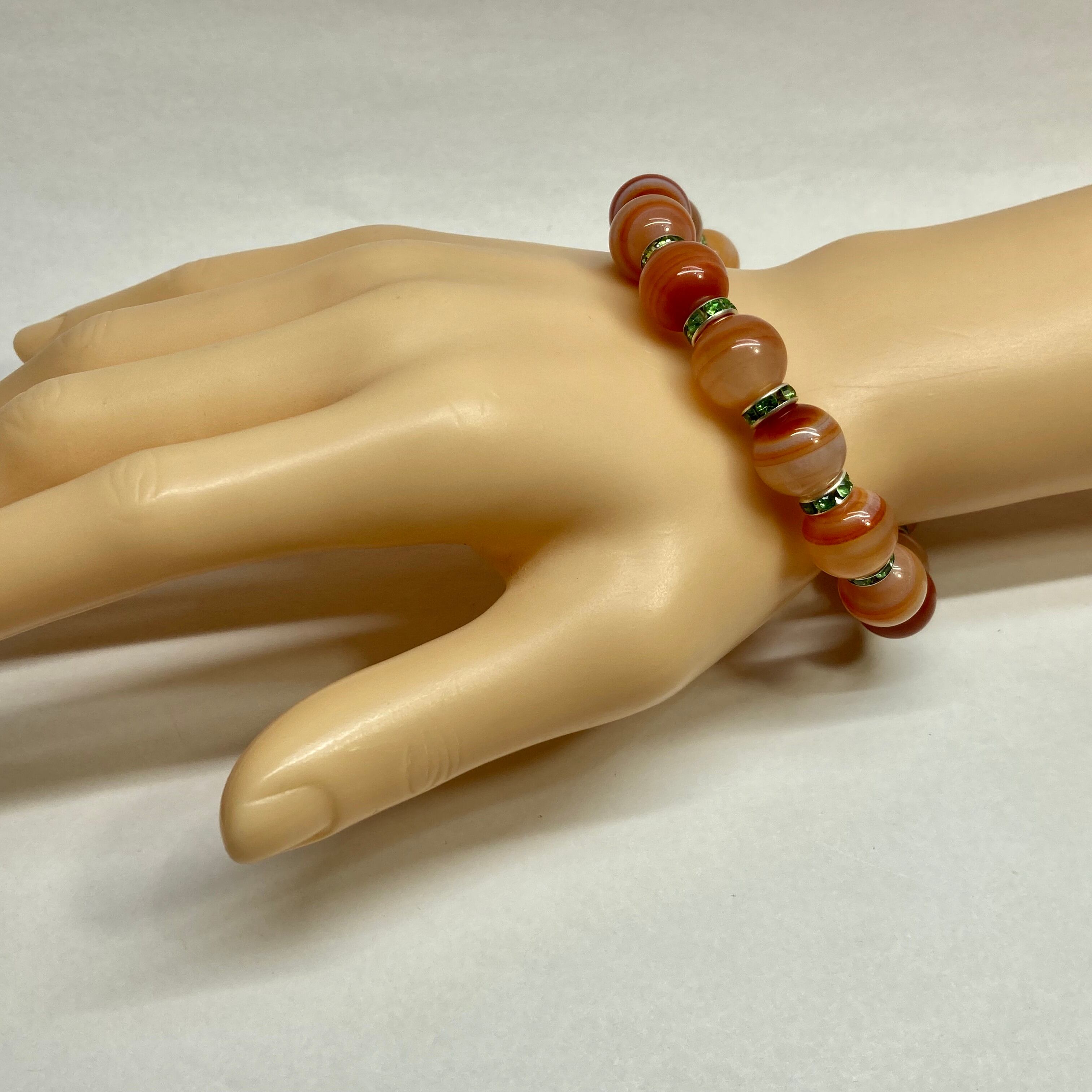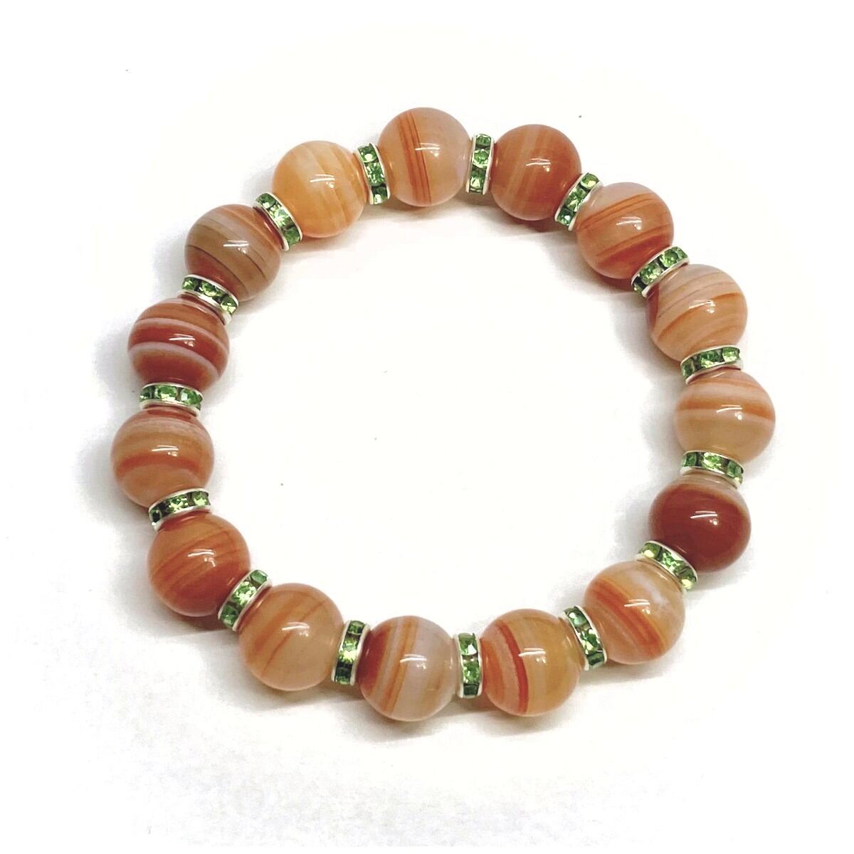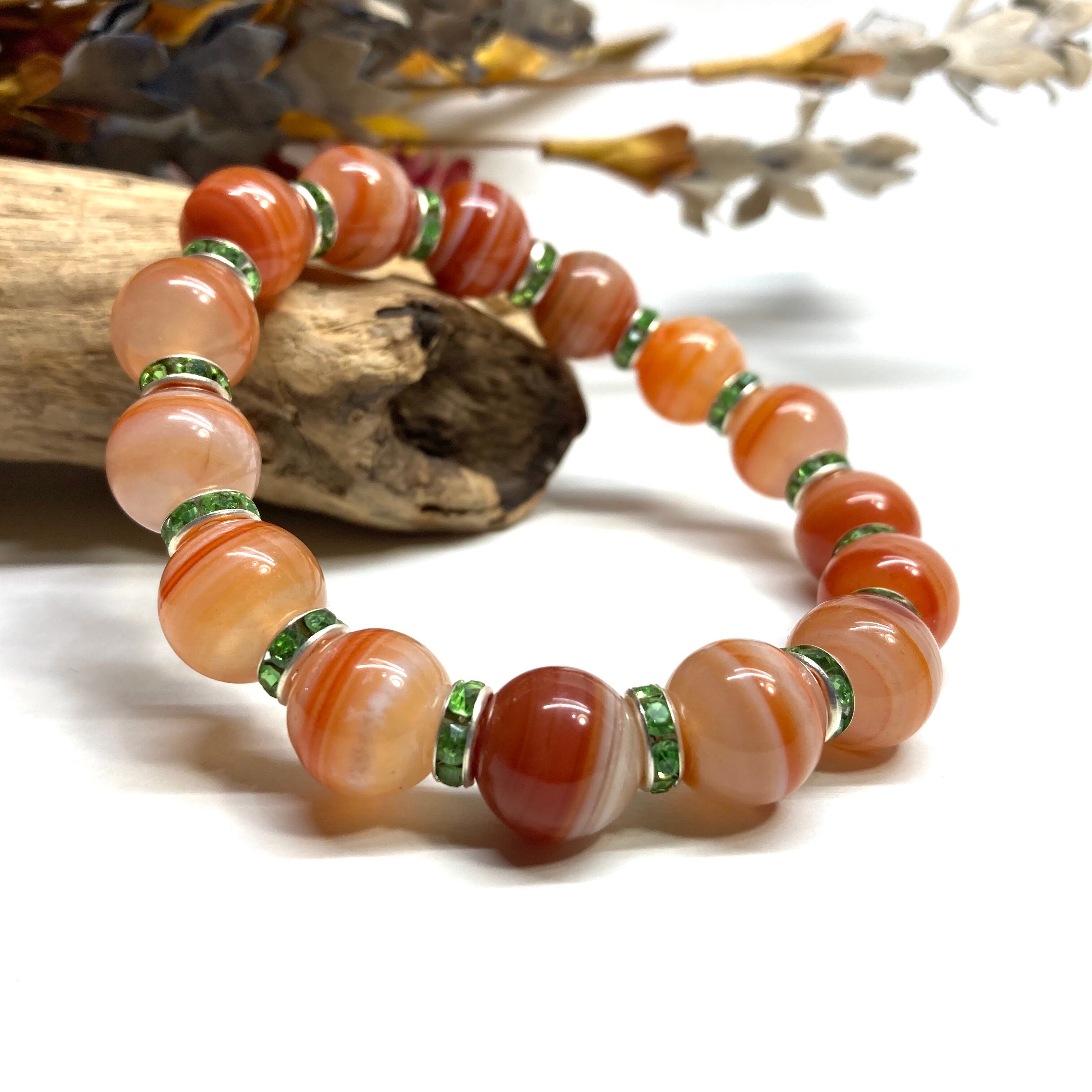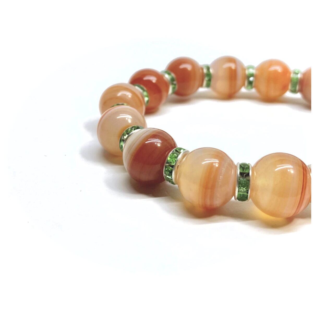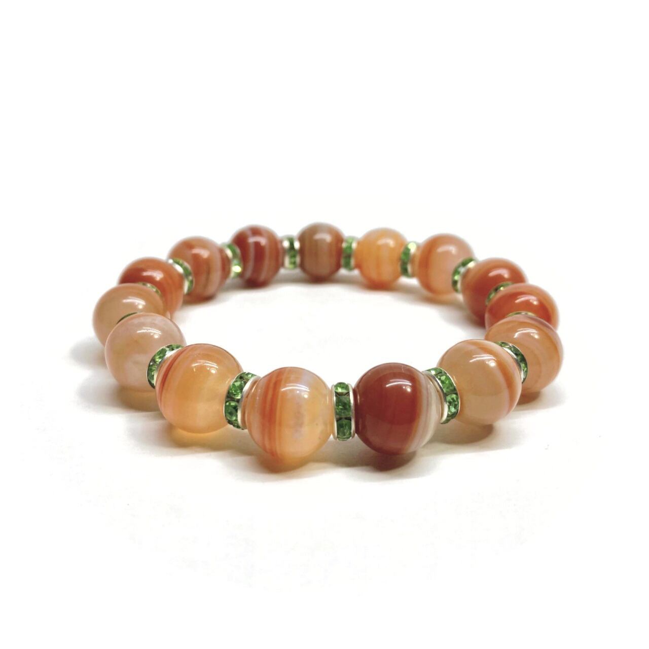 カーネリアン・サードニクス パワーストーン ブレスレット 12mm (グリーン)メンズ・レディース 男性・女性 数珠ブレス 開運 ☆