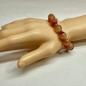 こちらは、12mm玉のカーネリアン・サードニクス(サードオニキス) を使用したパワーストーンブレスレットです。間にはロンデルを挟み高級感を演出しております。男女問わずどんなコーディネートとも合わせ易いブレスレットです。サイズは内周約18cmです。 数に限りがございますので気になる方はお早めにどうぞ。