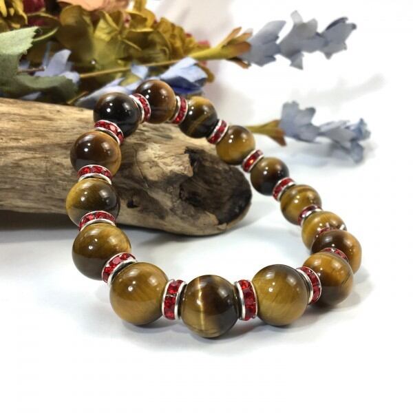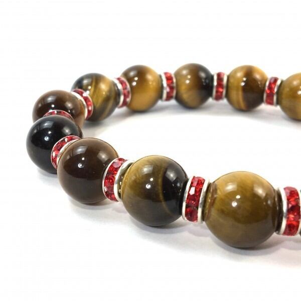 パワーストーン ブレスレット タイガーアイ 12mm 天然石ブレス (レッド)メンズ・レディース 男性・女性 数珠ブレス 開運 ☆