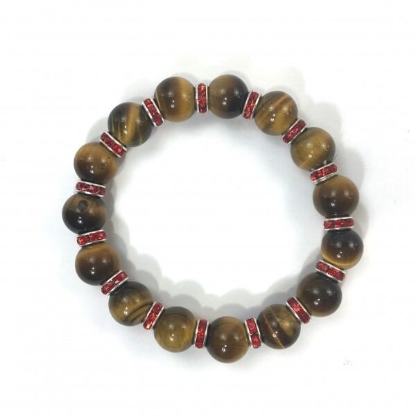 こちらは、12mm玉のタイガーアイを使用した天然石ブレスレットです。石との間にはロンデルを挟み高級感を演出しています。シンプルなデザインですのでどんなコーディネートとも合わせ易いブレスレットです。石大きさは12mm玉です。内周約18cmです。気になる方は是非この機会にどうぞ。