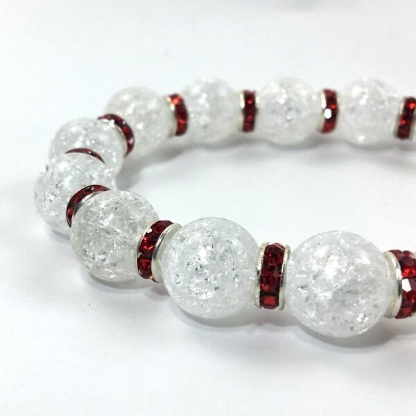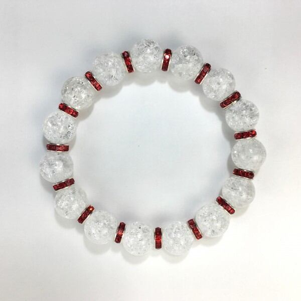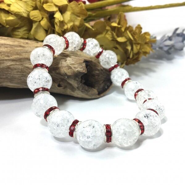 パワーストーン ブレスレット クラック水晶 12mm 天然石ブレス (レッド)メンズ・レディース 男性・女性 数珠ブレス 開運 ☆