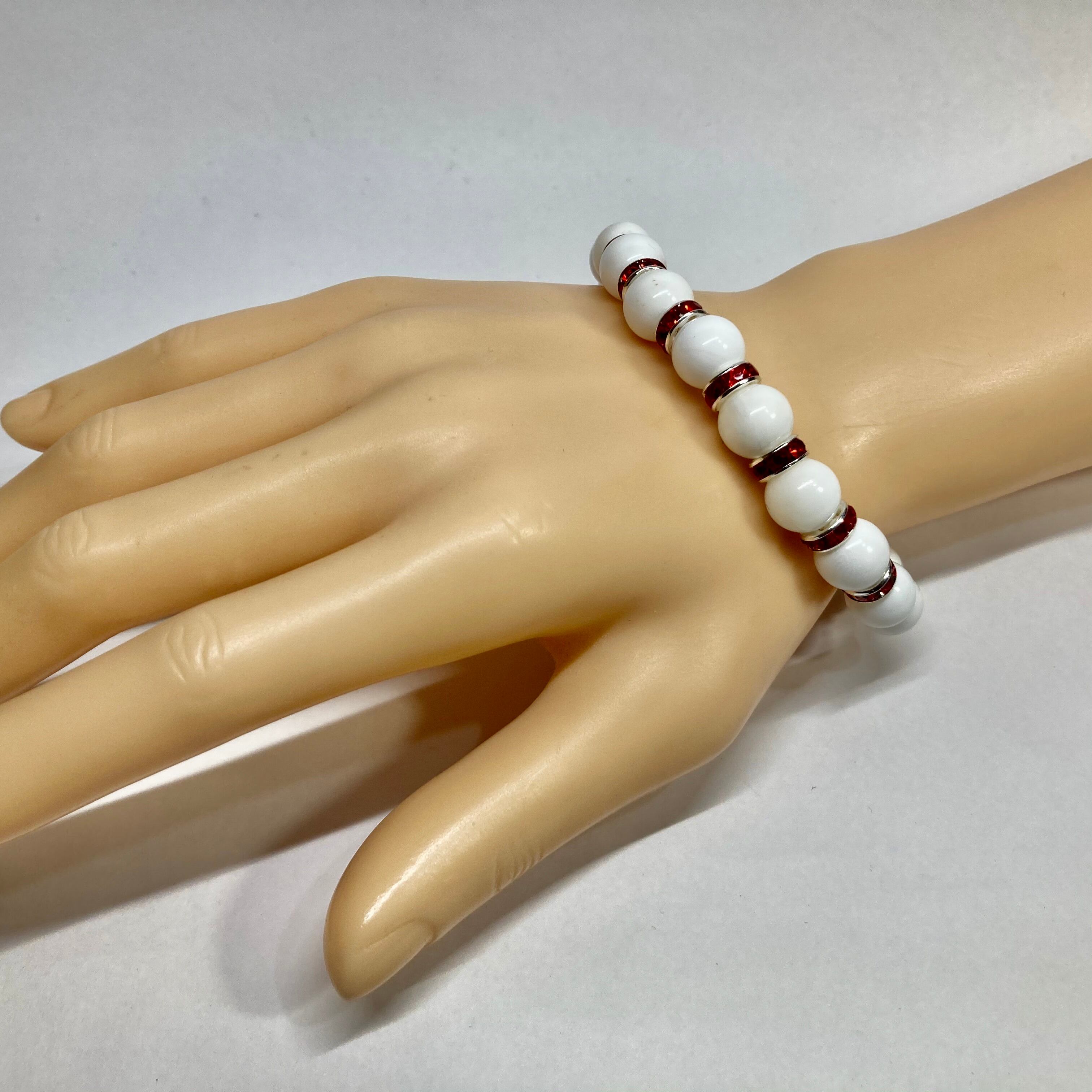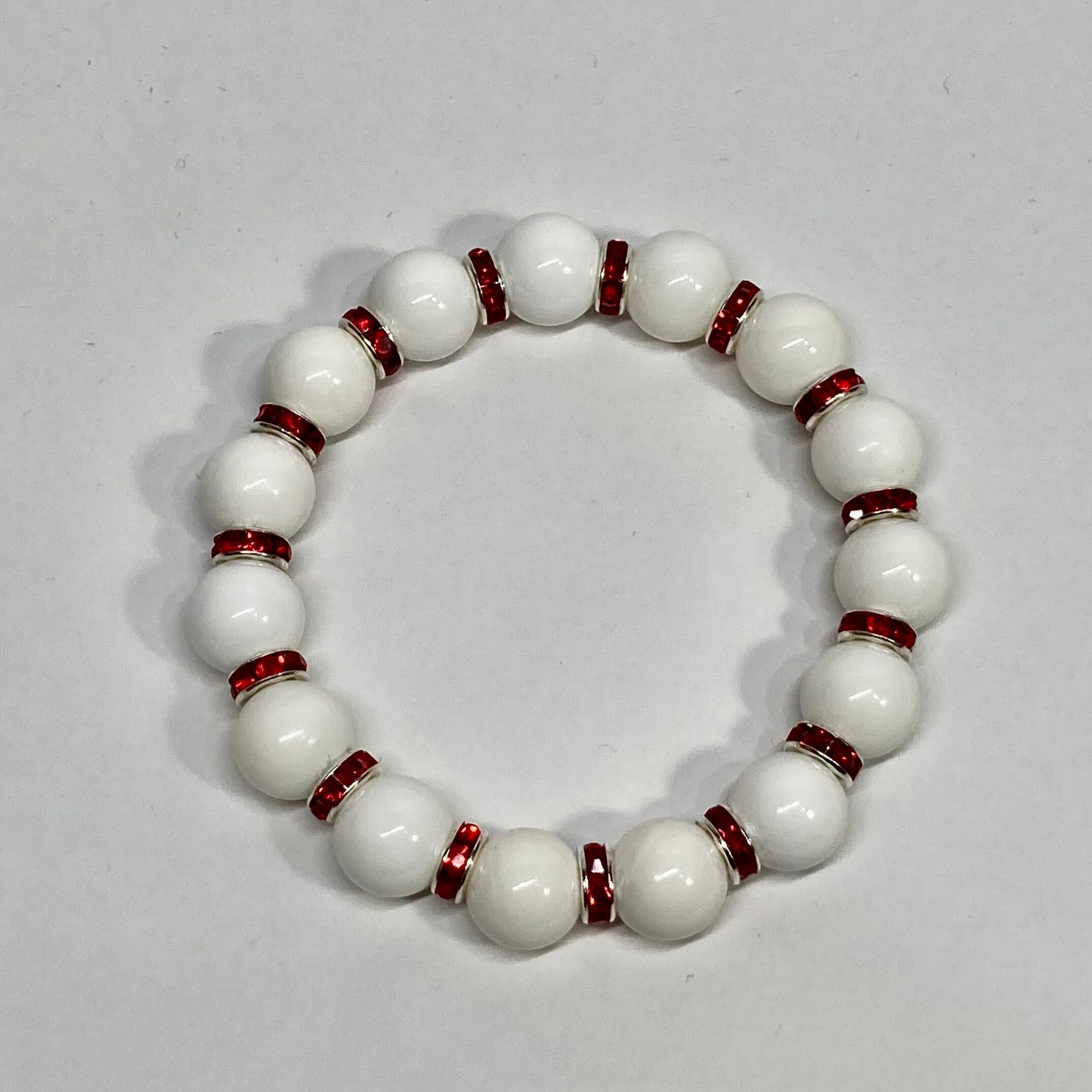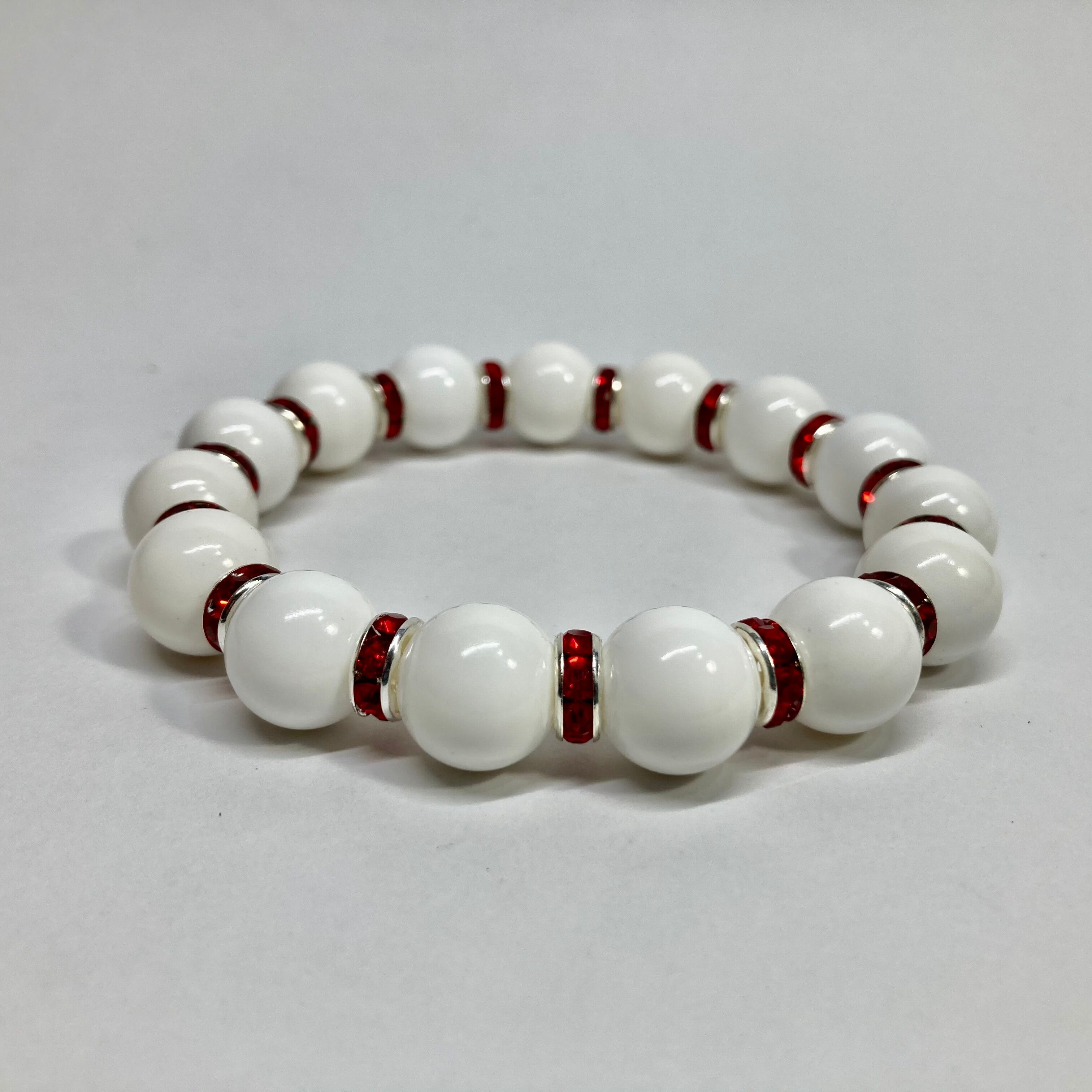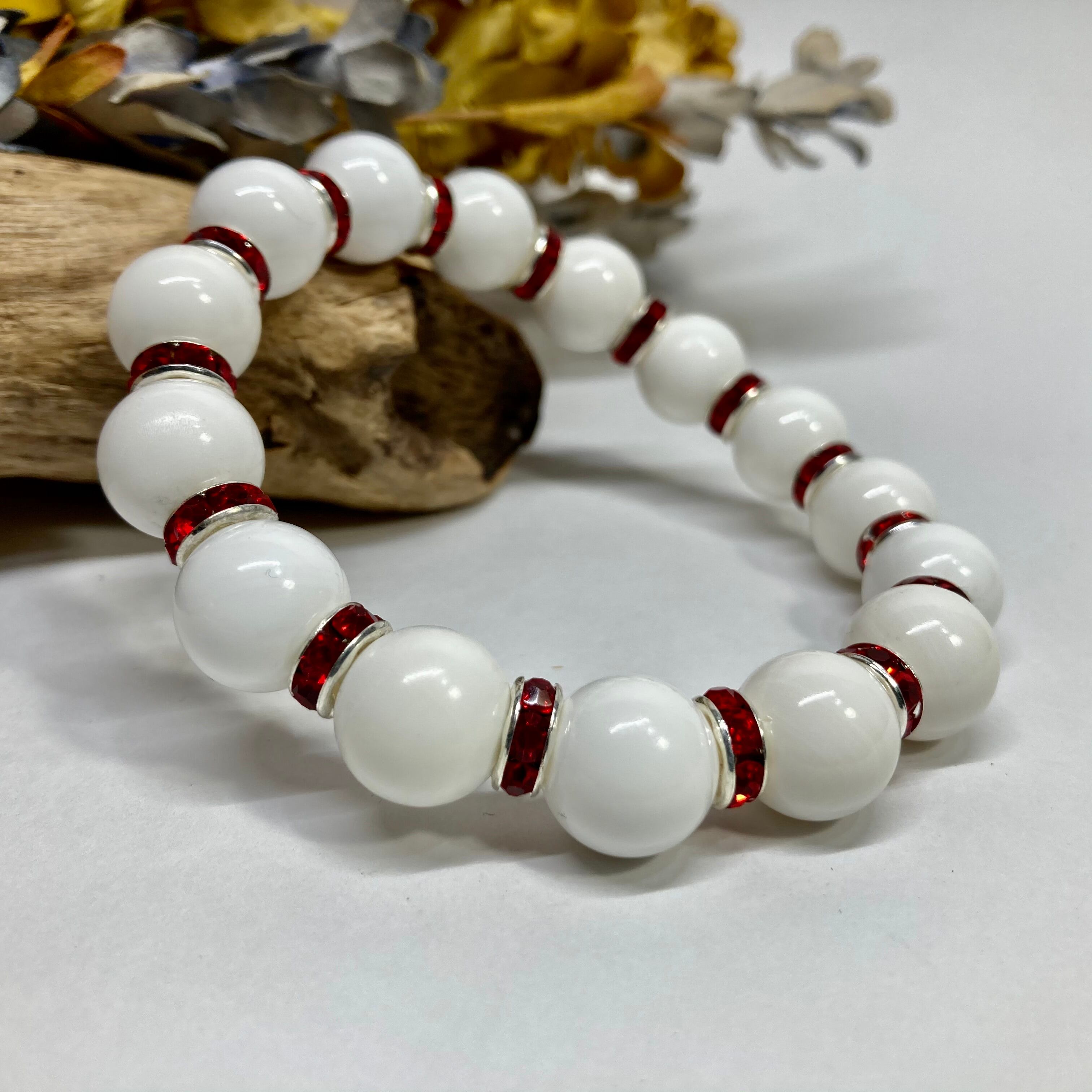 ホワイトオニキス パワーストーン ブレスレット 12mm 天然石ブレス (レッド)メンズ・レディース 男性・女性 数珠ブレス 開運 ☆