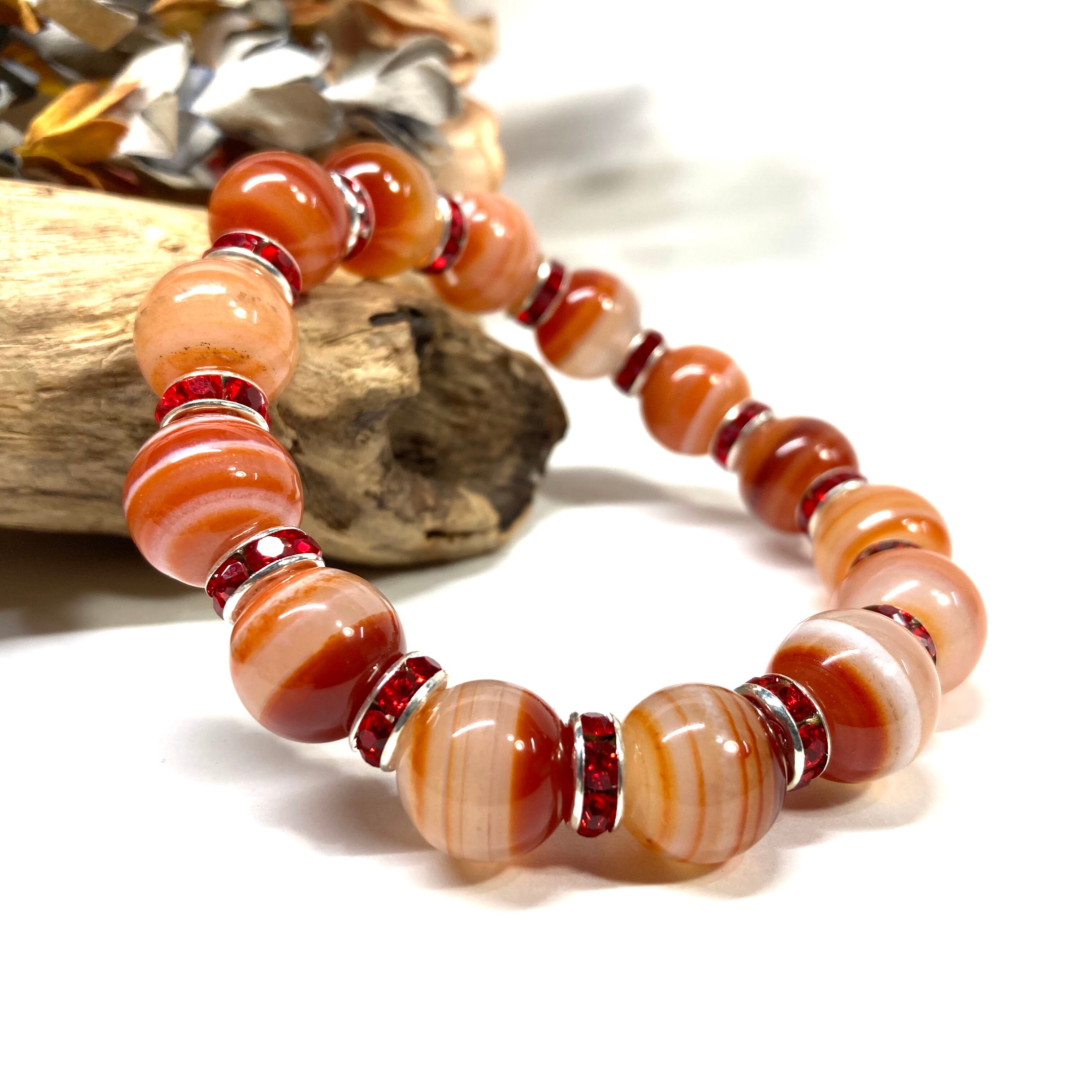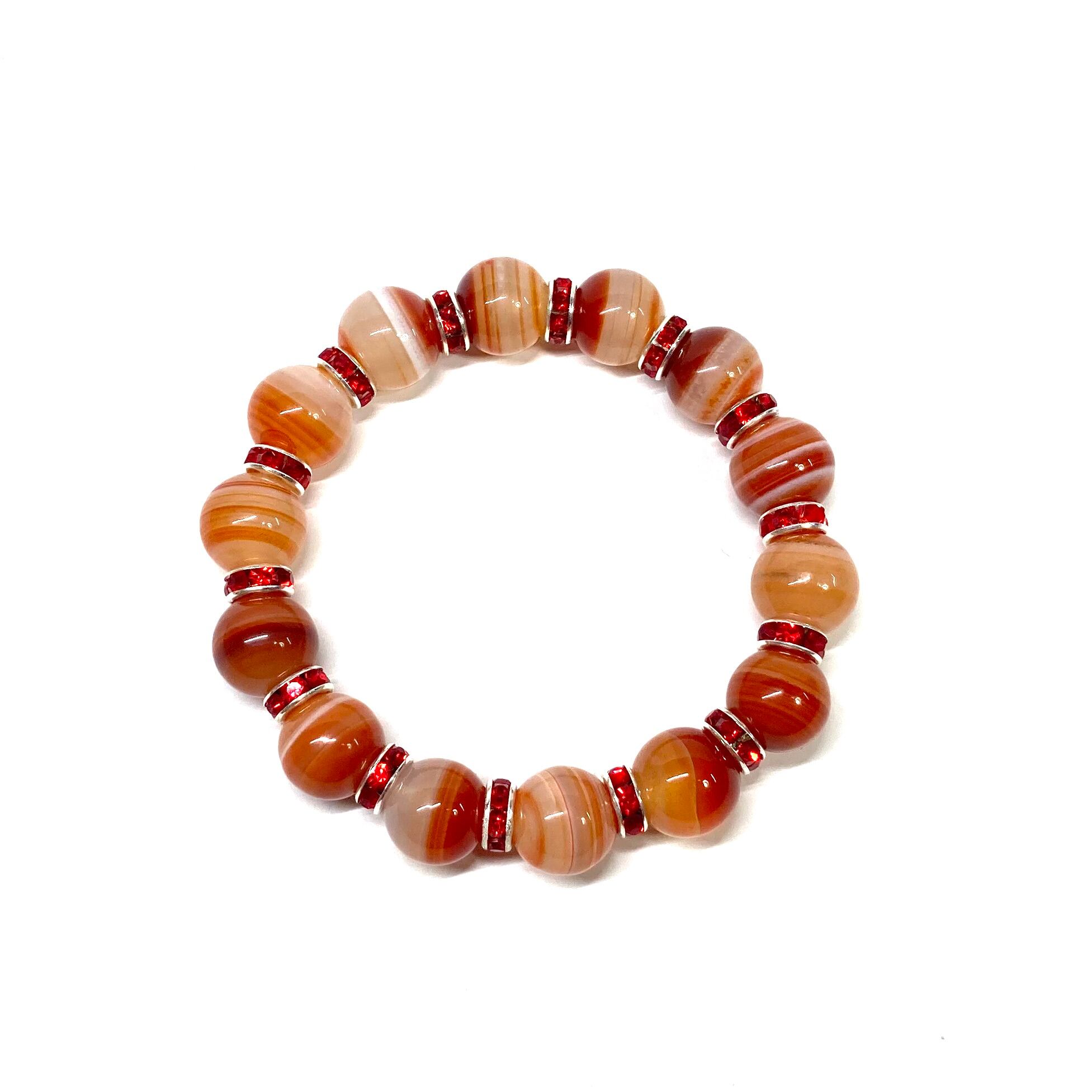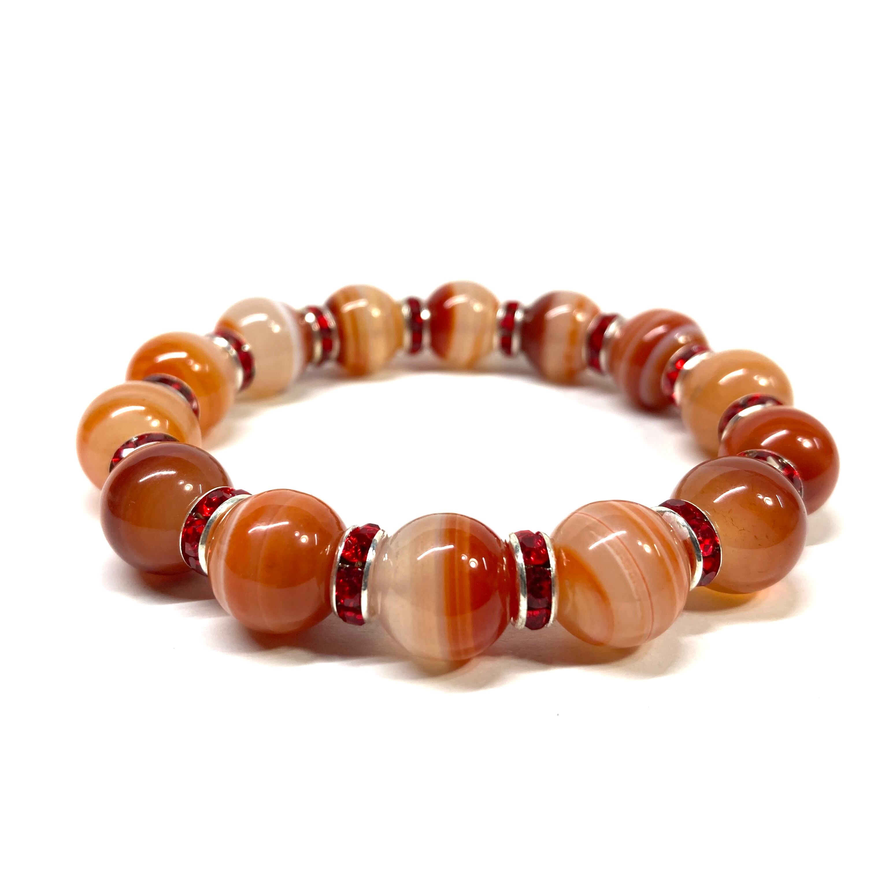 カーネリアン・サードニクス パワーストーン ブレスレット 12mm (レッド)メンズ・レディース 男性・女性 数珠ブレス 開運 ☆