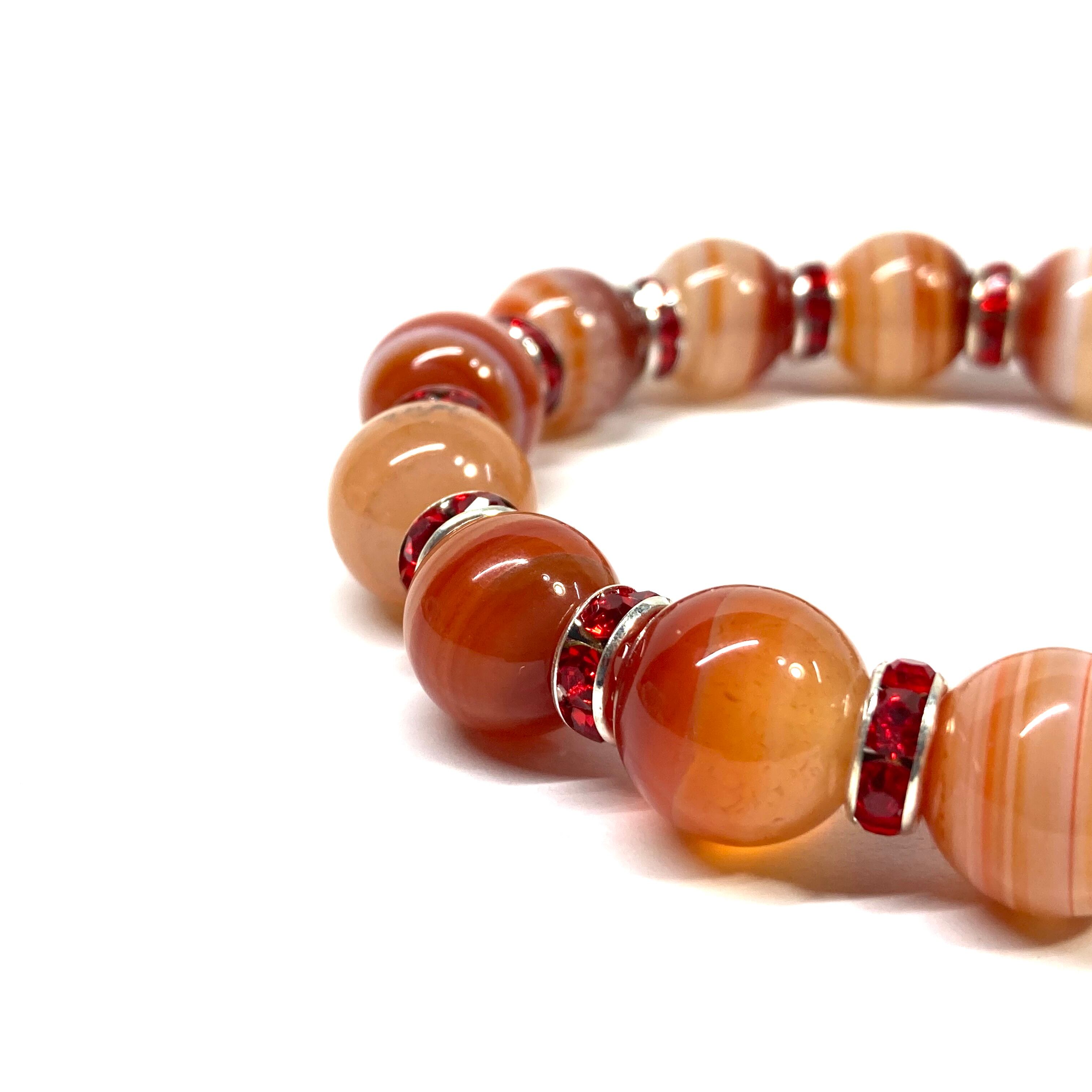 こちらは、12mm玉のカーネリアン・サードニクス(サードオニキス) を使用したパワーストーンブレスレットです。間にはロンデルを挟み高級感を演出しております。男女問わずどんなコーディネートとも合わせ易いブレスレットです。サイズは内周約18cmです。 数に限りがございますので気になる方はお早めにどうぞ。