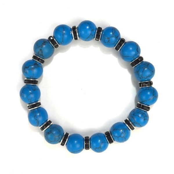 パワーストーン ブレスレット ターコイズ 12mm (ブラック)メンズ・レディース 男性・女性 数珠ブレス 開運 ☆