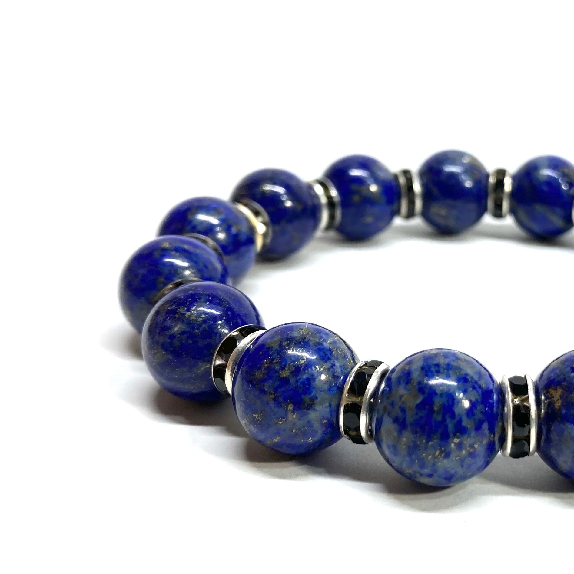 ラピスラズリ パワーストーン ブレスレット 12mm 天然石ブレス (ブラック)メンズ・レディース 男性・女性 数珠ブレス 開運 ☆