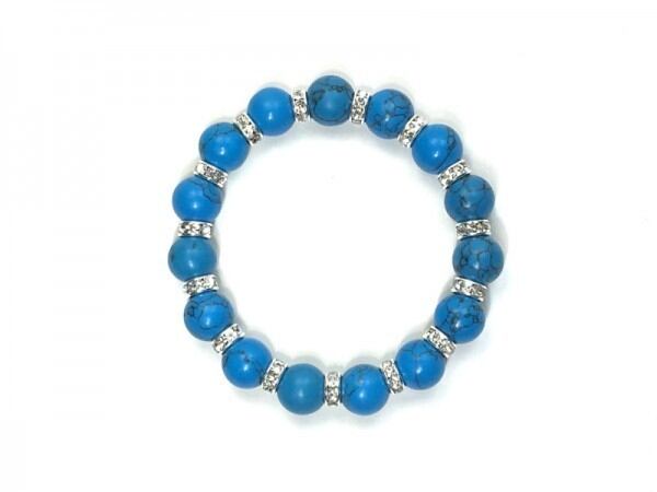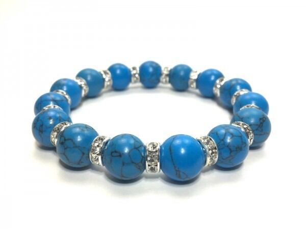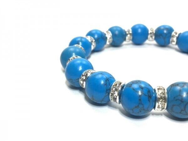 こちらは、12mm玉のターコイズを使用したブレスレットです。石との間にはロンデルを挟み高級感を演出しています。シンプルなデザインですのでどんなコーディネートとも合わせ易いブレスレットです。石大きさは12mm玉です。内周約18cmです。気になる方は是非この機会にどうぞ。