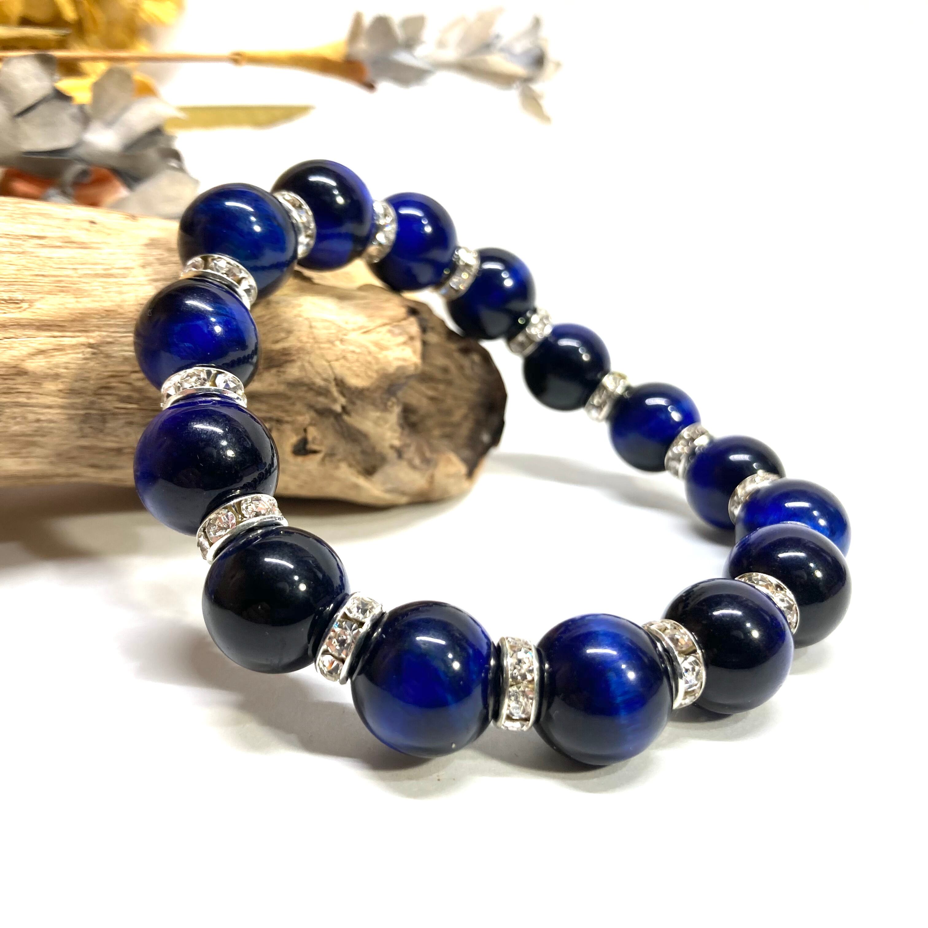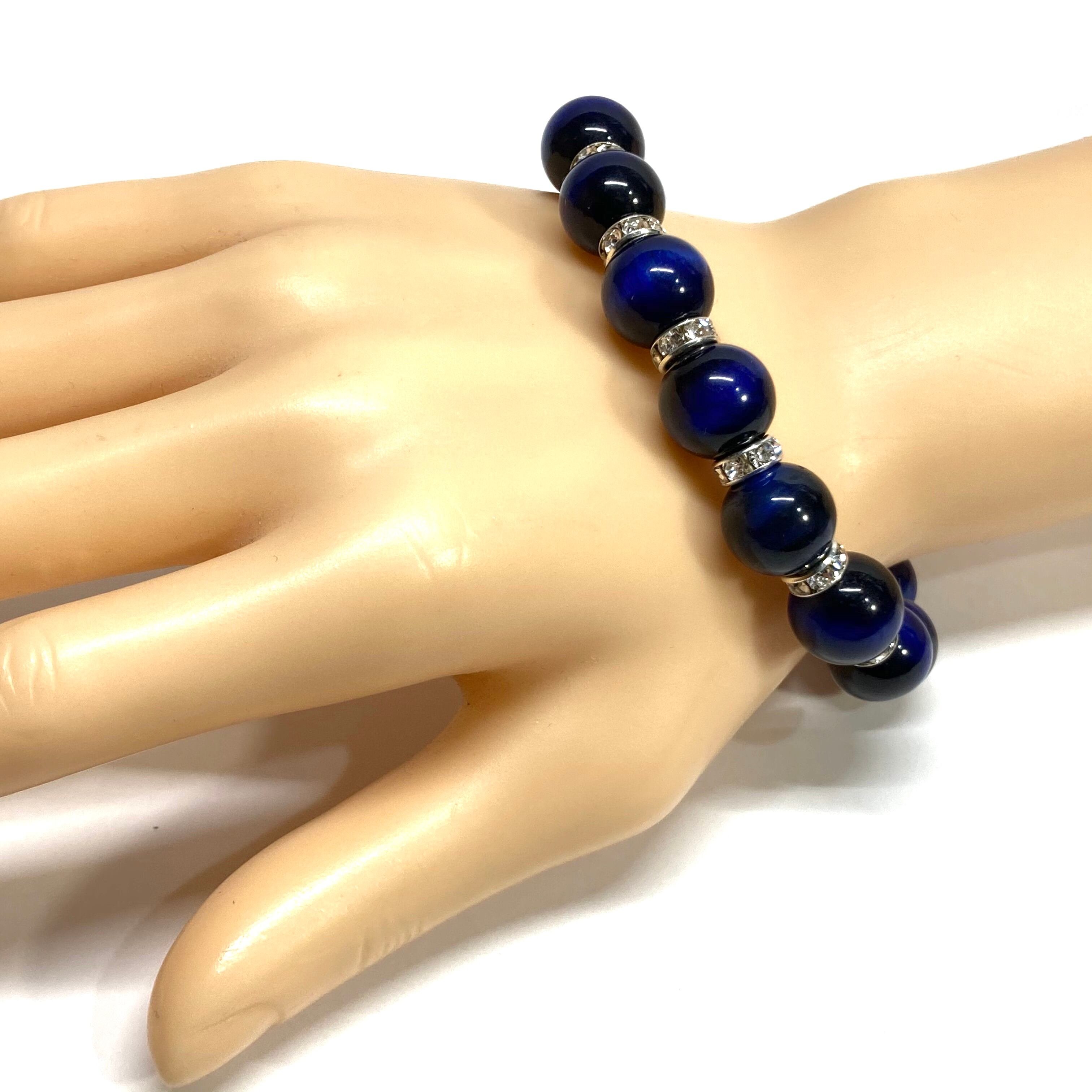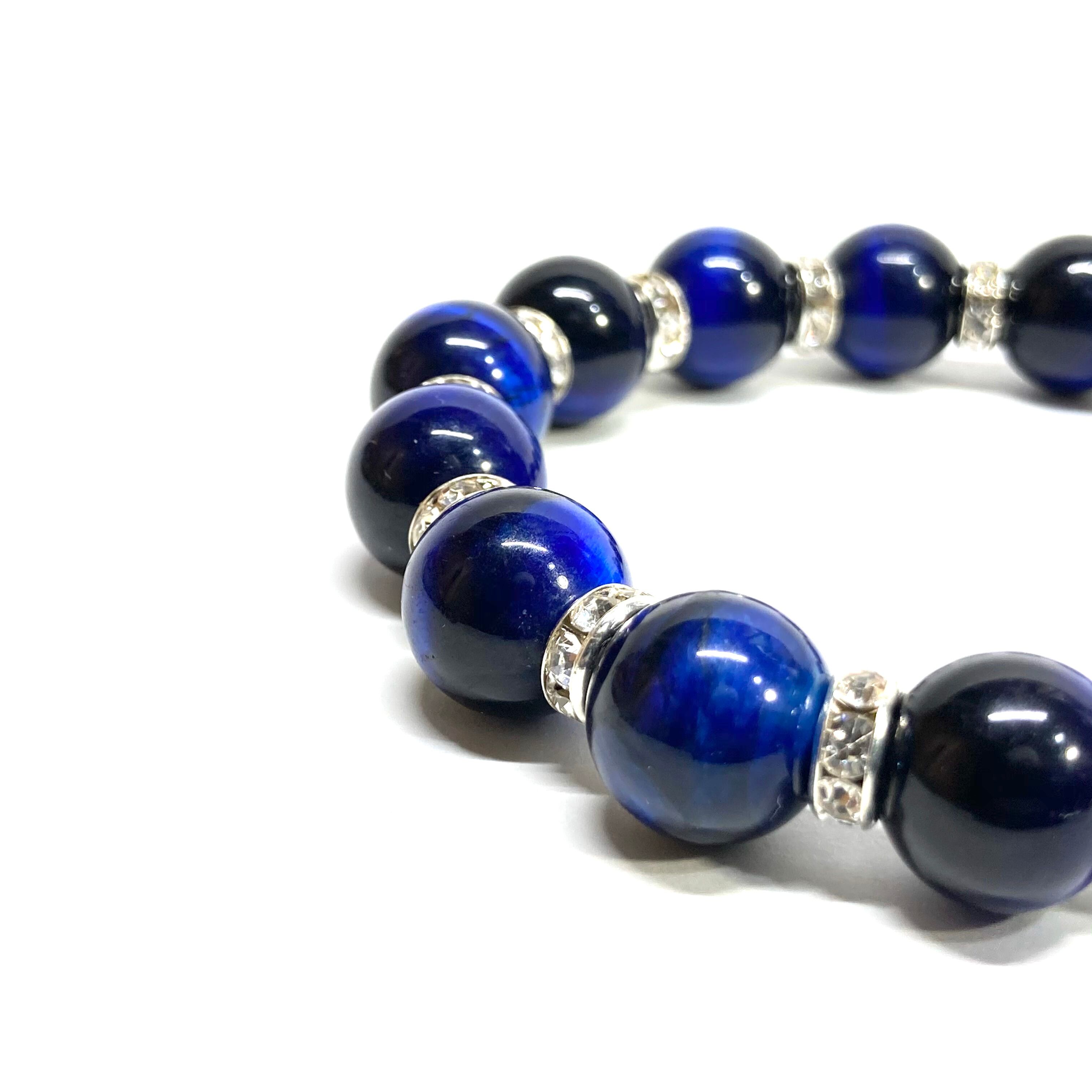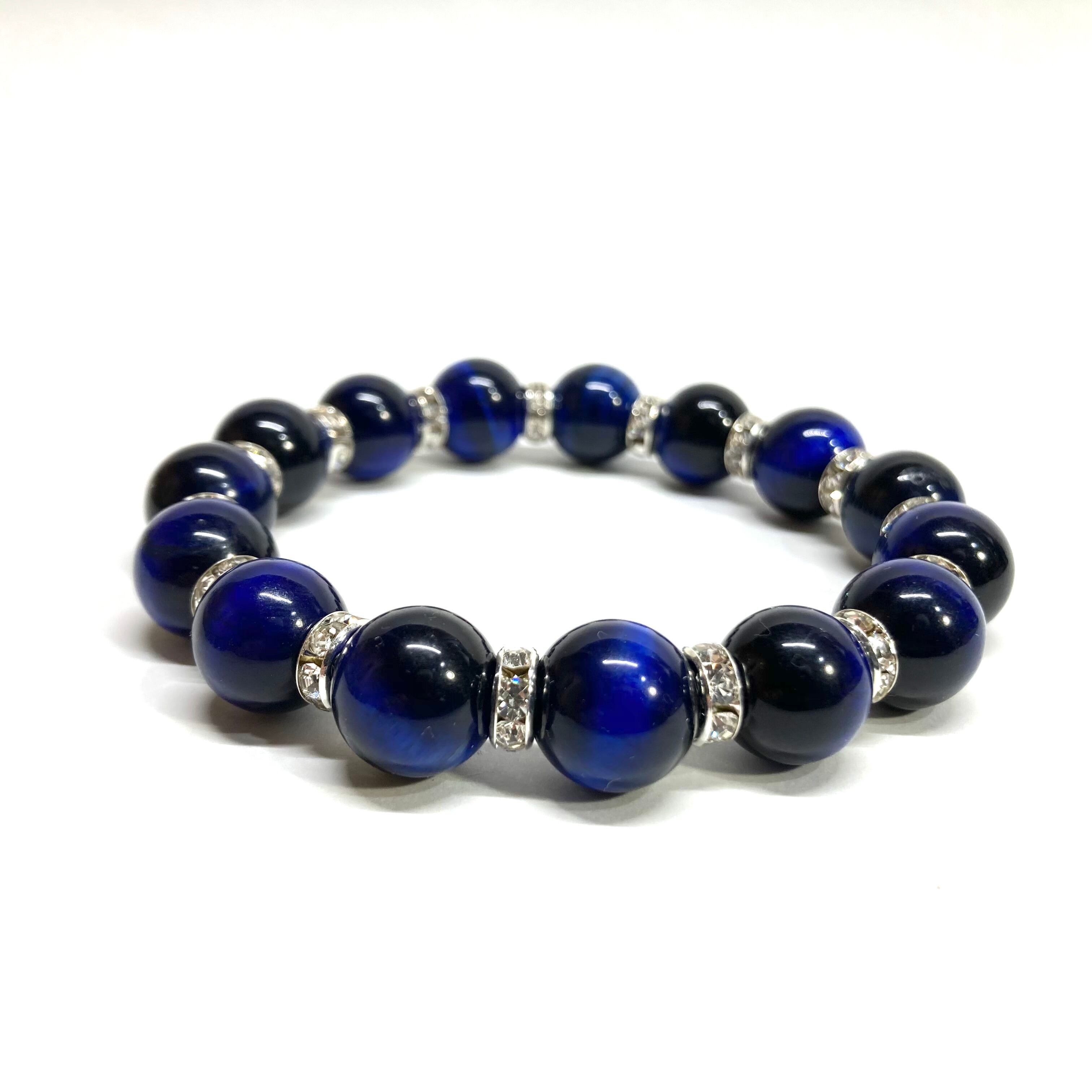 こちらは、12mm玉のブルータイガーアイを使用したブレスレットです。石との間にはロンデルを挟み高級感を演出しています。シンプルなデザインですのでどんなコーディネートとも合わせ易いブレスレットです。石大きさは12mm玉です。内周約18cmです。数に限りがございますので気になる方はお早めにどうぞ。