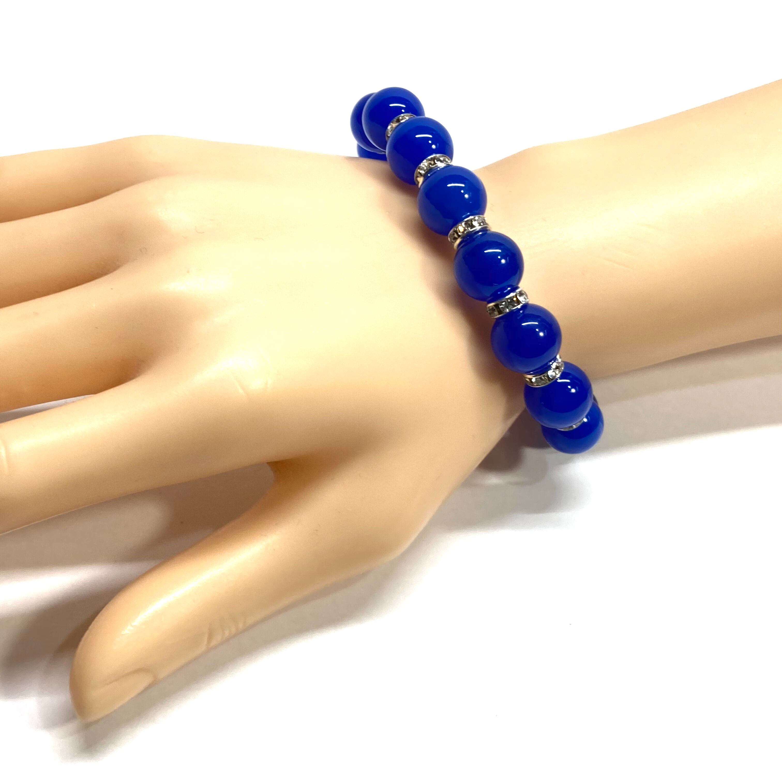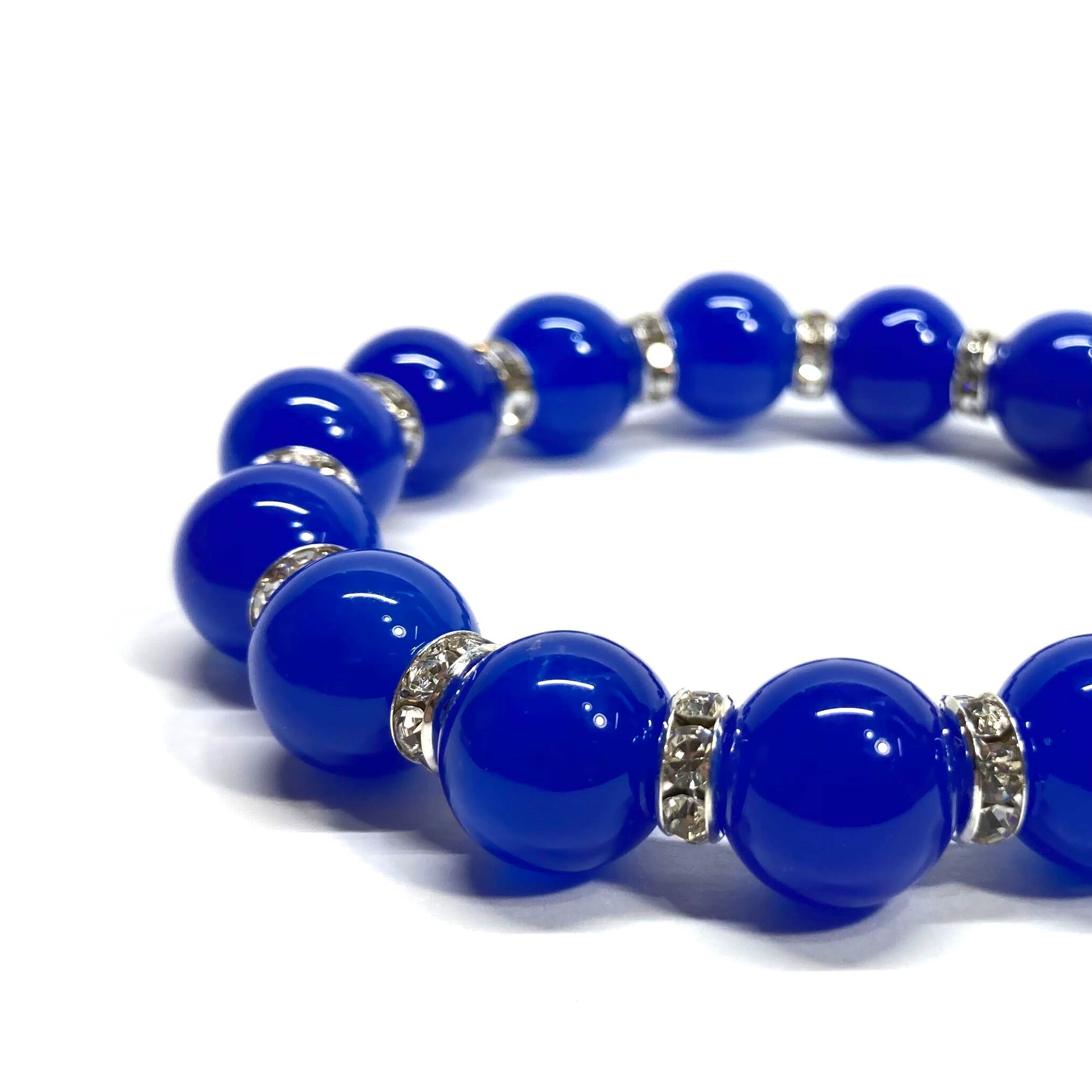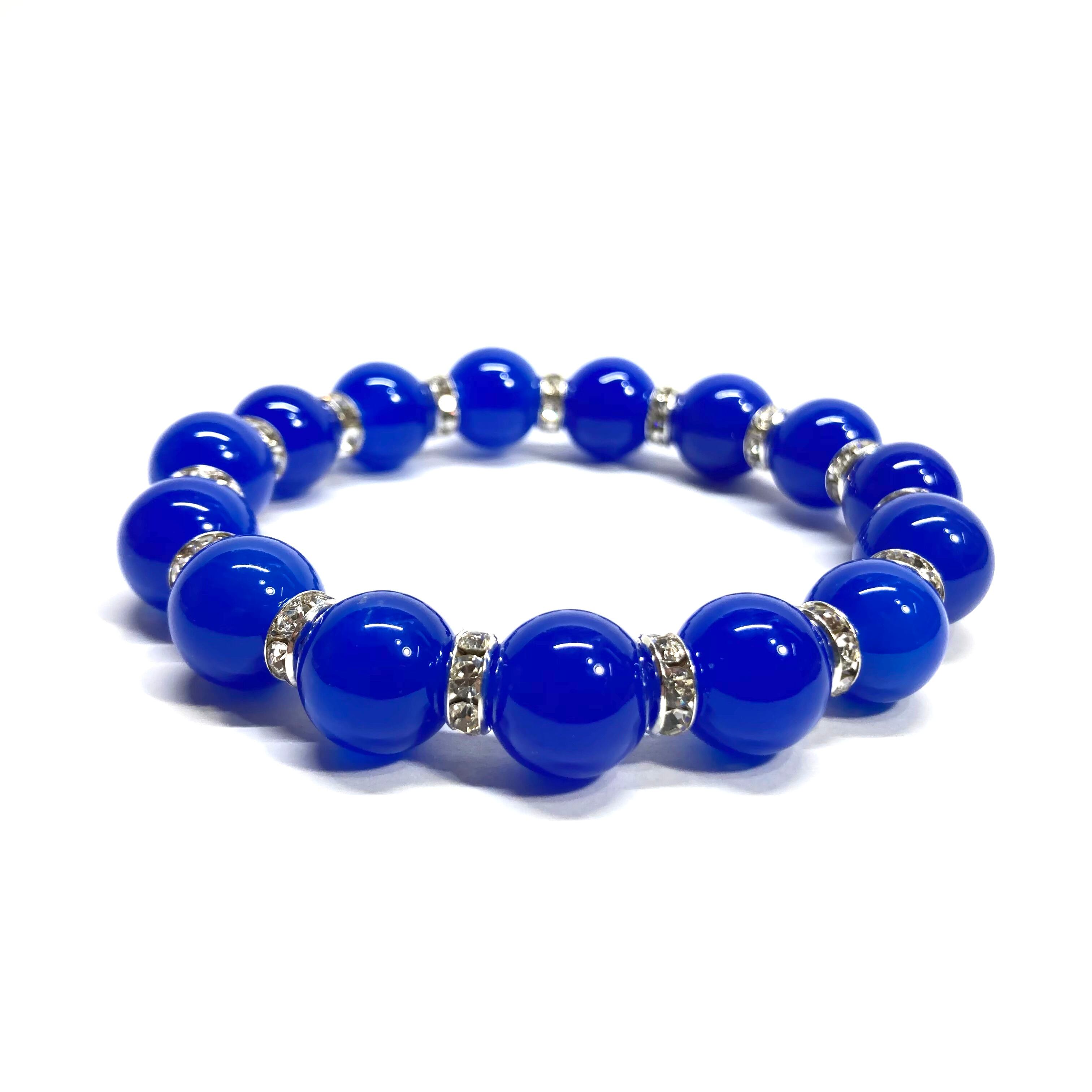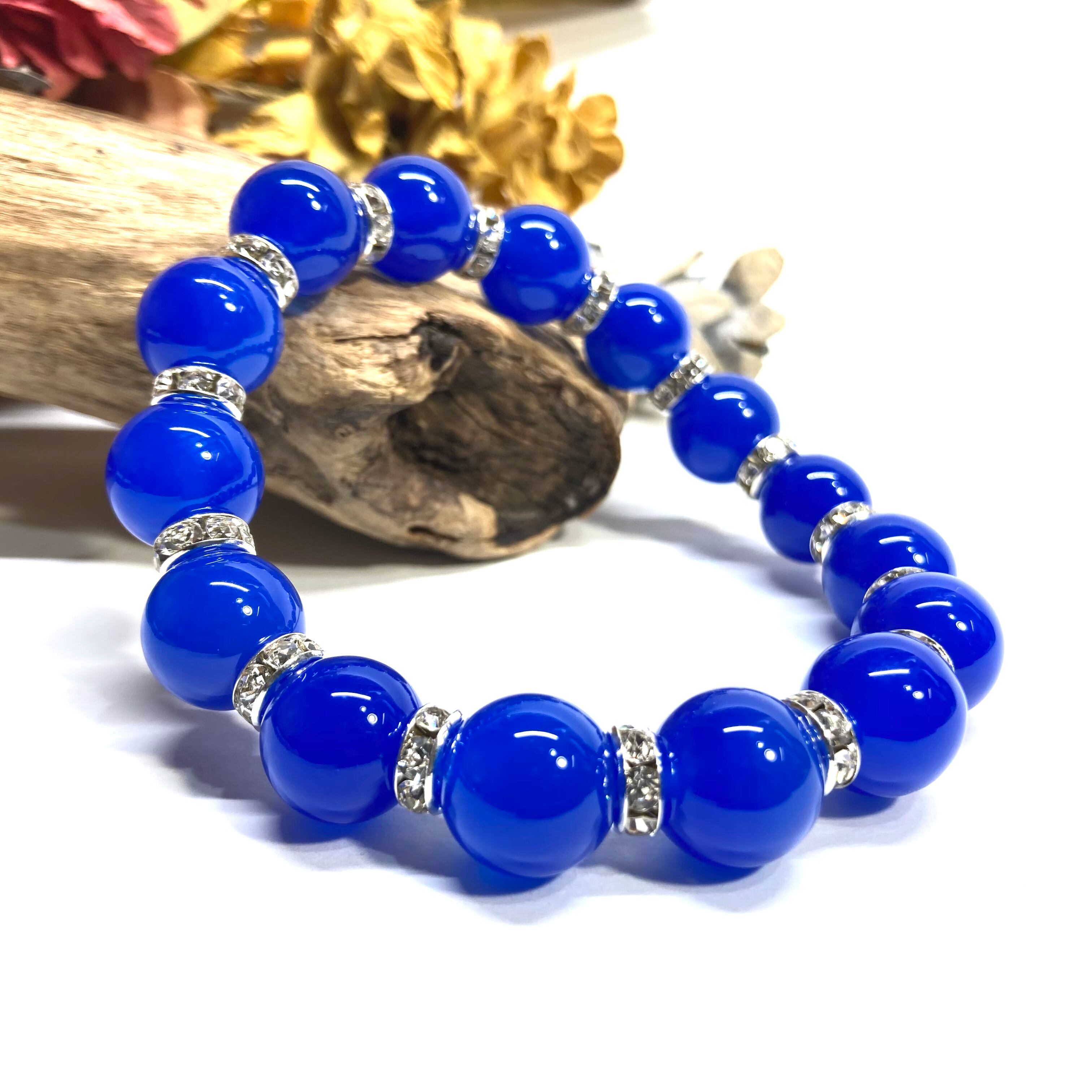 こちらは、12mm玉の青瑪瑙を使用したパワーストーンブレスレットです。間にはロンデルを挟み高級感を演出しております。男女問わずどんなコーディネートとも合わせ易いブレスレットです。サイズは内周約18cmです。数に限りがございますので気になる方はお早めにどうぞ。