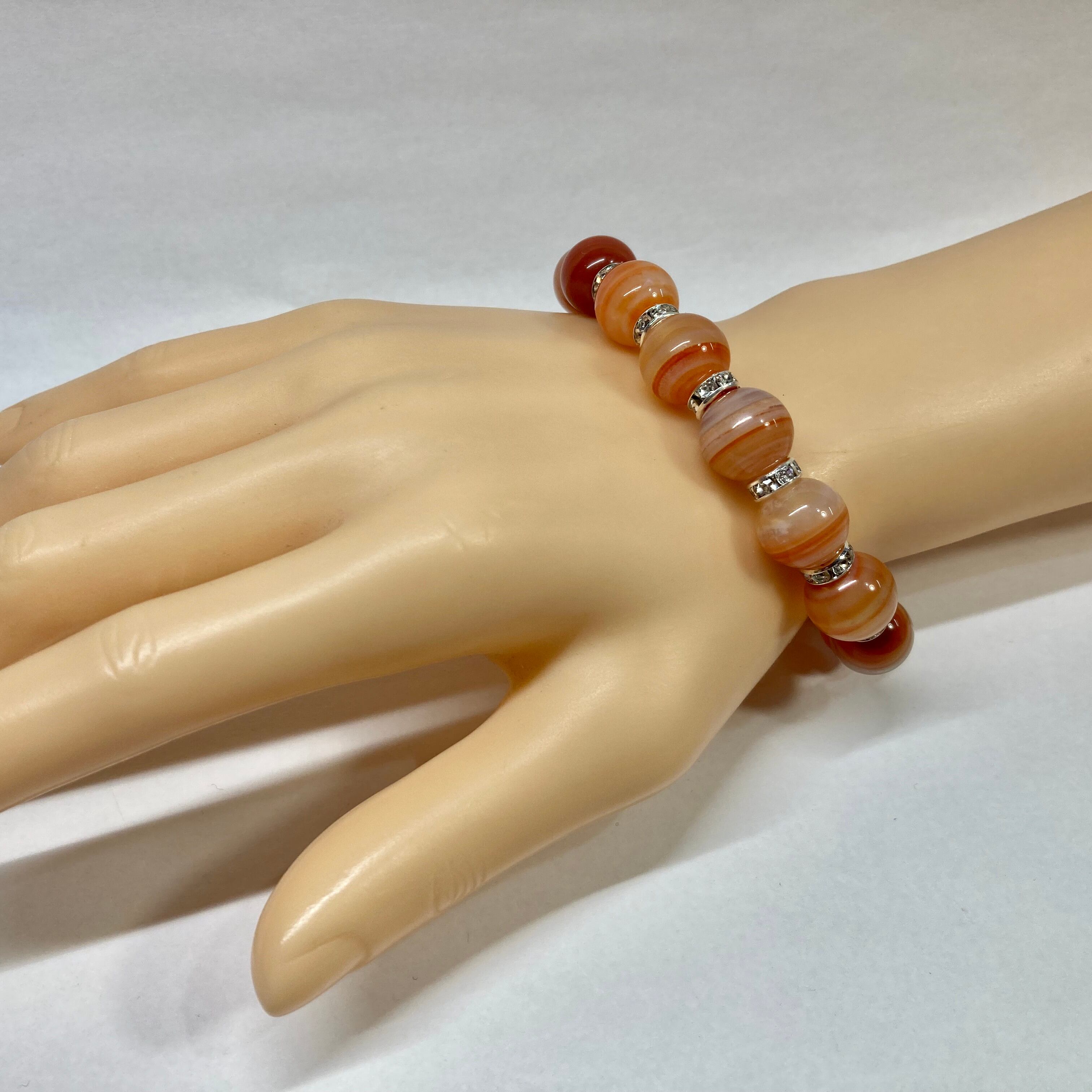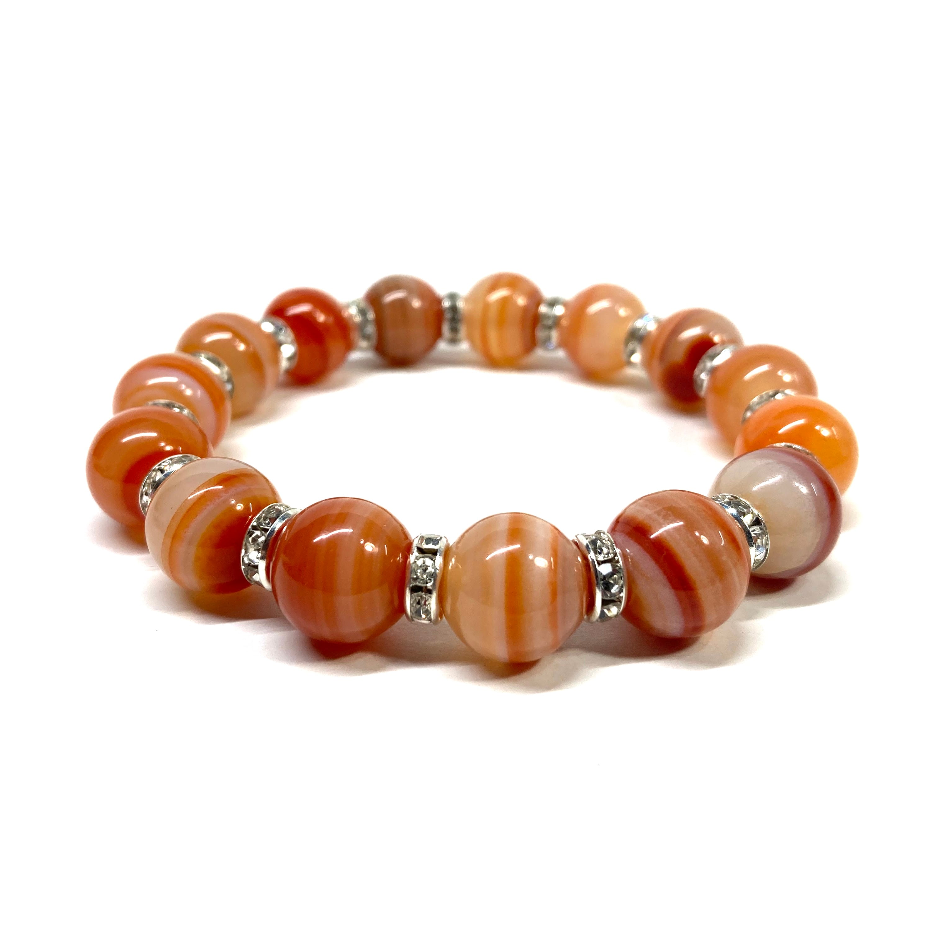 カーネリアン・サードニクス パワーストーン ブレスレット 12mm (シルバー)メンズ・レディース 男性・女性 数珠ブレス 開運 ☆