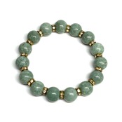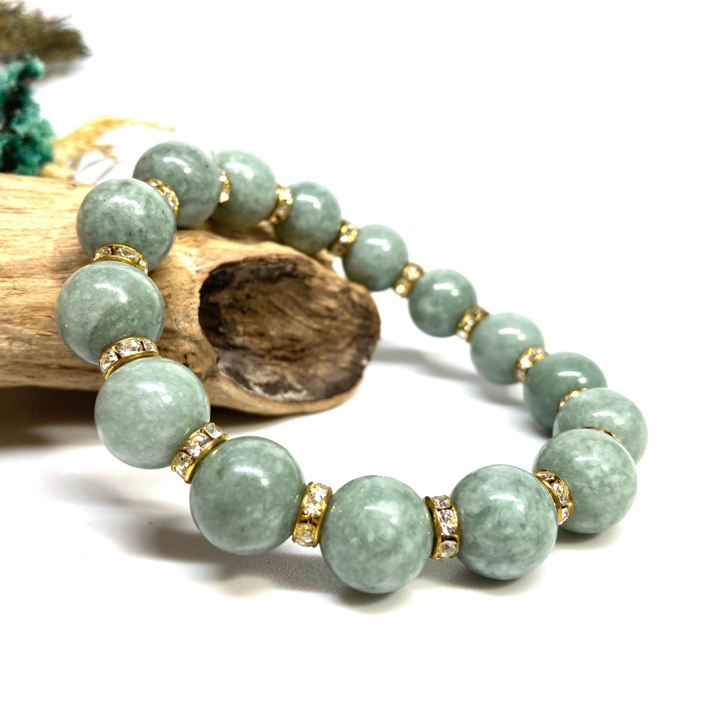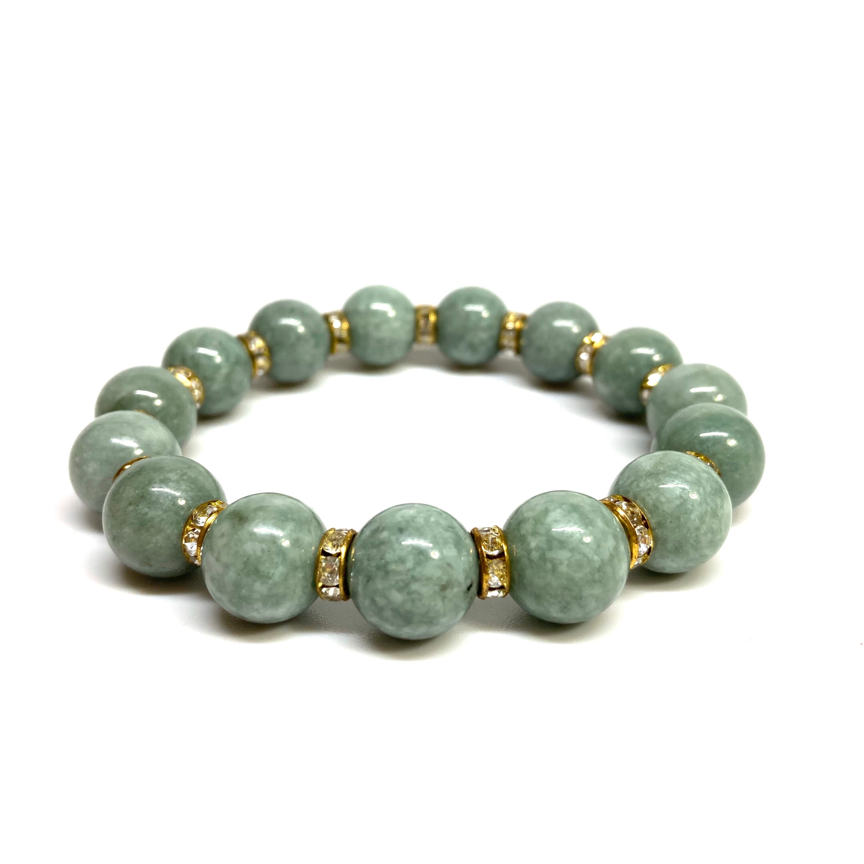 ビルマ翡翠 パワーストーン ブレスレット 12mm (ゴールド) 天然石ブレス 数珠ブレス メンズ・レディース 男性 女性 幸運 開運 浄化 ☆