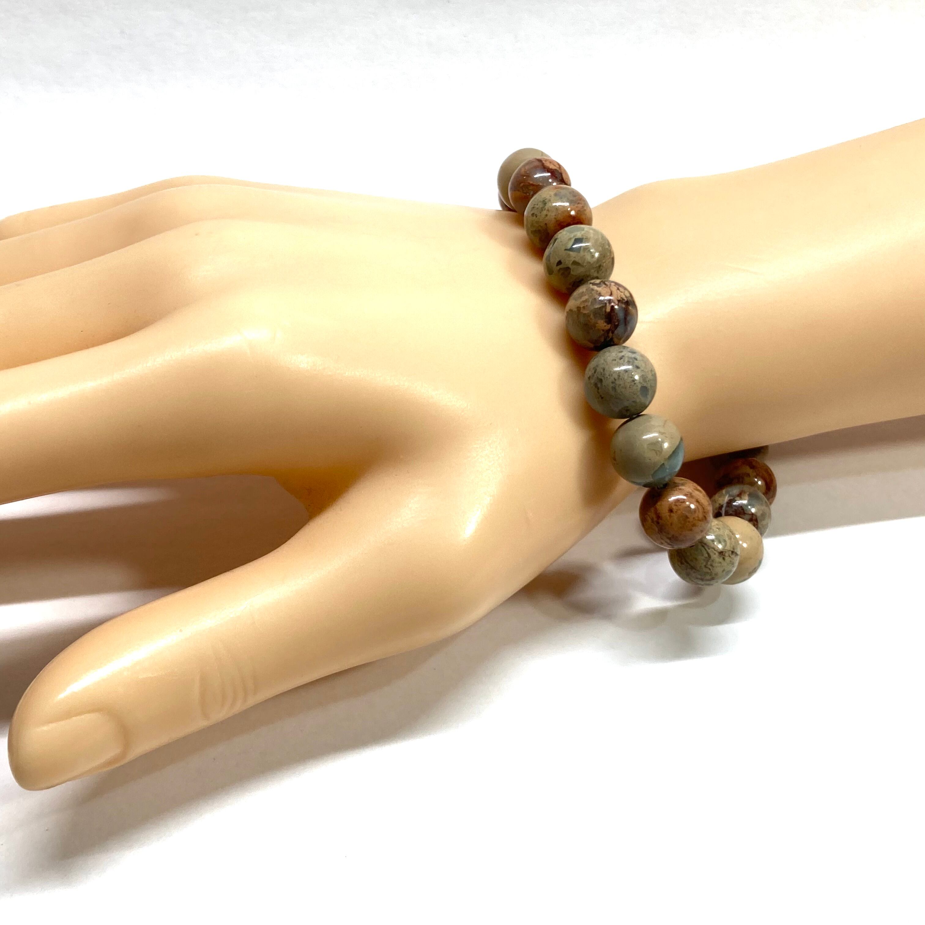 こちらは、インプレッションストーンの10mm玉を使用したパワーストーンブレスレットです。シンプルなデザインは、シーン問わずどんなコーディネートとも合わせ易いブレスレットです。サイズは種類を選択からお選びください。(内周約14cm?内周約22cmでお選び頂けます)。気になる方はお早めにどうぞ。