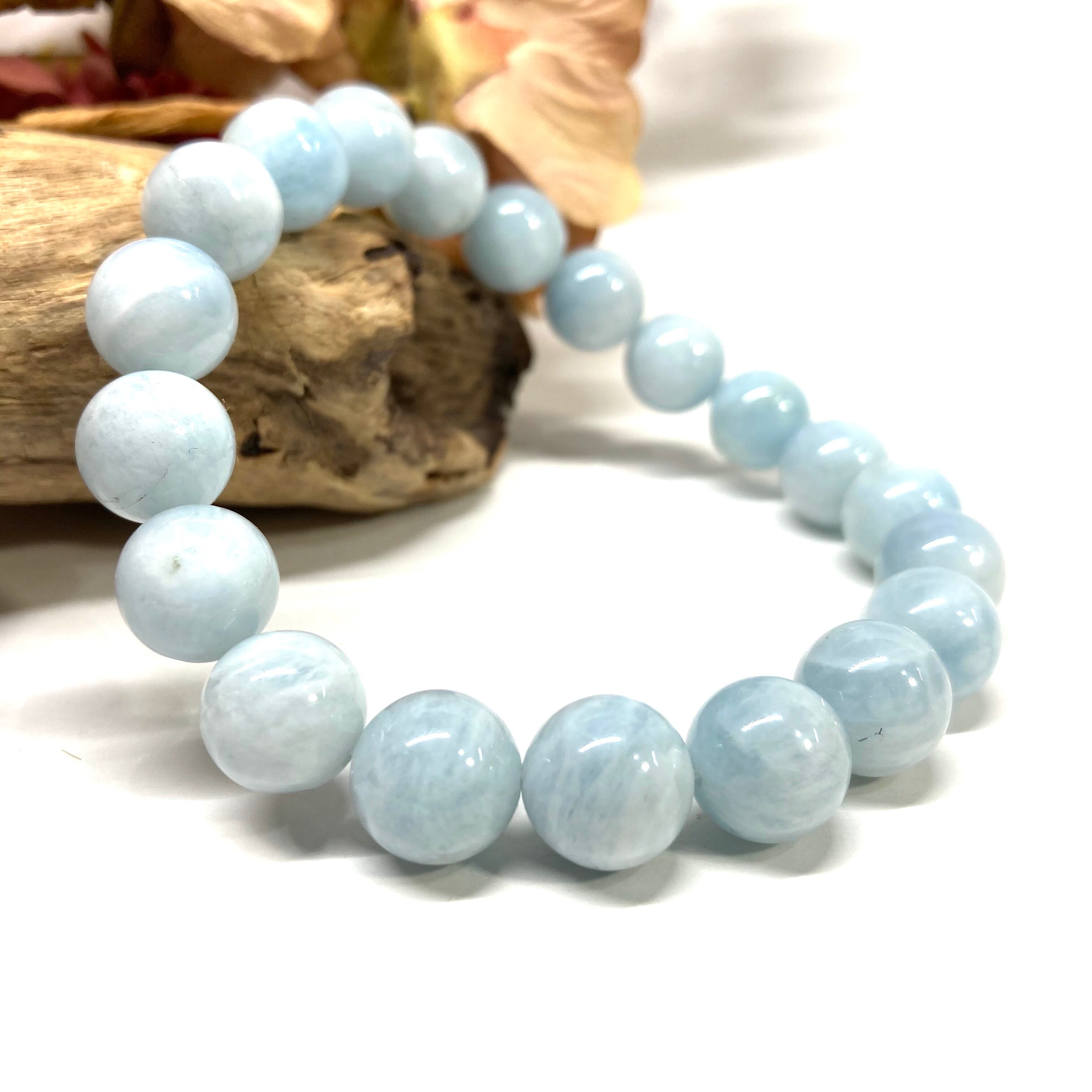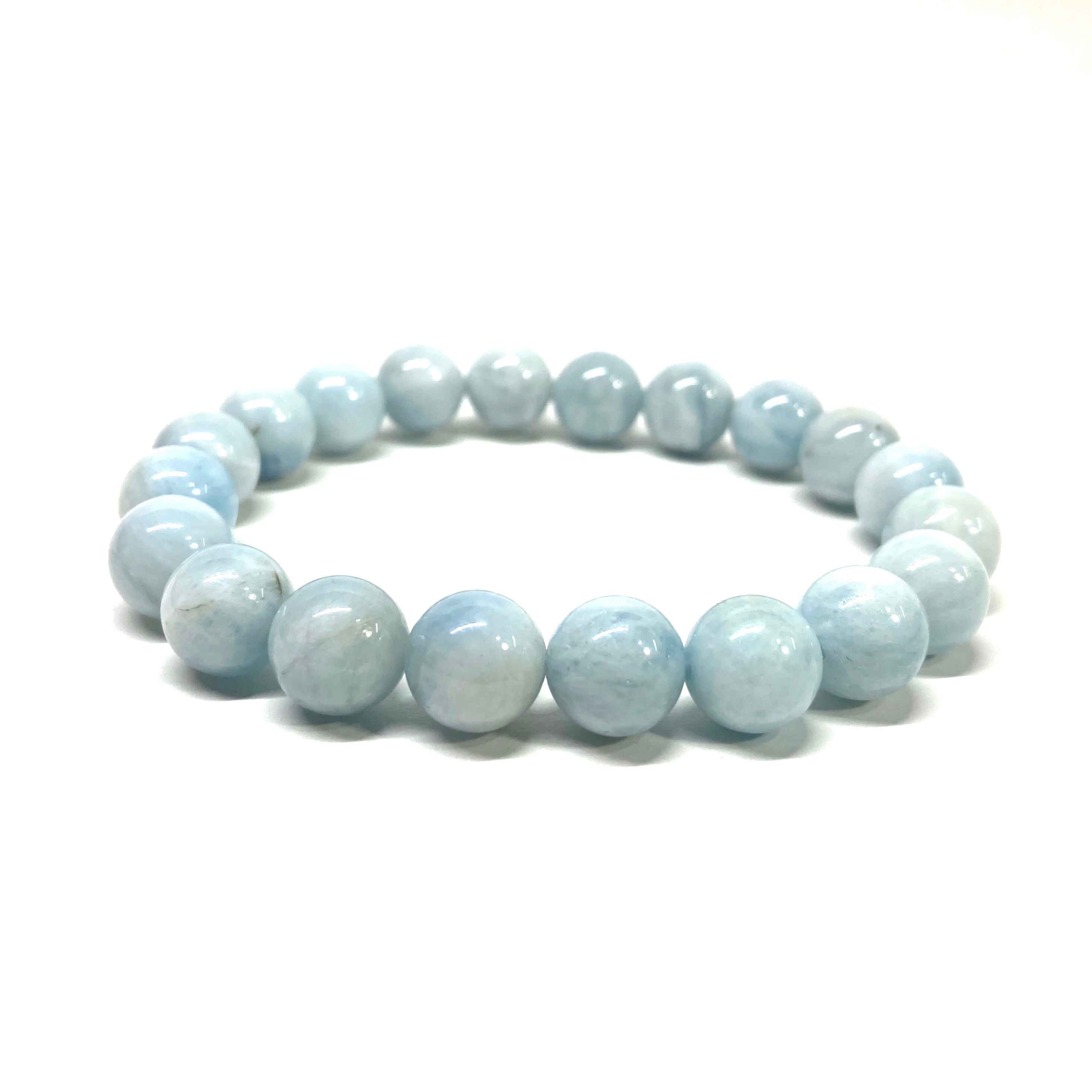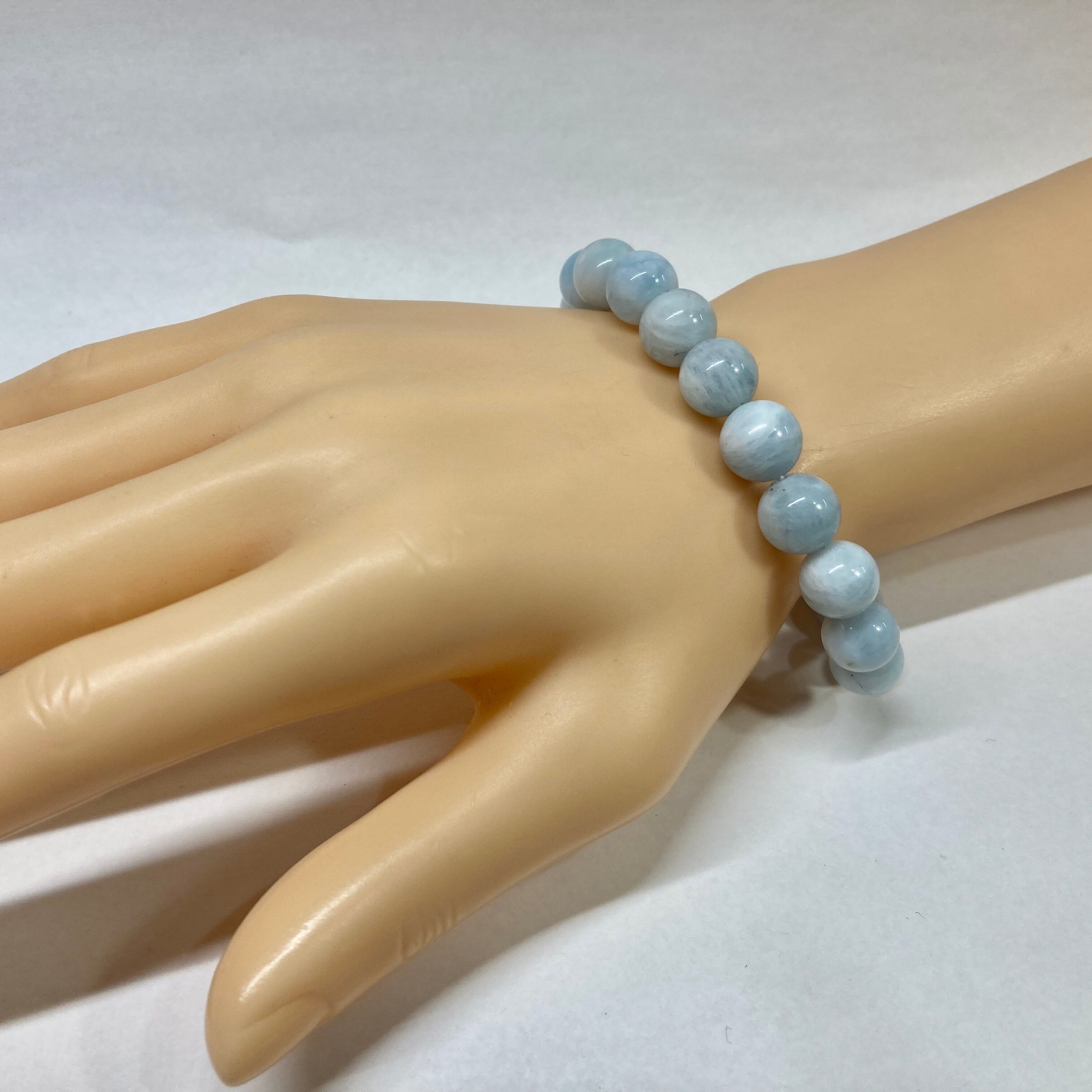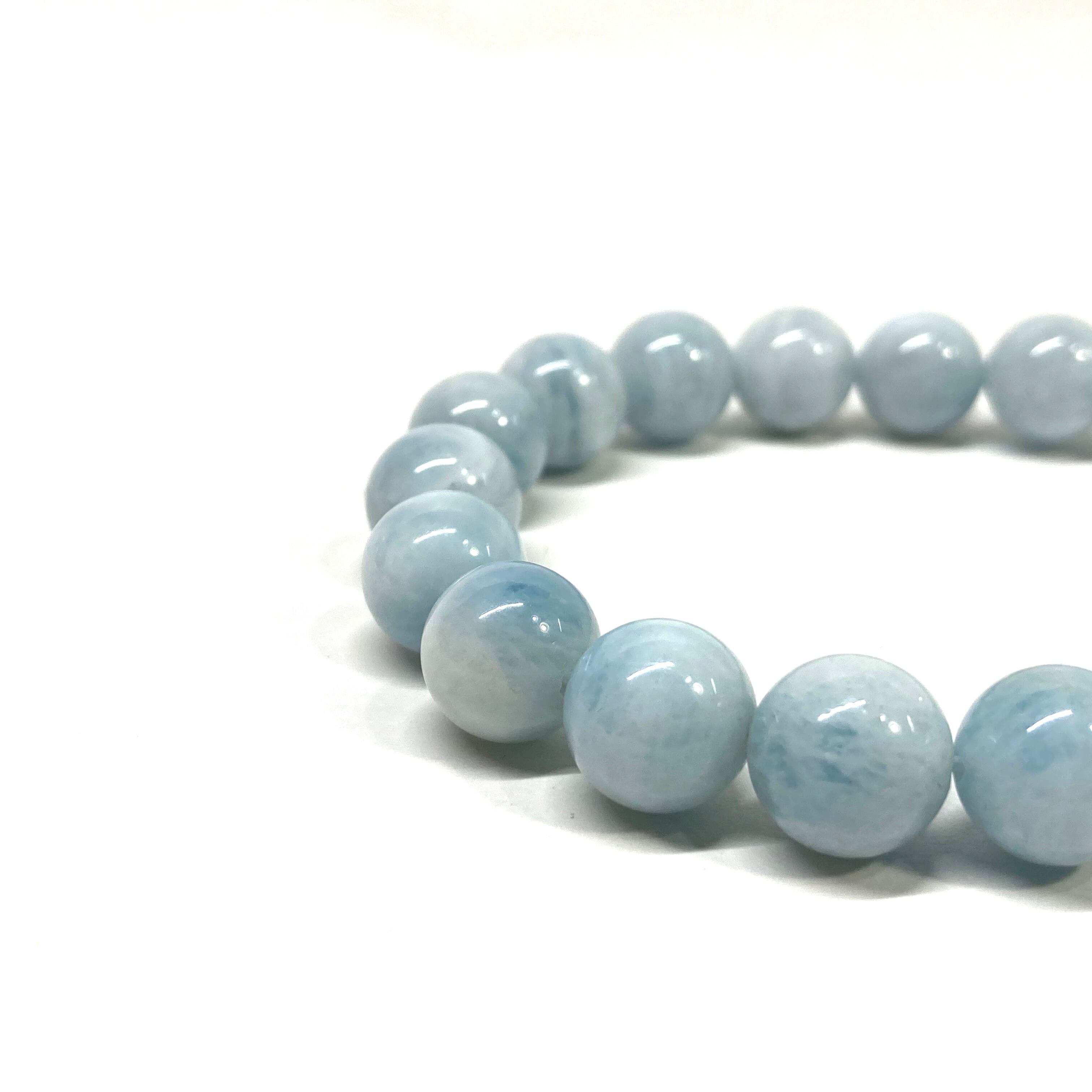 こちらは、10mm玉のアクアマリンを使用したパワーストーンブレスレットです。シンプルなデザインは、男女問わずどんなコーディネートとも合わせ易いブレスレットです。サイズは種類を選択からお選びください。(内周約14cm?内周約22cmでお選び頂けます)。数に限りがございますので気になる方はお早めにどうぞ。